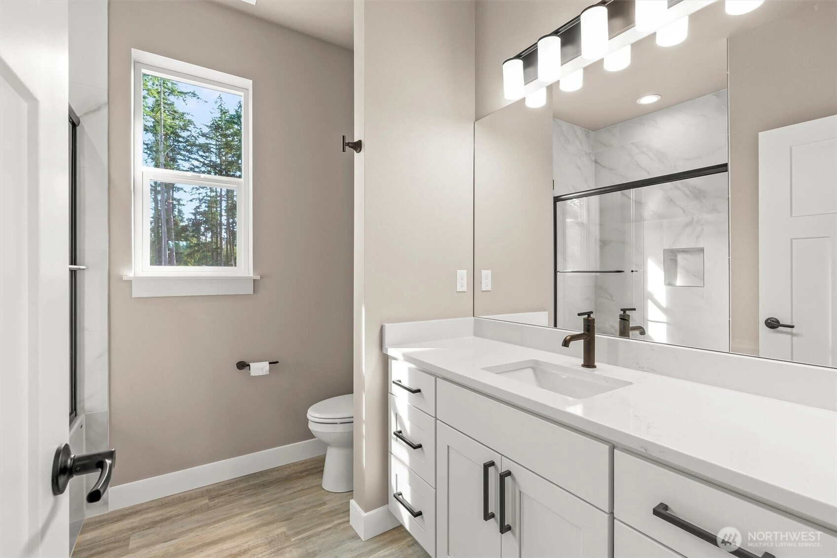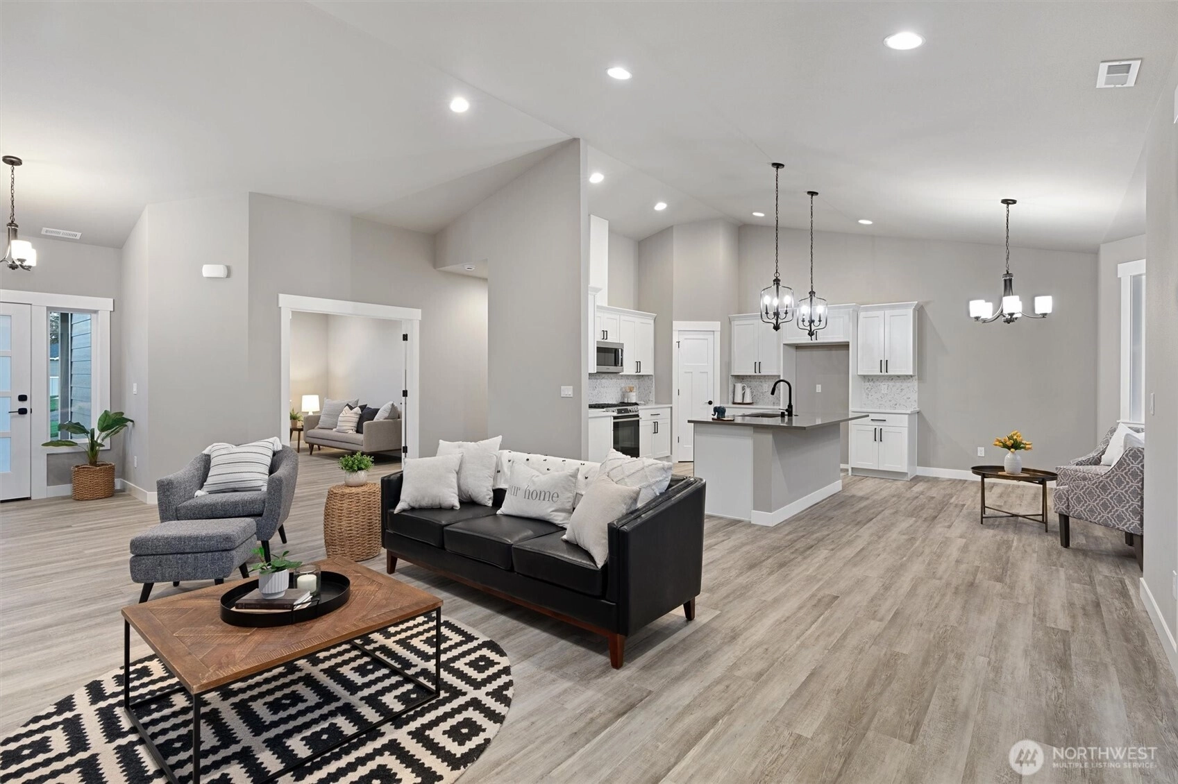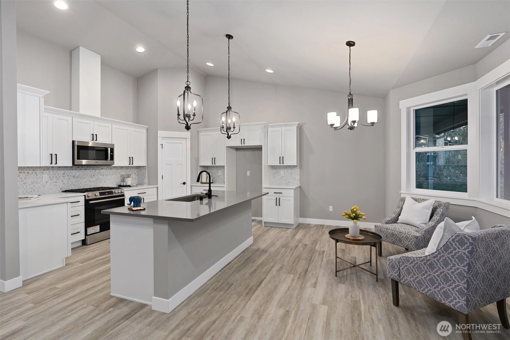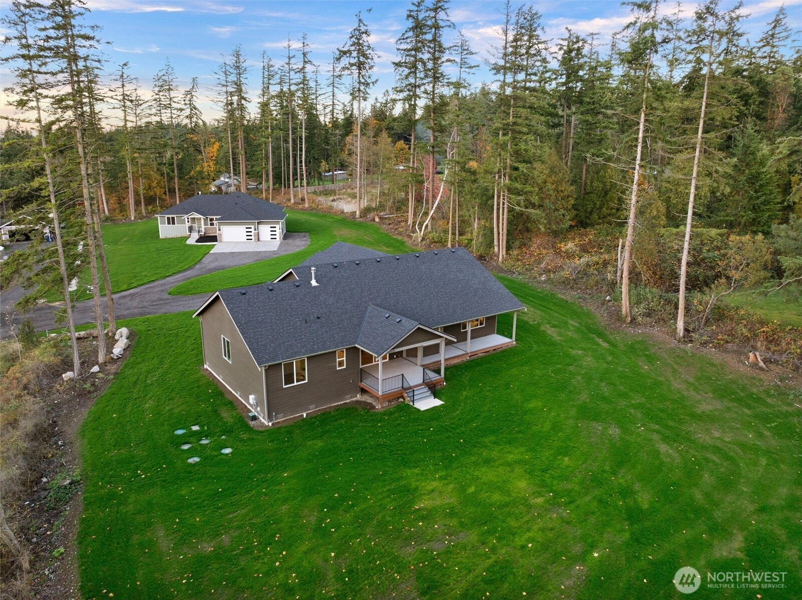 Welcome to your dream home on Camano Island’s serene North End! This stunning new construction on 1.26 acres offers 3 beds + an office/den with closet, perfect for work or guests. Home features durable LVP flooring throughout, bright living room with vaulted ceilings & cozy gas fireplace. Sleek kitchen featuring quartz counters, SS appliances & center island w/ breakfast nook. Primary Bedroom w/ luxurious en suite featuring dual sink vanity, walk in shower & spacious WIC. Enjoy year round outdoor living on covered back deck with peaceful territorial views. 3 car garage & RV parking provide ample space, all at the end of a quiet dead-end street. Close to shopping, golf, restaurants & beaches, this home blends modern comfort w/ island charm.