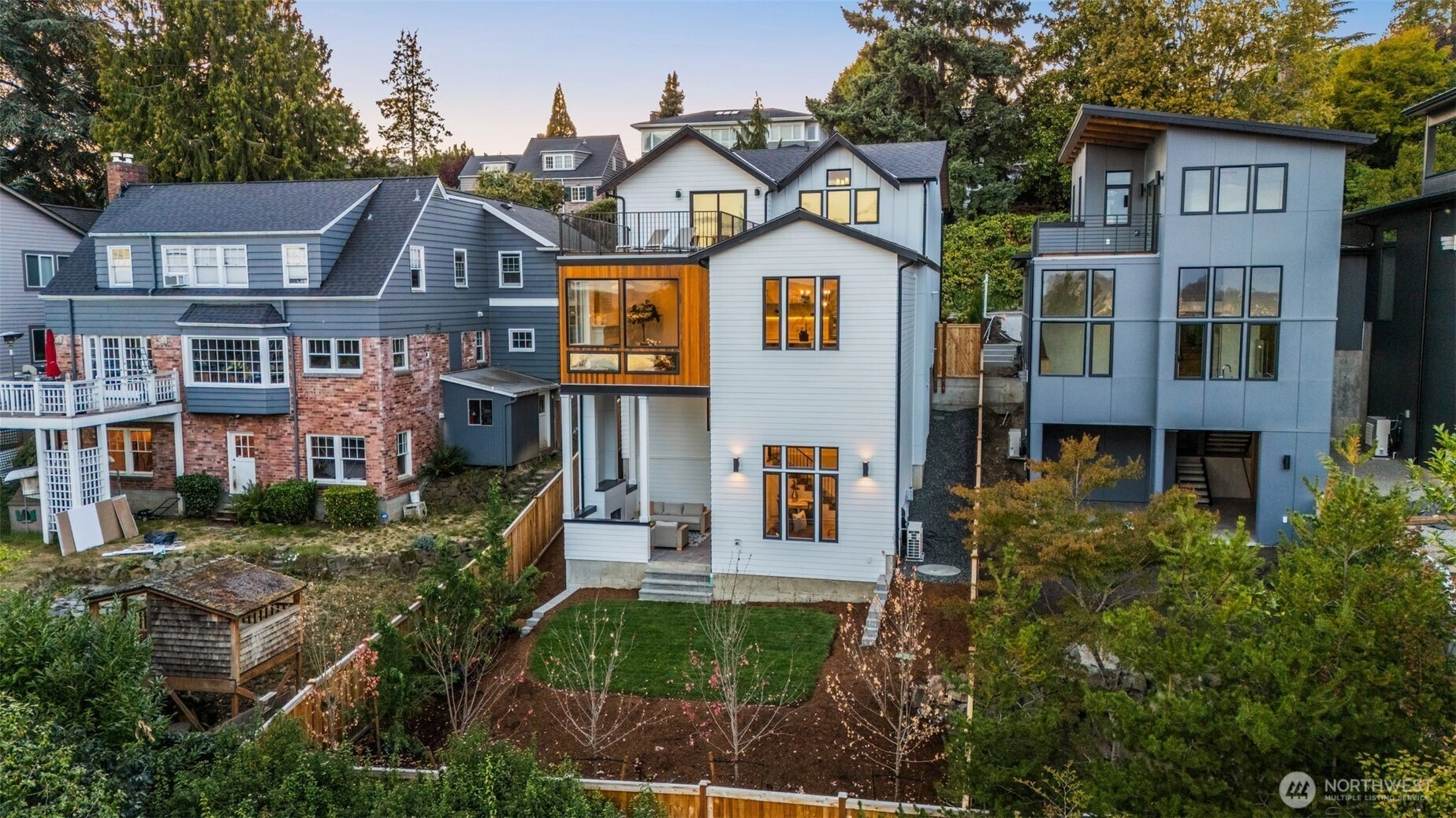 Perched in sought-after Hawthorne Hills with stunning Lake Washington & Mt Rainier views, this new construction home blends modern luxury with thoughtful design. The open-concept main level features a gourmet kitchen with Sub-Zero fridge, Thermador stainless appliances, walk-in pantry. Floor-to-ceiling windows flood the space with natural light. The upper level offers a luxe primary suite w/5-piece en-suite bath. Private view deck, two additional bedrooms, convenient laundry. The lower level includes a large rec room, bedroom, bath, and covered deck with gas fireplace—ideal for entertaining. A mudroom off the 2-car garage adds functionality, while mini splits provide year-round comfort. This is Northwest living at its finest