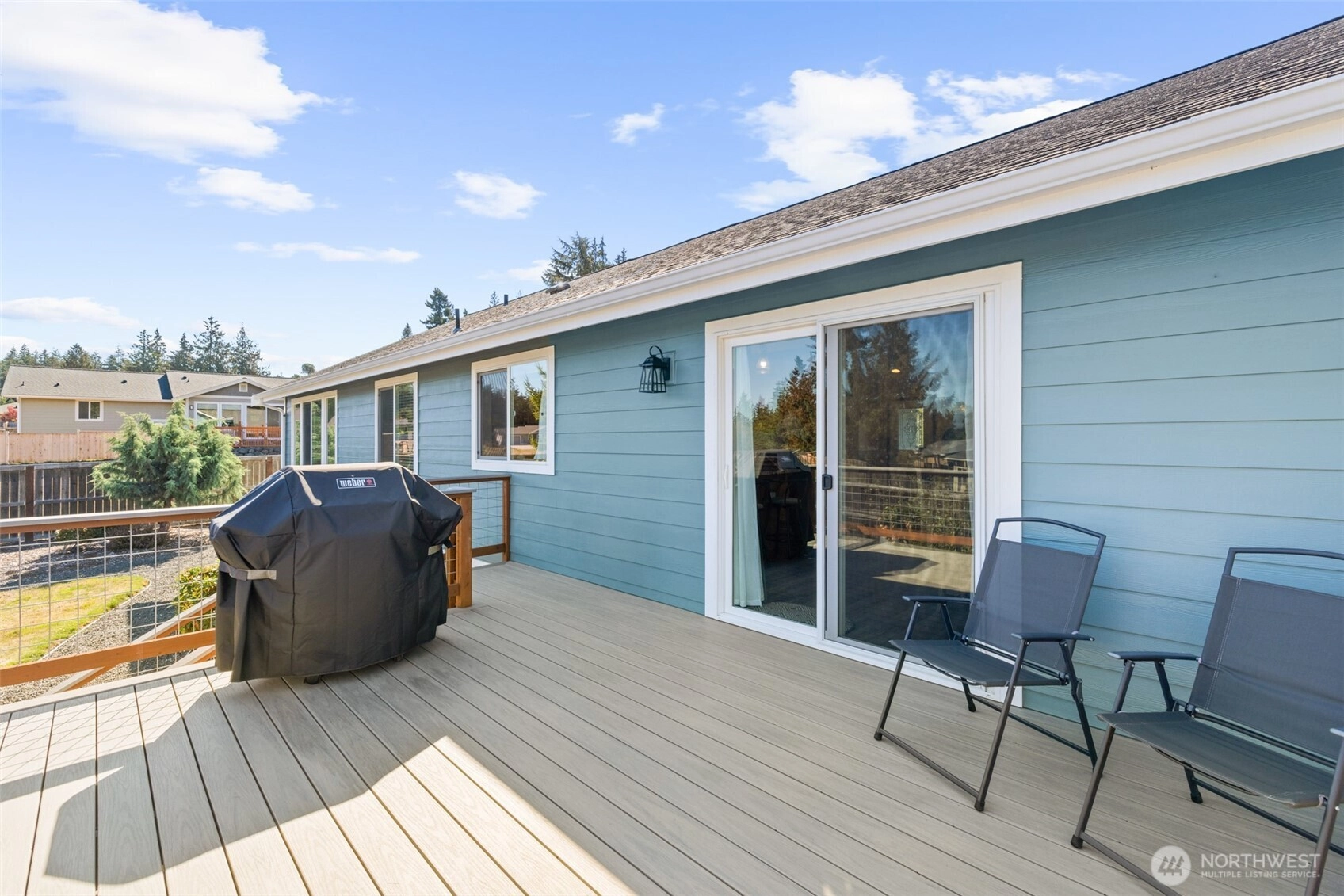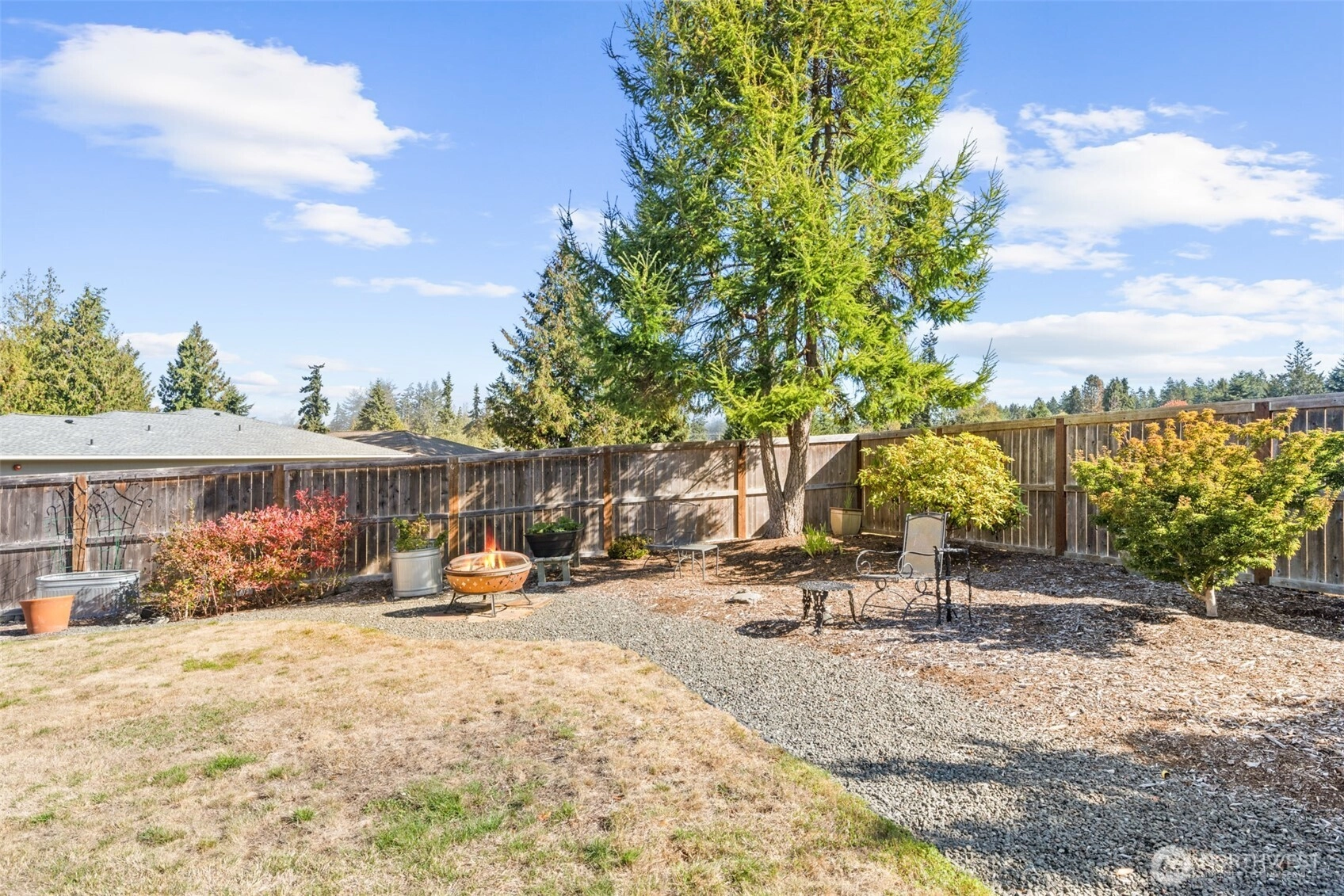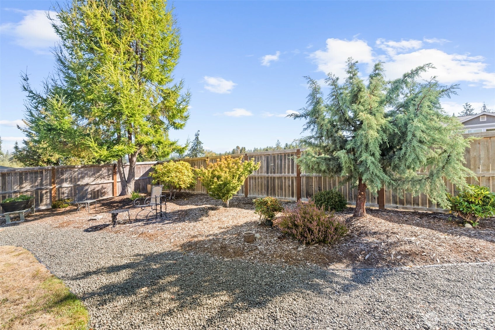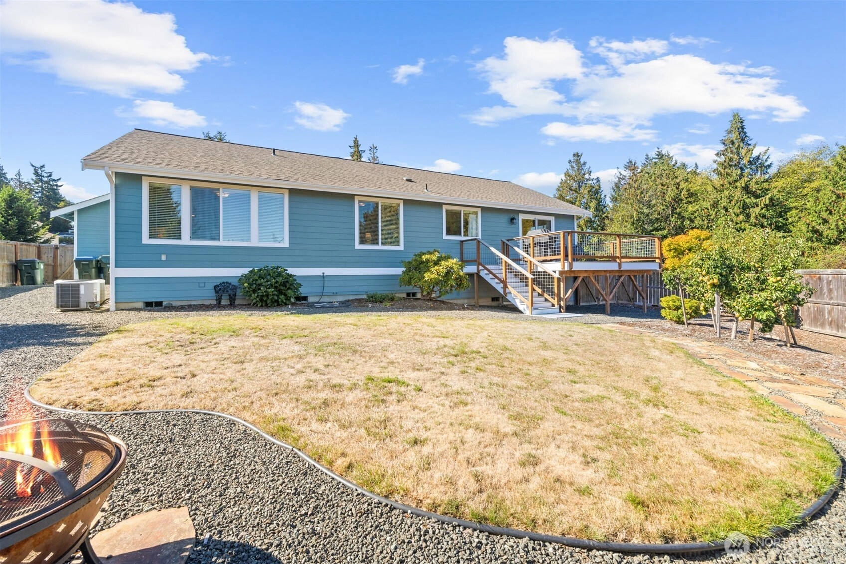 Beautifully maintained 3-bed, 2-bath rambler with 1,647 sq ft of comfortable living. This home features an open, light-filled layout with granite countertops, tile backsplash, and heat pump for year-round comfort. The spacious primary suite includes a soaking tub, double vanities, and a separate walk-in shower. Enjoy the outdoors with brand new PVC decks, a fully fenced backyard, firepit area, and thoughtful landscaping that includes pear, blueberries, raspberries, and strawberries. Situated on a large corner lot near the Discovery Trail, this property also offers plenty of space for hobbies and storage with a 2 car attached garage & an additional garage or shop. A true blend of comfort and convenience. Don't miss this move in ready gem!