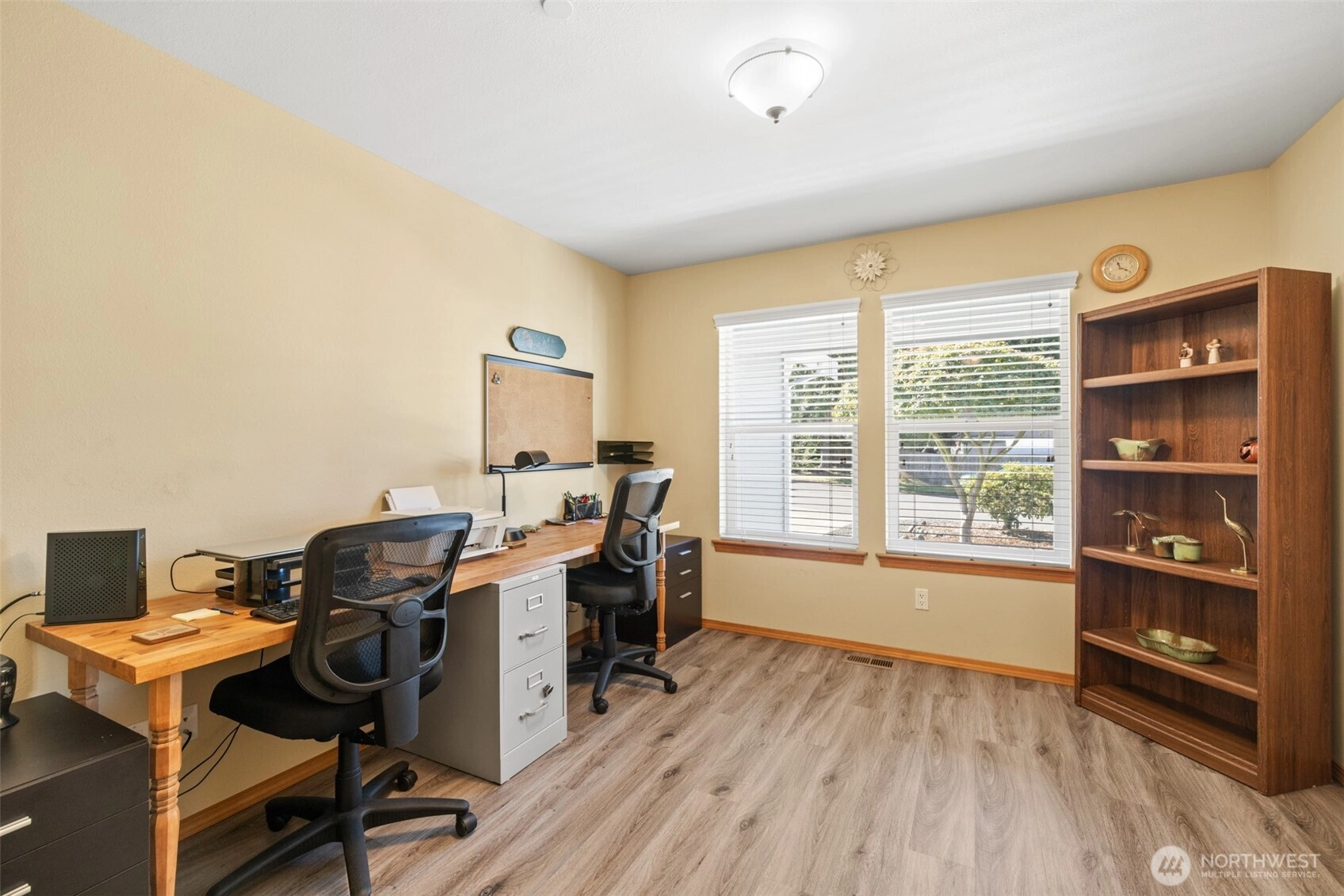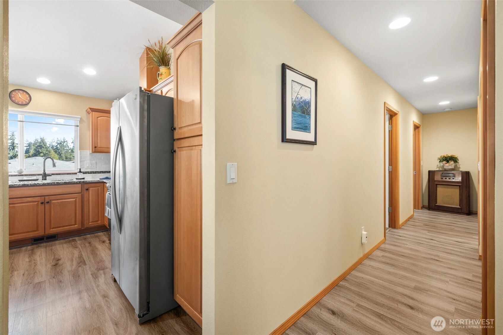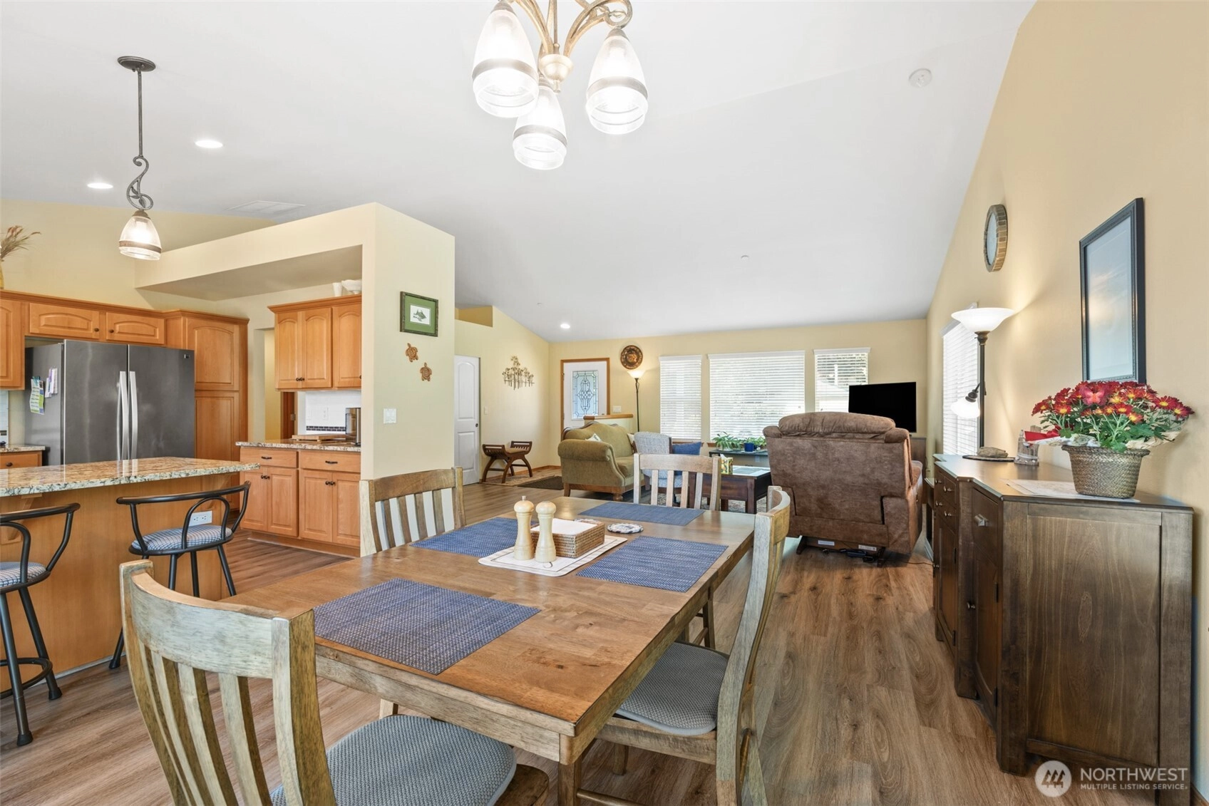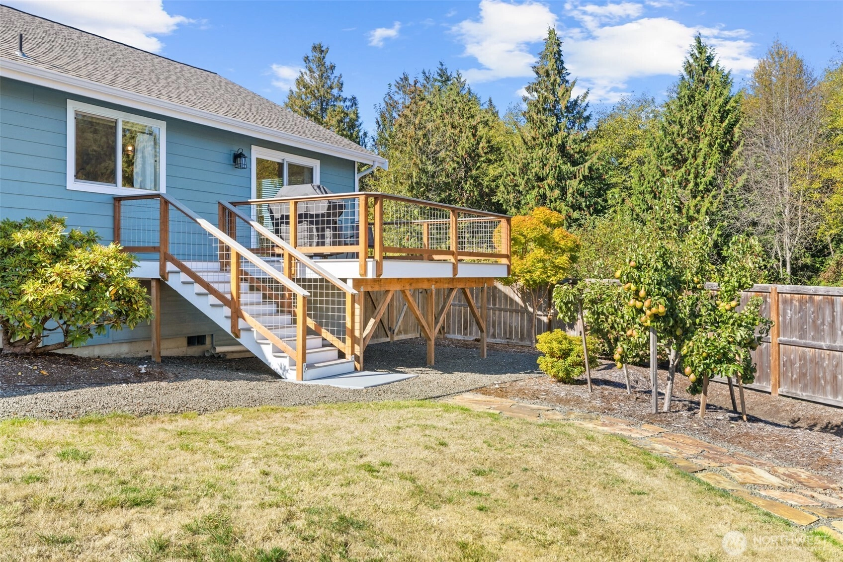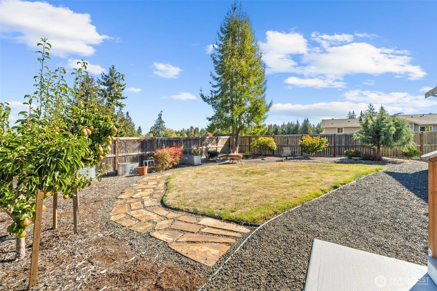 Beautifully maintained 3-bed, 2-bath rambler with 1,647 sq ft of comfortable living. This home features an open, light-filled layout with granite countertops, tile backsplash, and heat pump for year-round comfort. The spacious primary suite includes a soaking tub, double vanities, and a separate walk-in shower. Enjoy the outdoors with brand new PVC decks, a fully fenced backyard, firepit area, and thoughtful landscaping that includes pear, blueberries, raspberries, and strawberries. Situated on a large corner lot near the Discovery Trail, this property also offers plenty of space for hobbies and storage with a 2 car attached garage & an additional garage or shop. A true blend of comfort and convenience. Don't miss this move in ready gem!