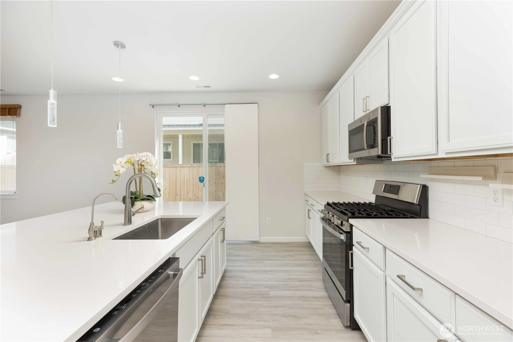 Welcome to this stunning like-new resale featuring the sought-after Bedford floor plan by Richmond American. Thoughtfully designed for modern living, this two-story home offers a spacious and inviting layout. The main level boasts a bright and open great room with a cozy fireplace, a stylish kitchen, plus dining space. Upstairs, enjoy the ease of a centrally located laundry room, a generous loft ideal for relaxation or play, a full bathroom, and three well-sized bedrooms. The luxurious primary suite is complete with an expansive walk-in closet and a private bath with walk-in shower. This move-in-ready home combines tasteful upgrades with timeless design. Heat pump to control your climate. Private patio plumbed for gas. A must see!