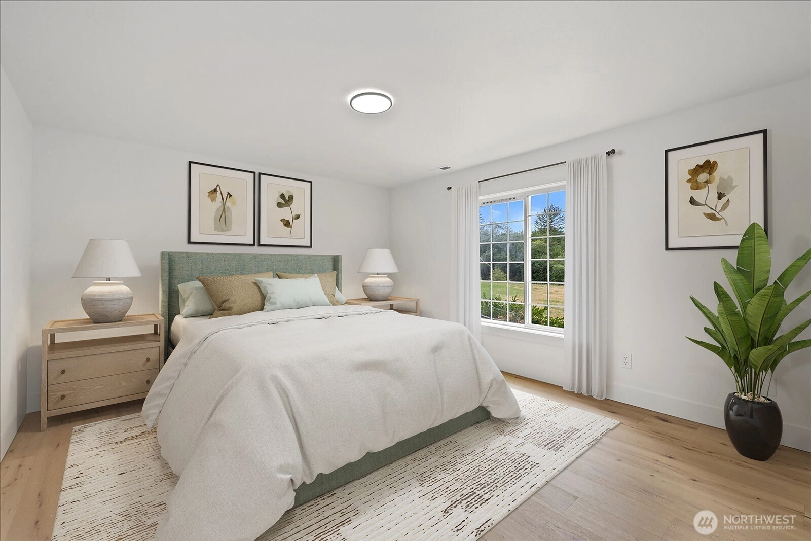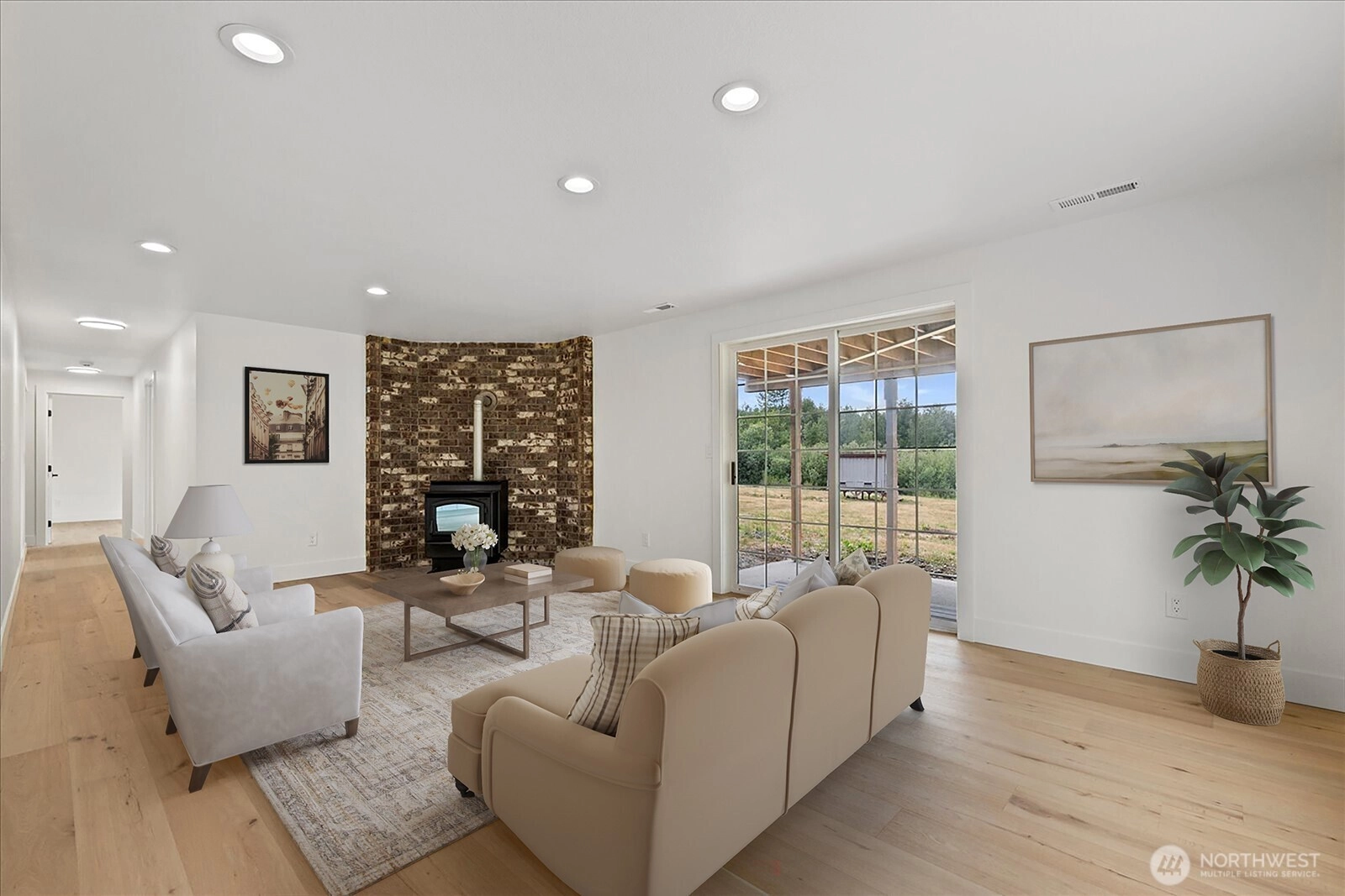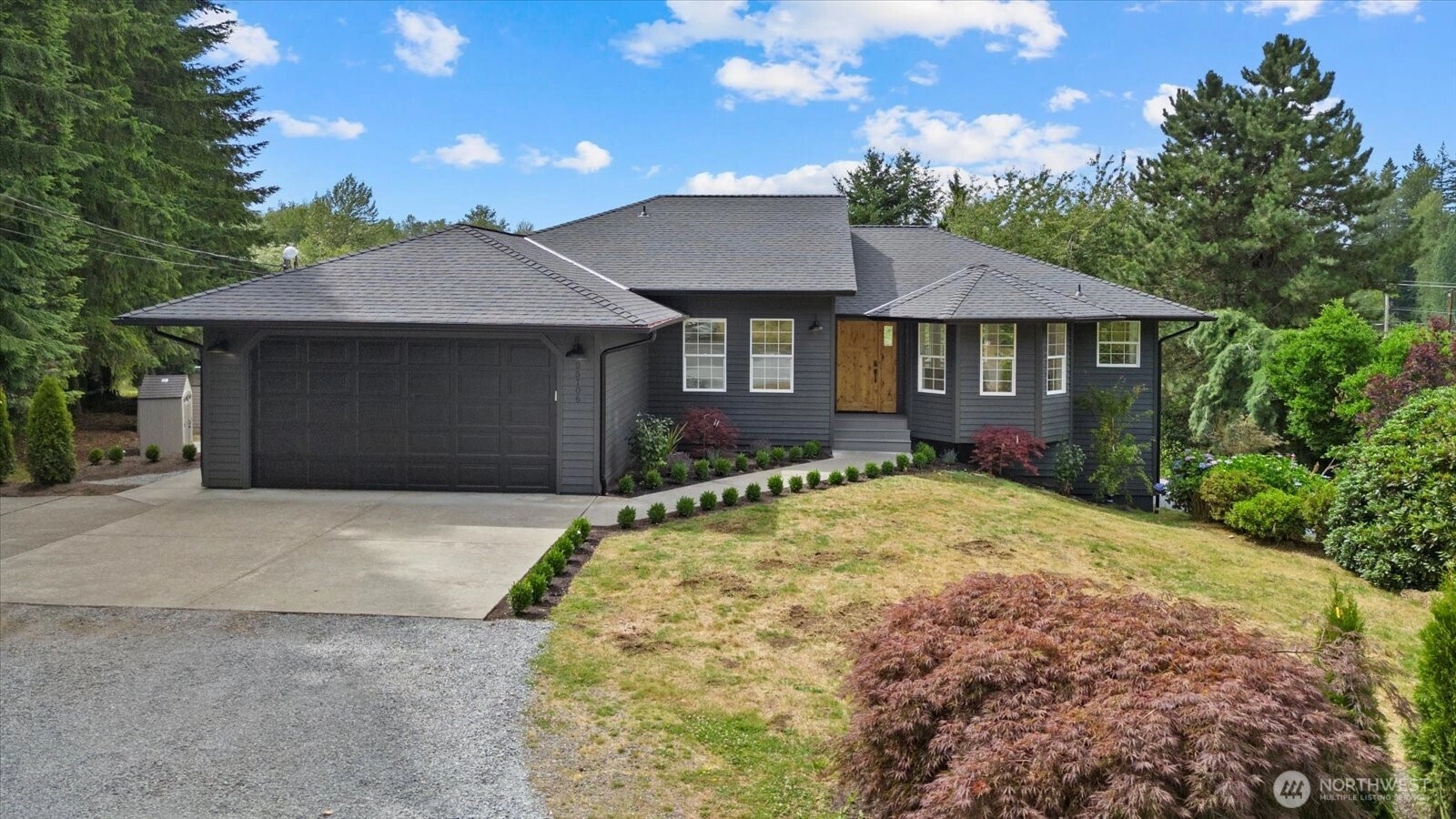Stunning 5 bed 3 bath home on 5+ serene acres – completely refreshed inside & out. Designer kitchen featuring massive island with built-ins, modern shaker cabinets, beautiful quartz counters, & perfect breakfast nook. Seamless open floor plan showcases large picture windows & vaulted ceilings. Primary on main boasting luxurious 5-piece bath & walk-in closet. Mother-in-law suite/apartment with additional kitchen, huge living space, bonus/game room, full bath, & two oversized bedrooms. Trex deck overlooks the sprawling backyard. All high-end materials used throughout including engineered hardwoods, tile, & designer lighting + hardware. Plenty of parking and storage. Powerful dual zone forced air. New roof. RV parking. Turnkey & move-in ready!