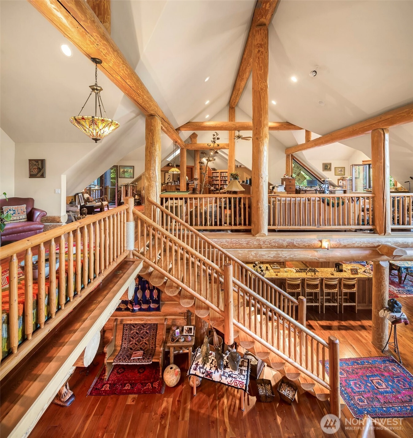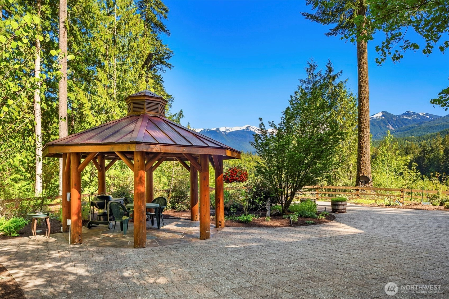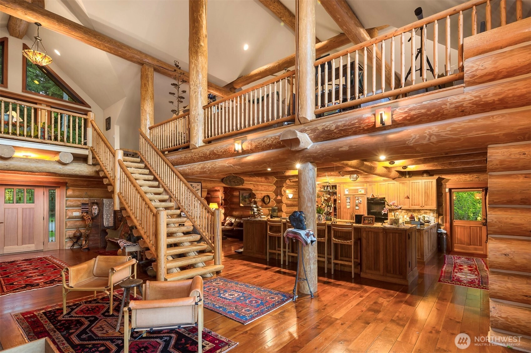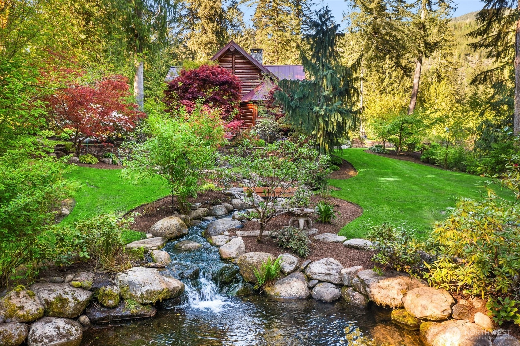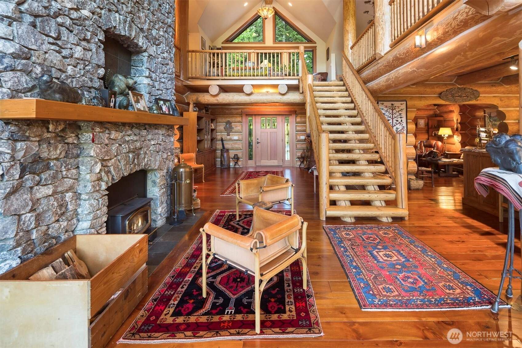 Embrace the grandeur of this Mt. Baker estate, boasting a mile of North Fork Nooksack River frontage across 15 acres. This majestic property offers an unparalleled après ski lifestyle with breathtaking panoramic views descending below the mountain range. The meticulously curated grounds feature serene waterfalls, meandering creeks, and tranquil ponds, crafting an exquisite year-round haven. Discover a true log estate crafted from the regions original fir logs to showcase exceptional artistry. The 30-foot vaulted ceilings create a grand ambiance, while a striking fireplace made entirely of local quarry limestone enhances the estate's elegance. This property is the epitome of refined living, blending natural beauty with sophisticated luxury.