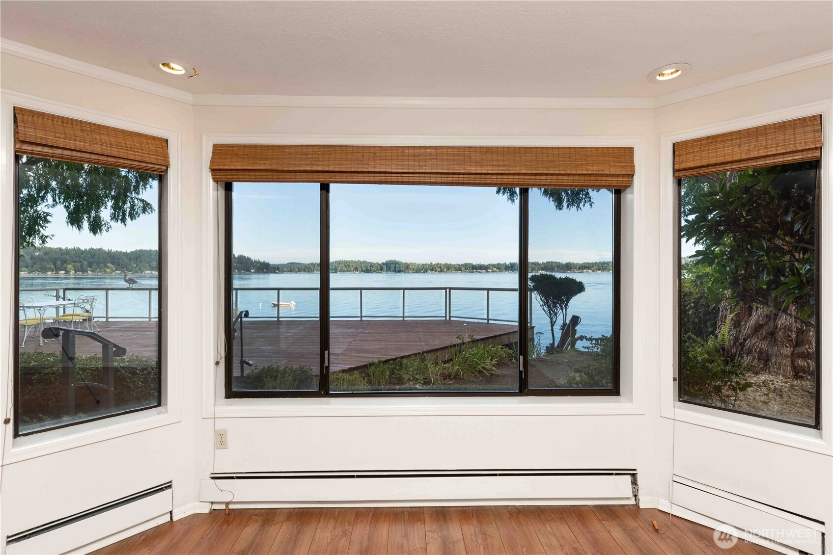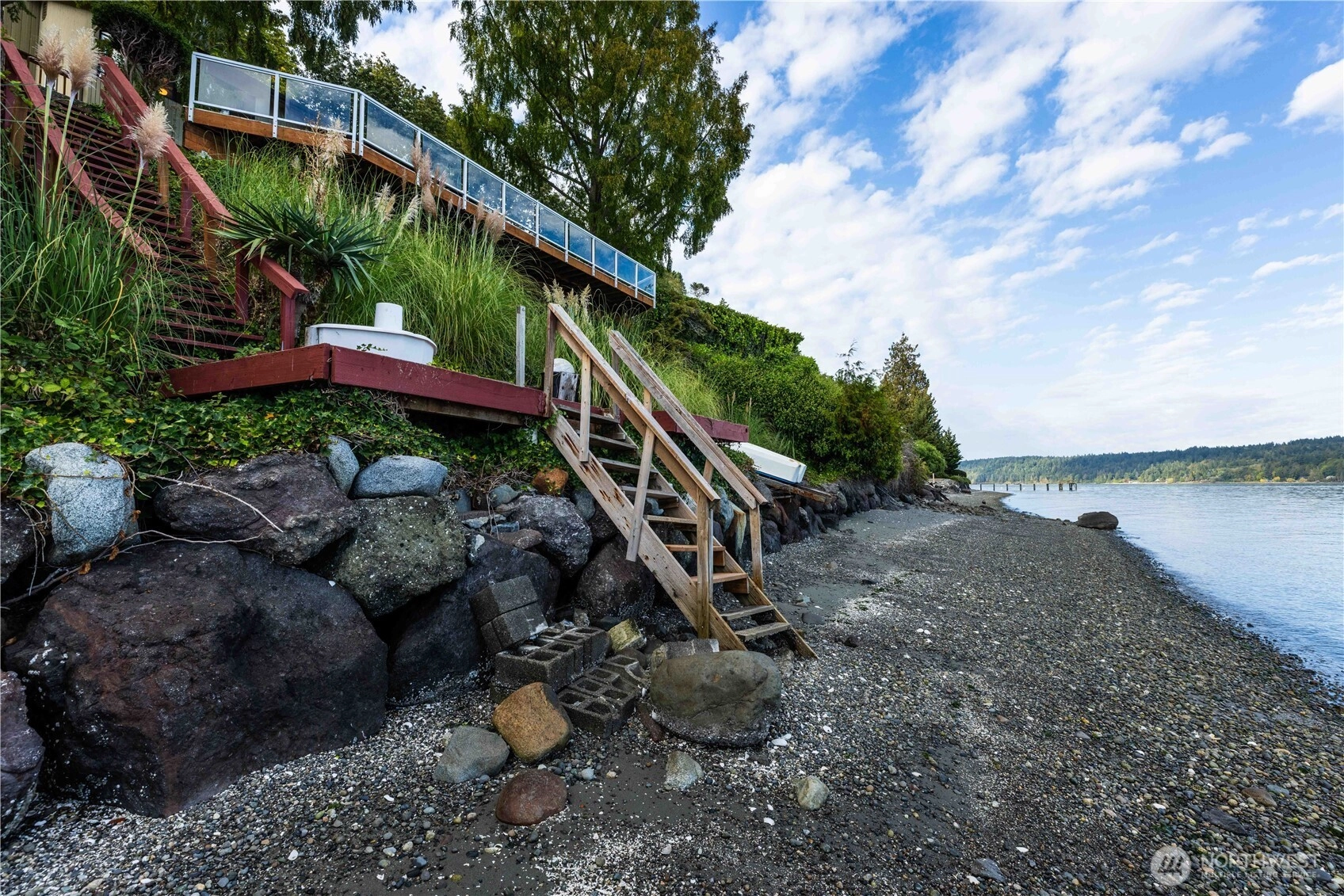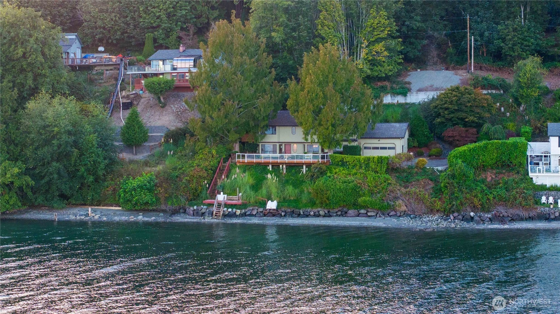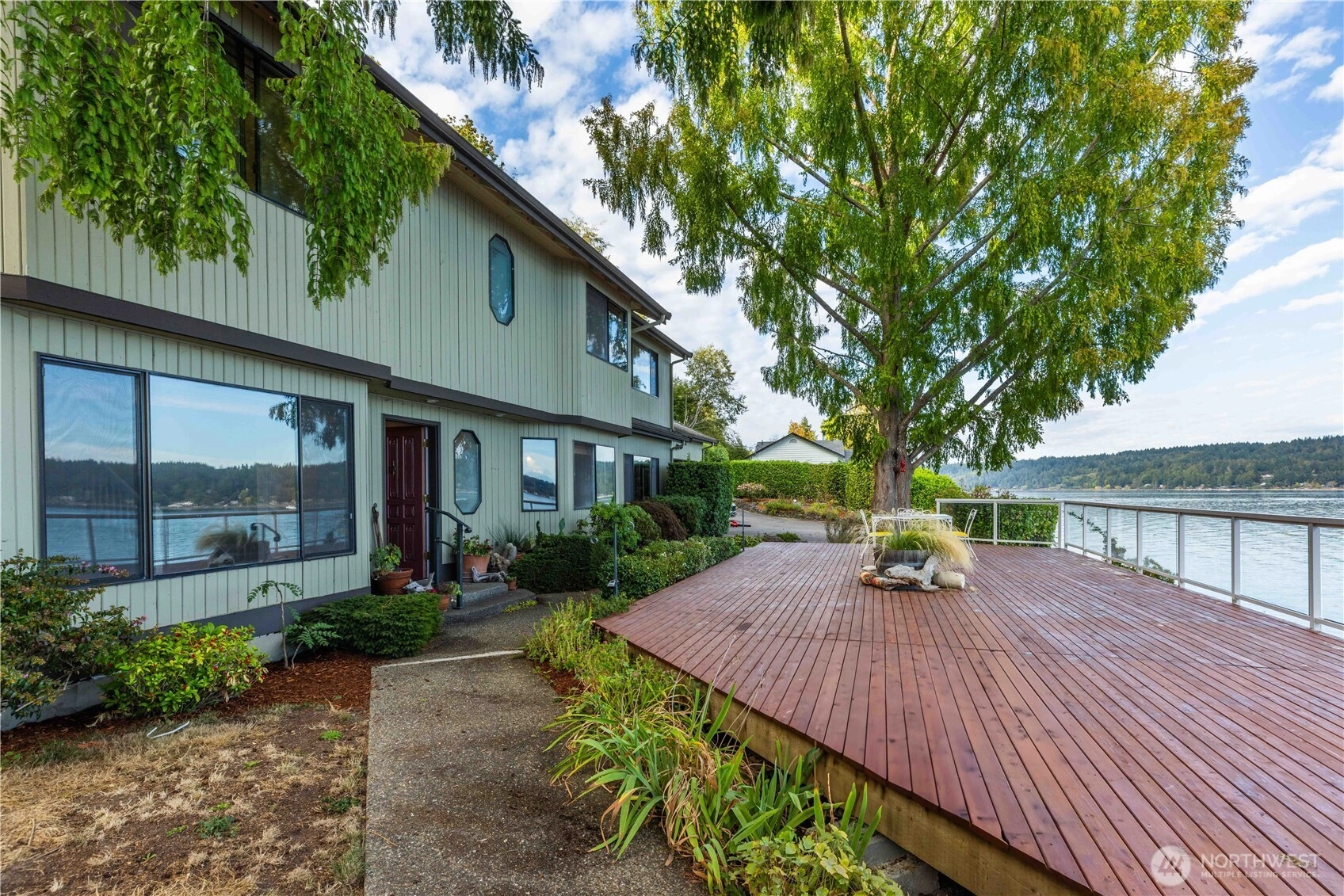 Exceptional low-bank waterfront investment with 150’ of Puget Sound frontage and deeded tidelands. Panoramic views of Bainbridge Island, Mt. Rainier, and Port Orchard offer a dynamic backdrop of passing ships and marine wildlife. A private moorage buoy, abundant shellfish, and rich tidal access elevate the experience. Mature landscaping and towering redwoods create seclusion across expansive decks. Inside, every room captures stunning water views in a spacious, well-designed layout. A rare opportunity to own premier Northwest waterfront—ideal for luxury living or portfolio growth.