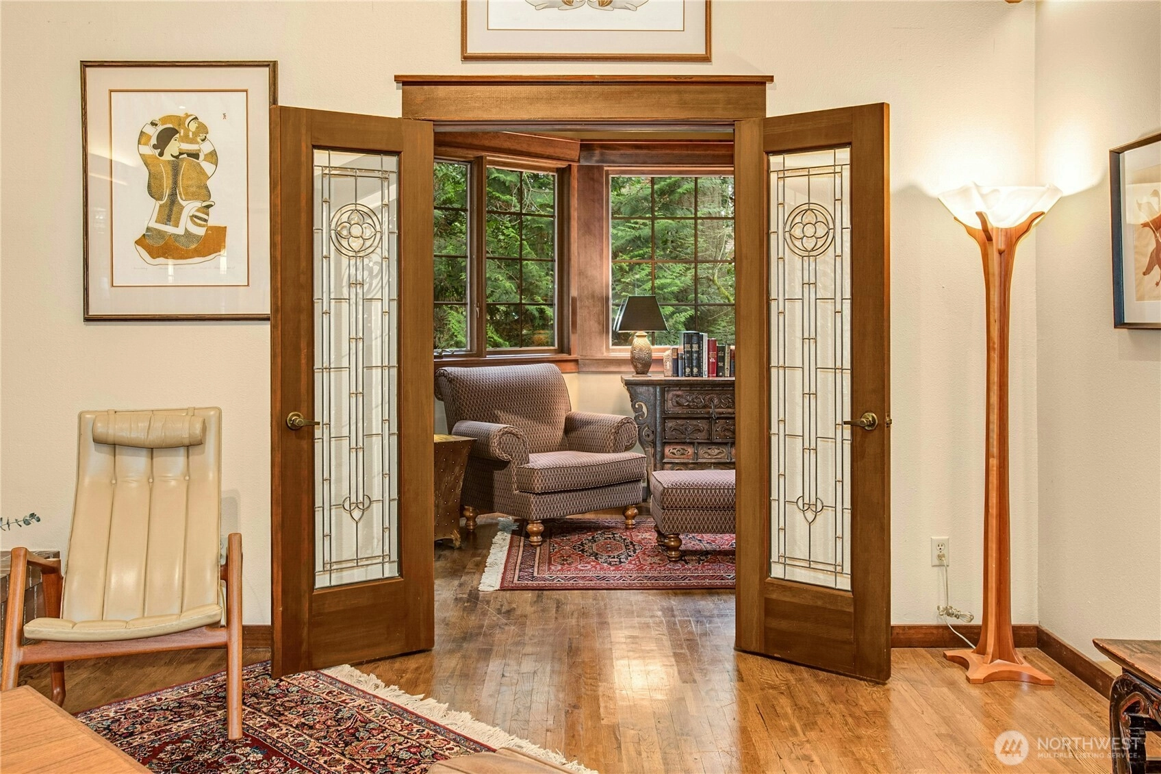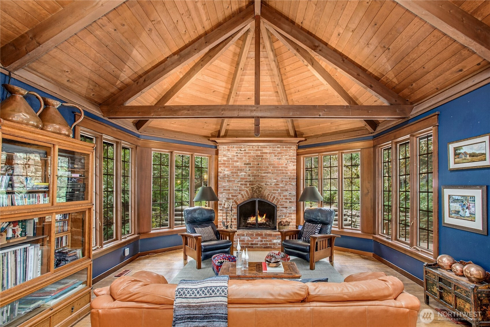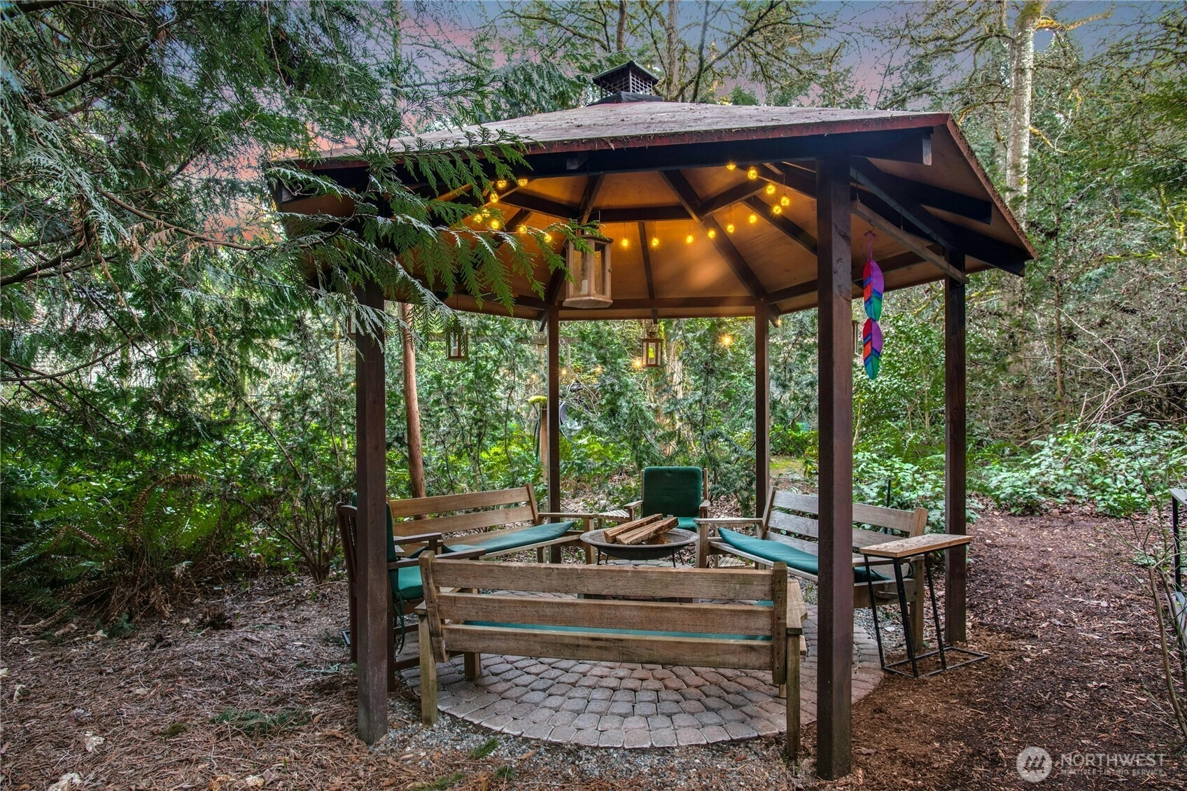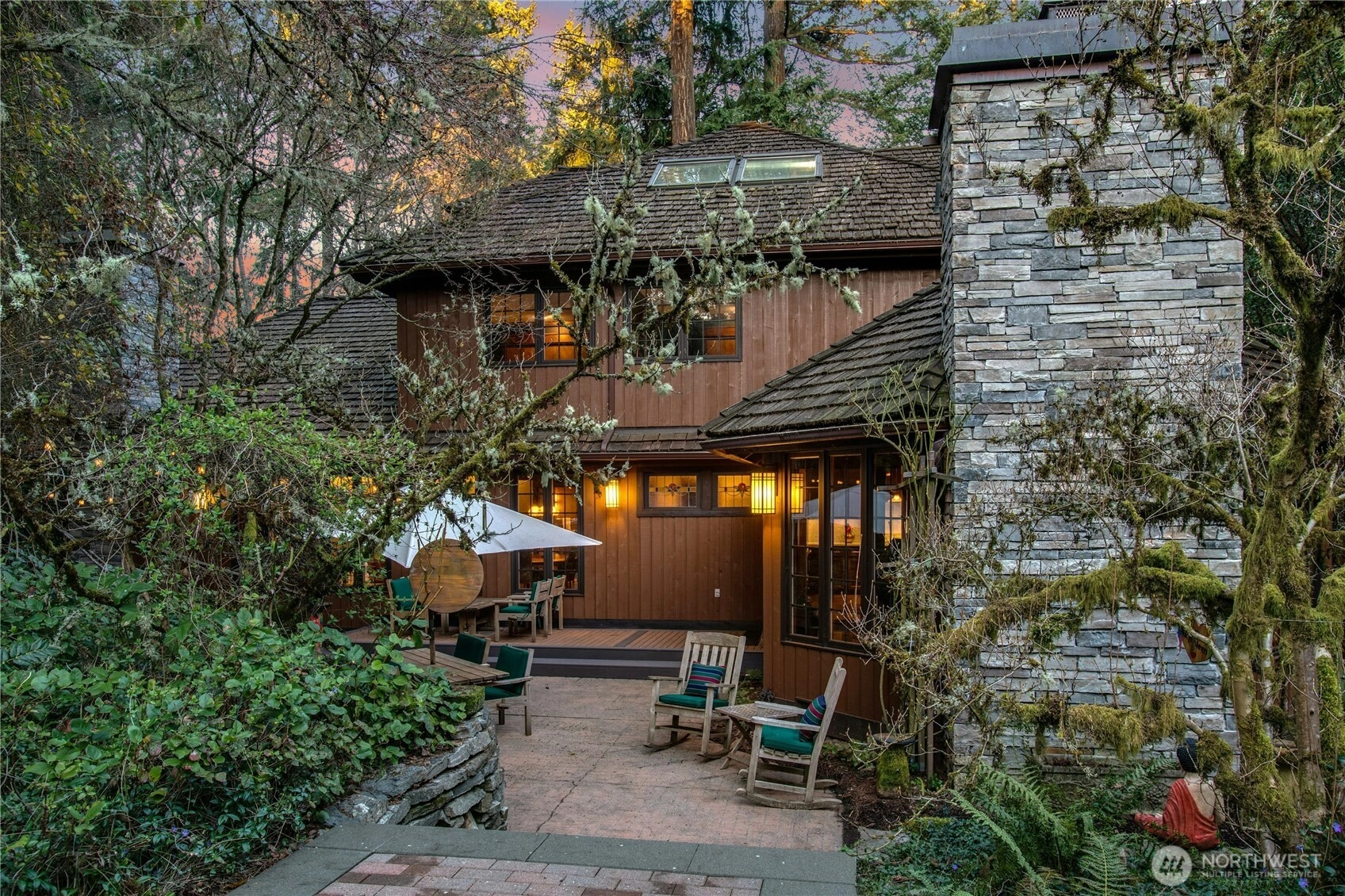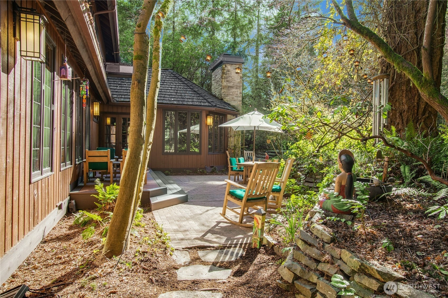 Welcome home to a woodland retreat less than 7 min. to downtown Bellevue. The .7 acre estate has been meticulously maintained & updated. Fall in love w/circular floor plan, main floor primary + specially sourced fixtures: vintage lights, European stained glass windows, reclaimed brick FP's & more. Entertain & enchant your guests with a garden designed by landscape architect Glen Hunt: towering Douglas firs, cedars, redwoods + an understory of rare deciduous trees: katsura, sourwood, tupelo, arbutus unedo metasequoia, sweet gum, Japanese maples, cherry trees along with flowers for multiple seasons. Walking paths lead to a koi pond, waterfall, gazebo w/fire pit, and a large shed with sitting porch. Ready to offer the lifestyle you deserve!