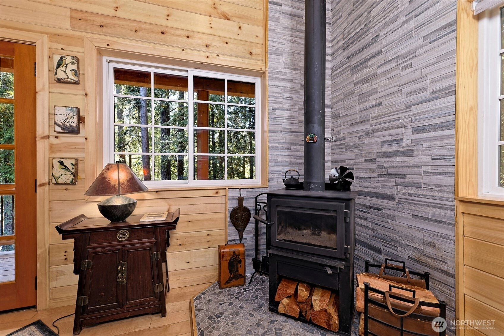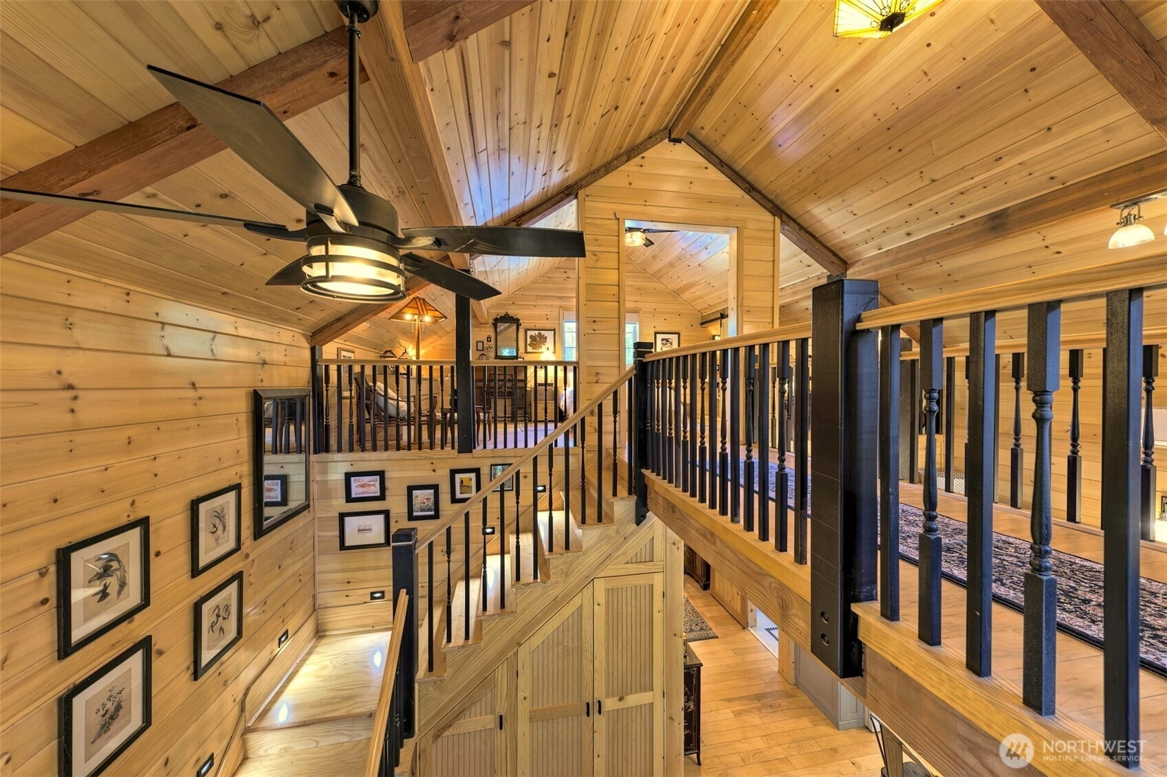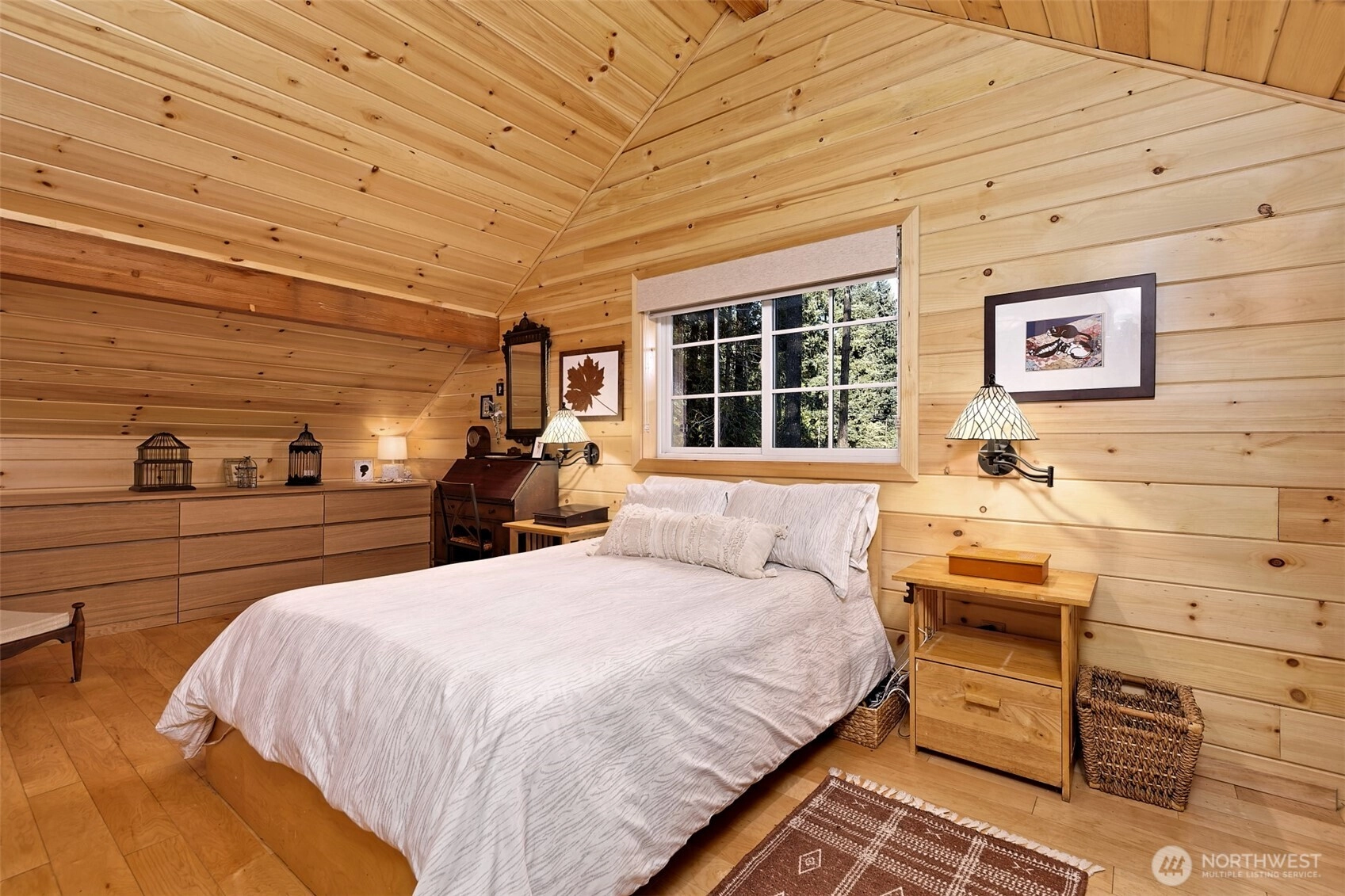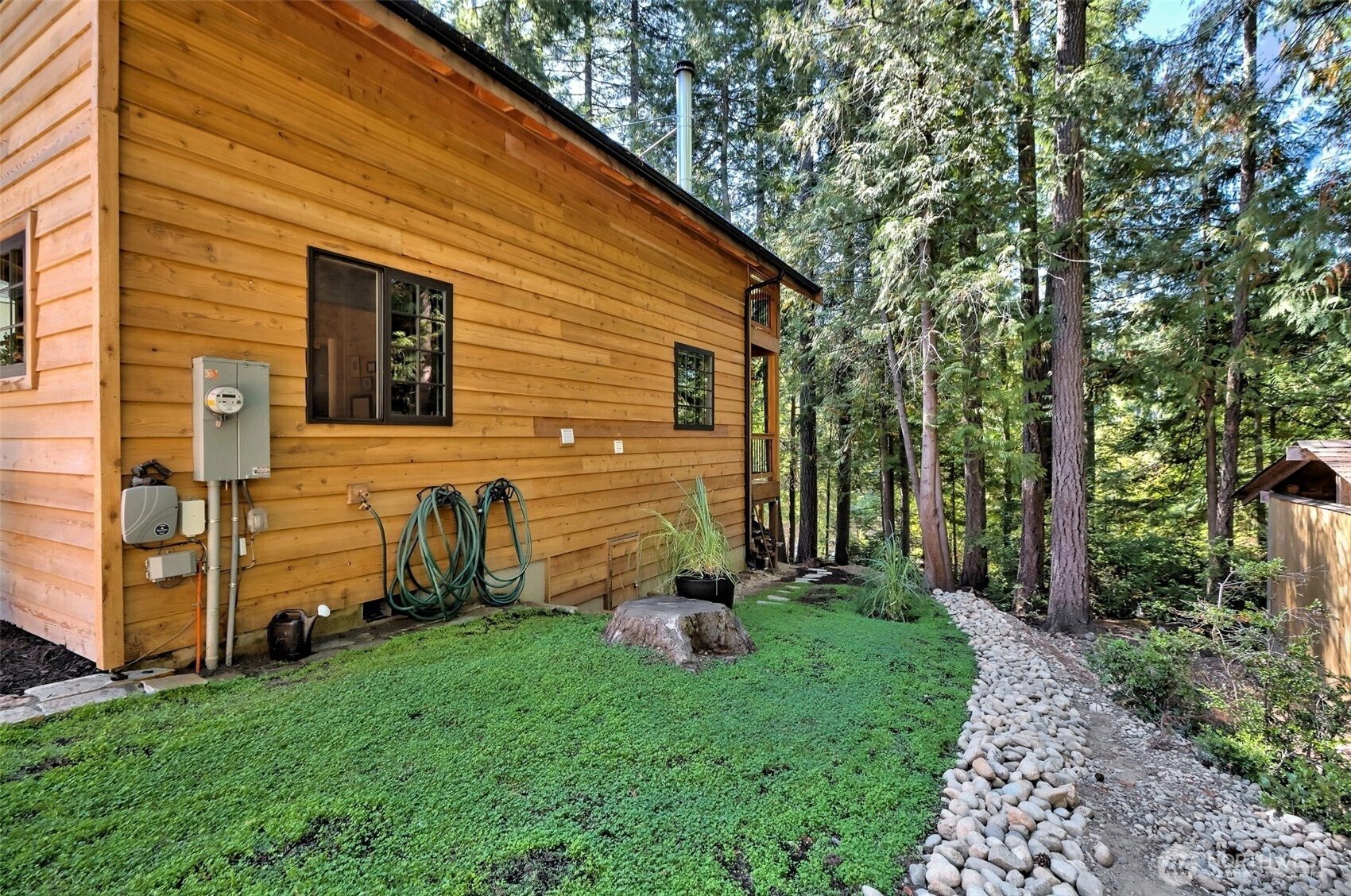 Nestled among evergreens, on Lake Leprechaun at Lake Limerick, this custom cedar chalet style home feels like a storybook. Inside, the tongue & groove knotty pine, warm lighting & wood stove create pure coziness. Filled w/natural light, the loft opens to the airy living space below connected by a walkway to a covered deck-perfect for swaying in a hammock among the treetops. The kitchen shines w/quartz counters, smart roll-out shelving, island & breakfast bar. Watch from a second deck, as deer wander through & birds sing in your Certified Wildlife Habitat backyard. Read on the private dock, kayak or work in your hobby shop. Low-maintenance gardens, ductless heat-pump & walkable crawl space, make this home is as practical as it is enchanting.