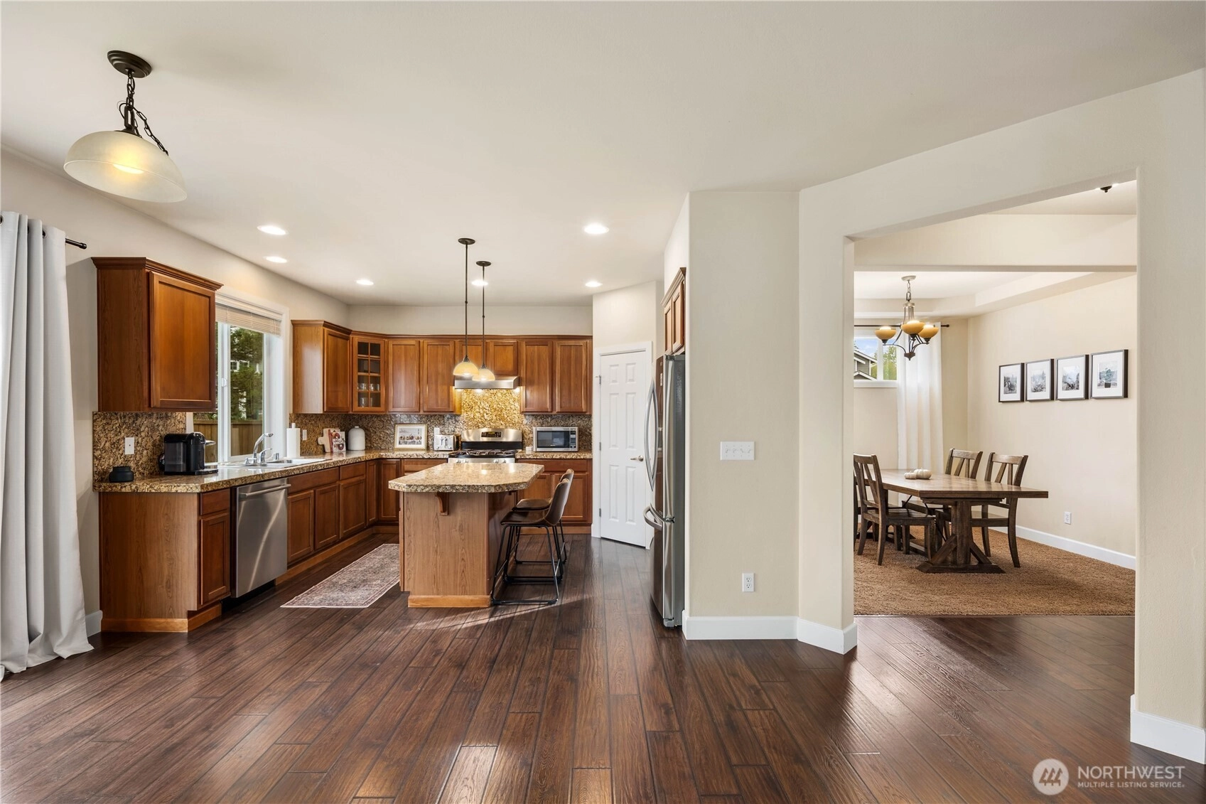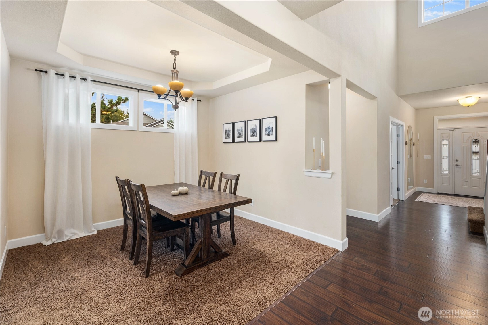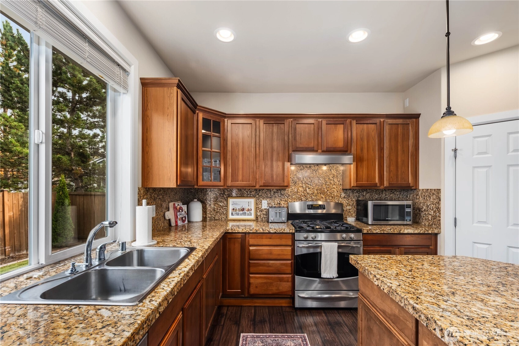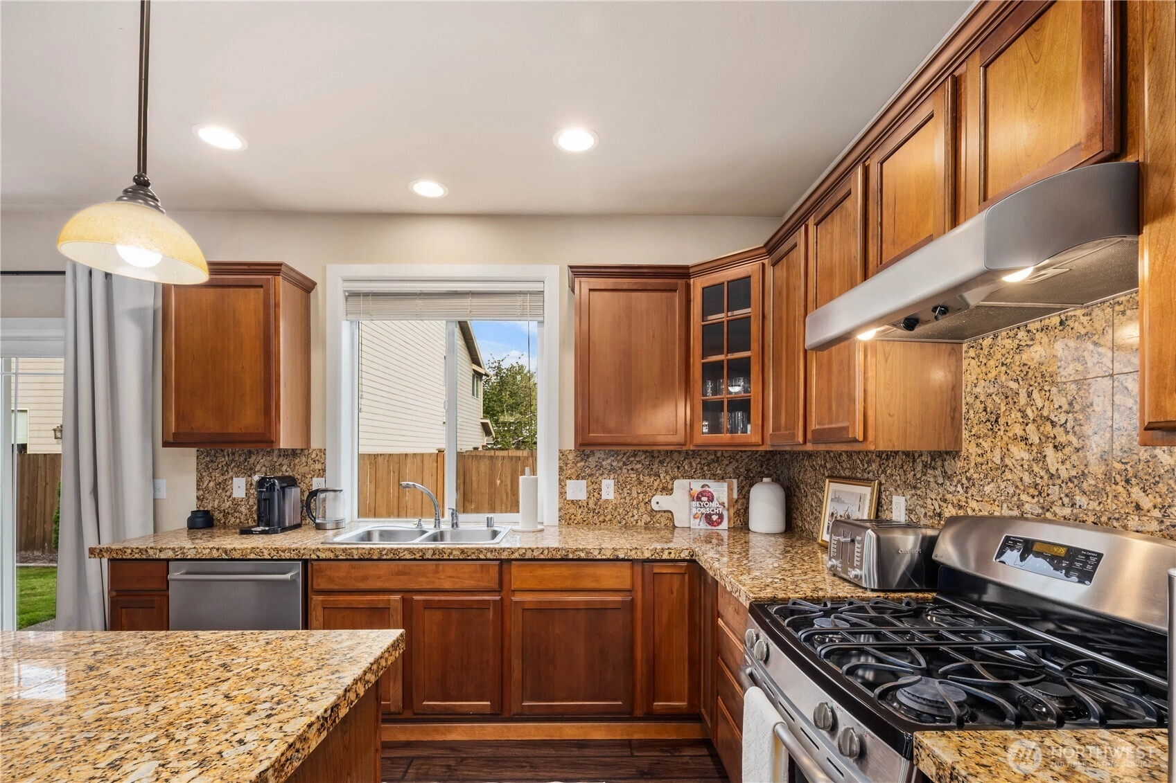 Beautifully maintained Craftsman on a corner lot in North Tapps Estates, just minutes from Lake Tapps. This 3 bed, 2.5 bath + den home features 9’ ceilings, rounded corners, and a formal dining room with coffered ceiling. The chef’s kitchen boasts granite counters, cherry cabinets, stainless appliances, spacious island & walk-in pantry, opening to a bright family room with gas fireplace and elegant millwork. The primary suite offers French doors, walk-in closet & spa-like 5-piece bath. Enjoy central A/C, fully fenced yard, and 2-car garage. Close to community park, shopping & Dieringer schools. Come tour today!