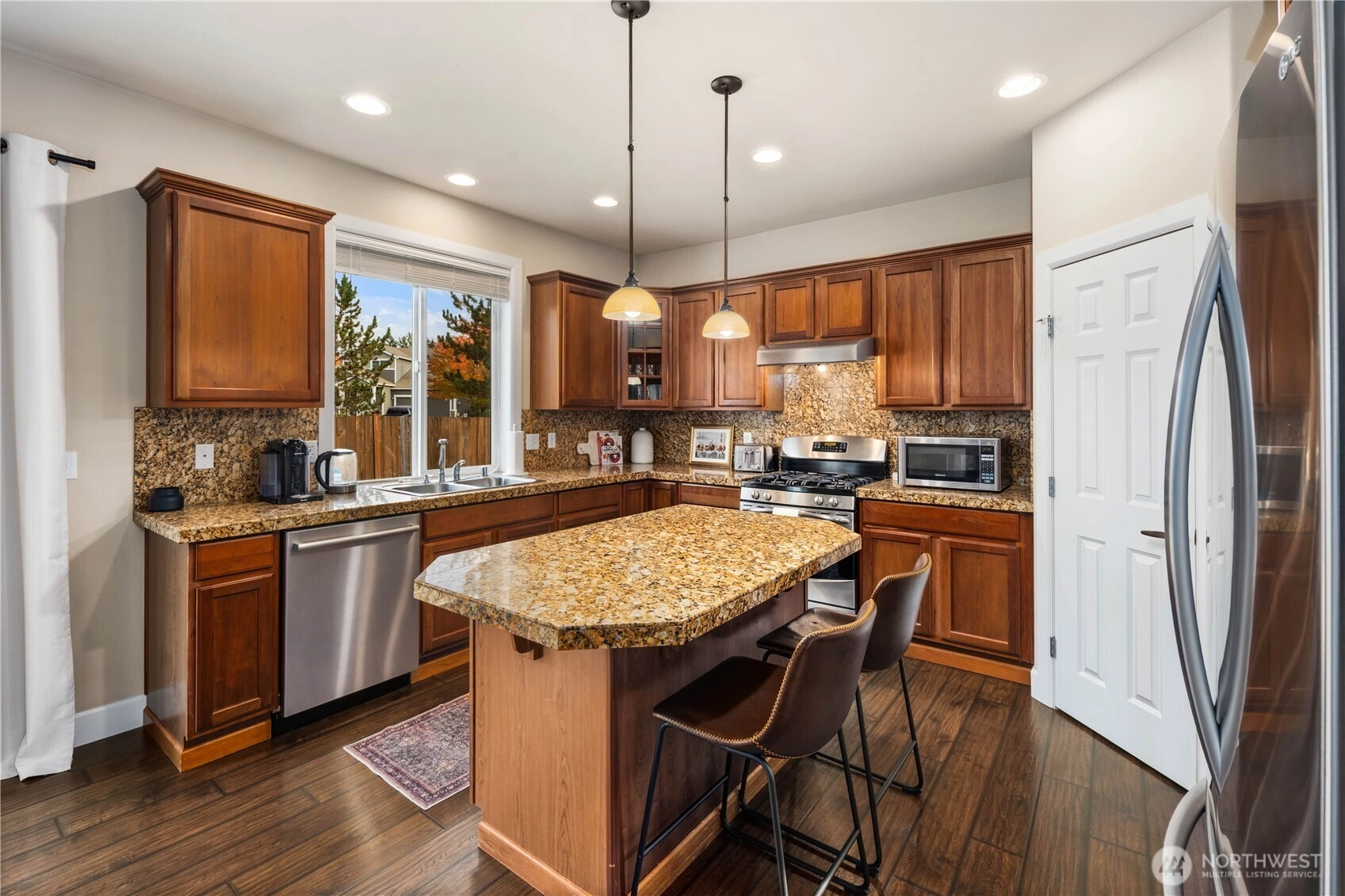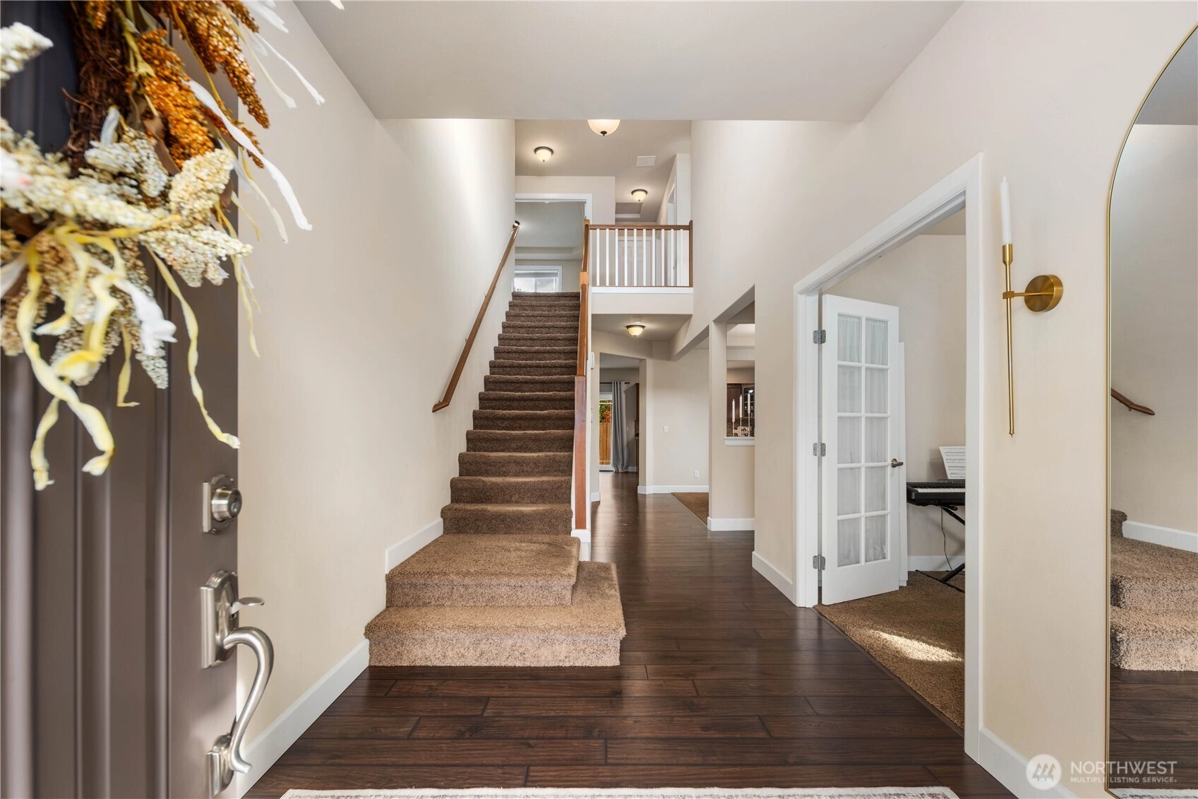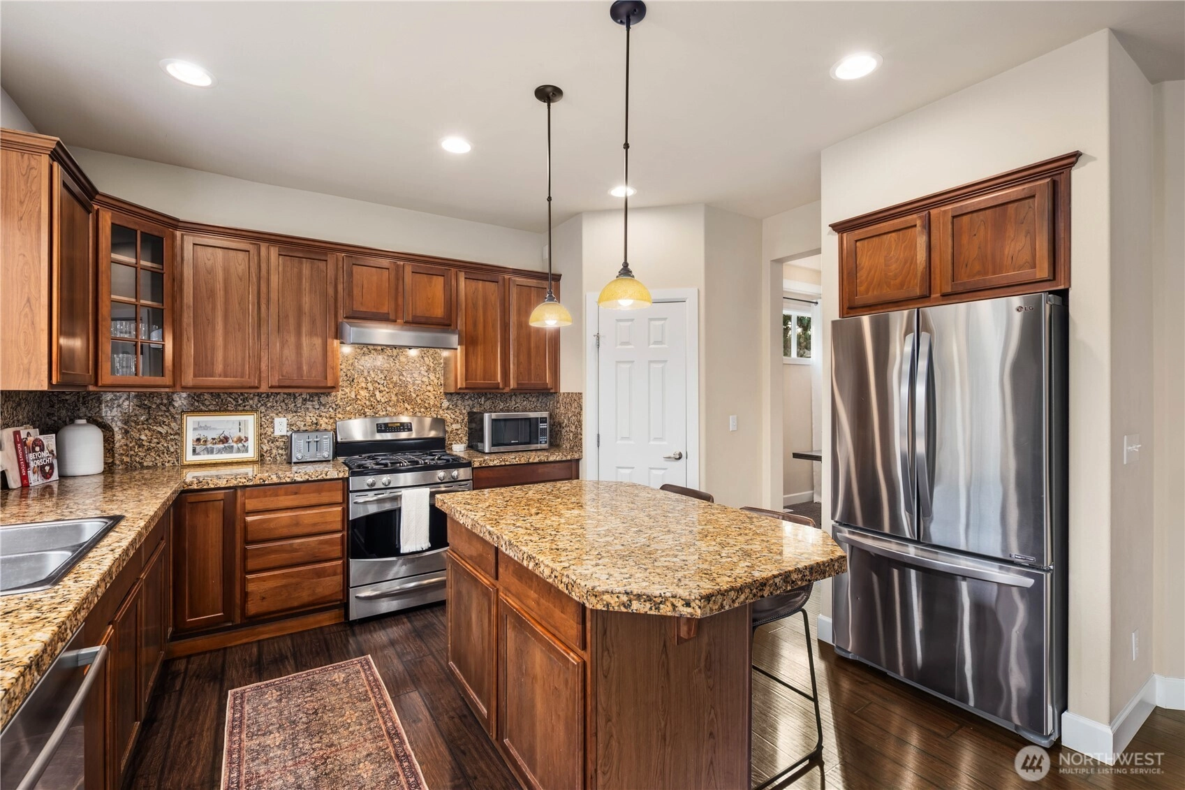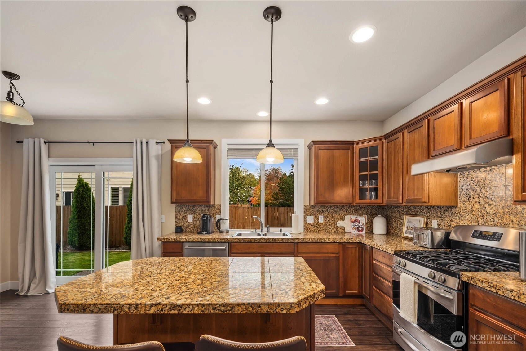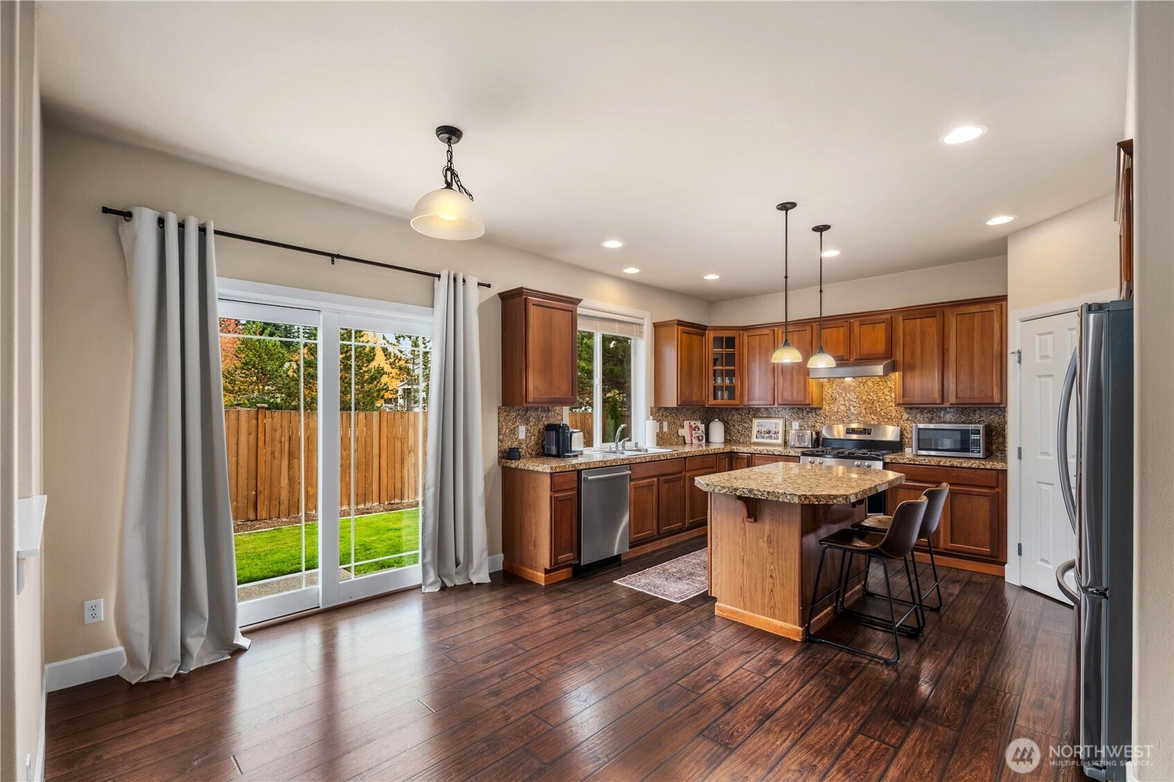 Beautifully maintained Craftsman on a corner lot in North Tapps Estates, just minutes from Lake Tapps. This 3 bed, 2.5 bath + den home features 9’ ceilings, rounded corners, and a formal dining room with coffered ceiling. The chef’s kitchen boasts granite counters, cherry cabinets, stainless appliances, spacious island & walk-in pantry, opening to a bright family room with gas fireplace and elegant millwork. The primary suite offers French doors, walk-in closet & spa-like 5-piece bath. Enjoy central A/C, fully fenced yard, and 2-car garage. Close to community park, shopping & Dieringer schools. Come tour today!