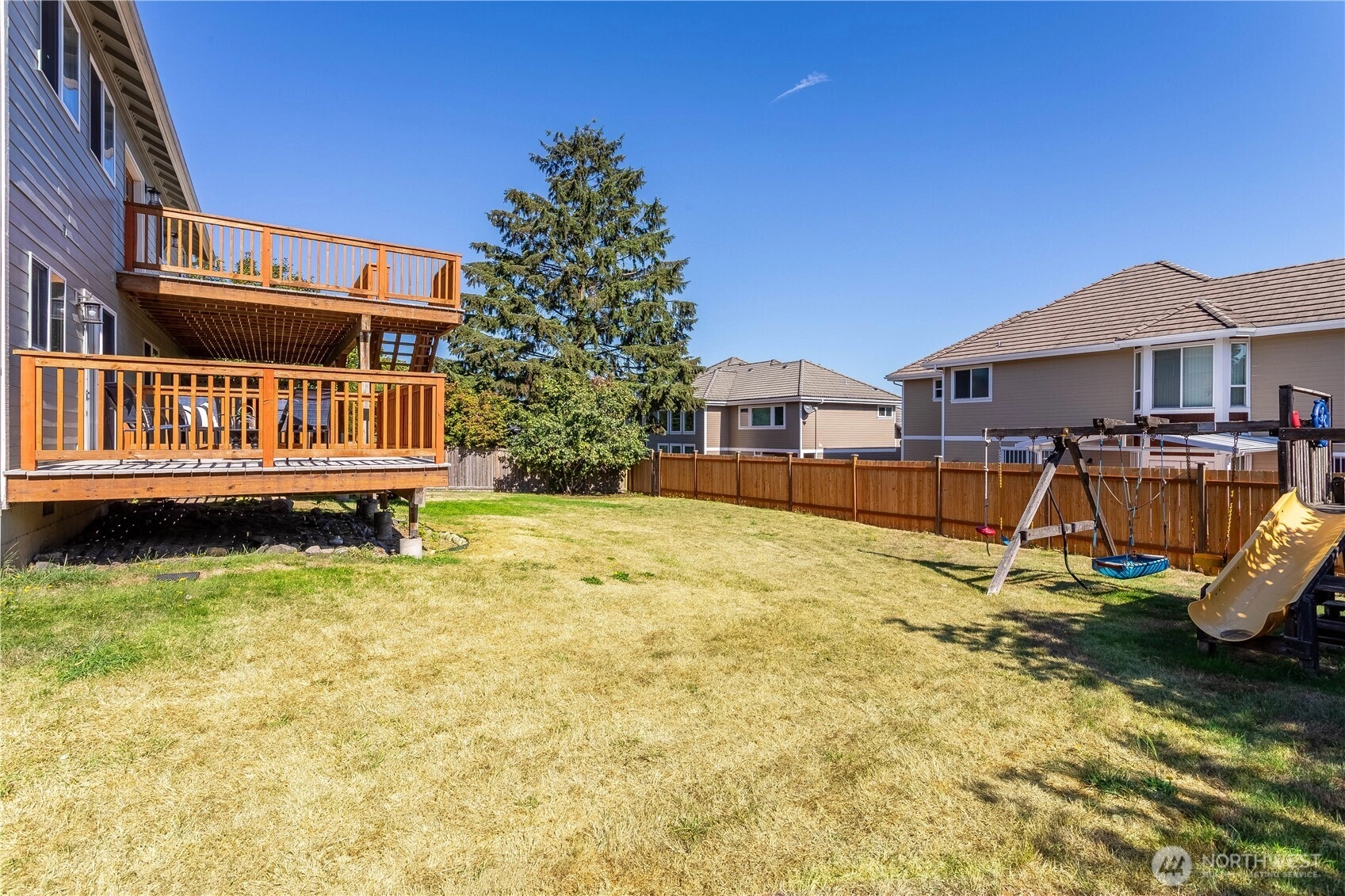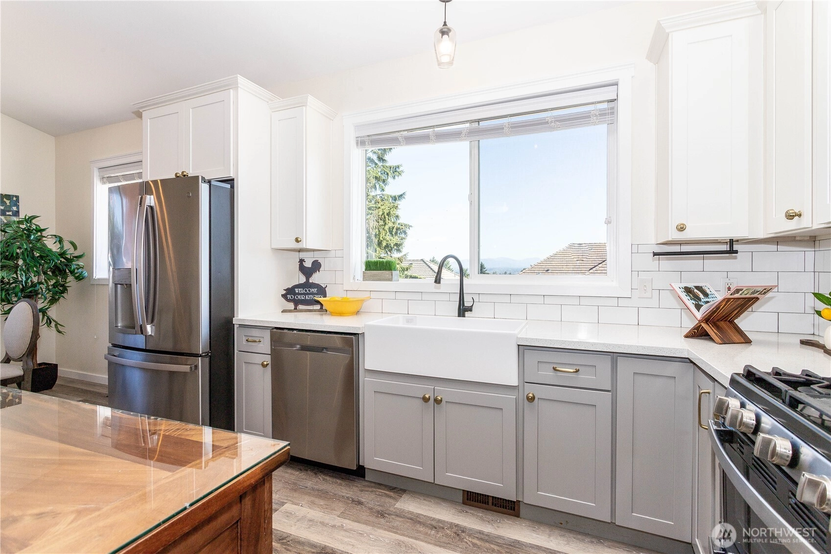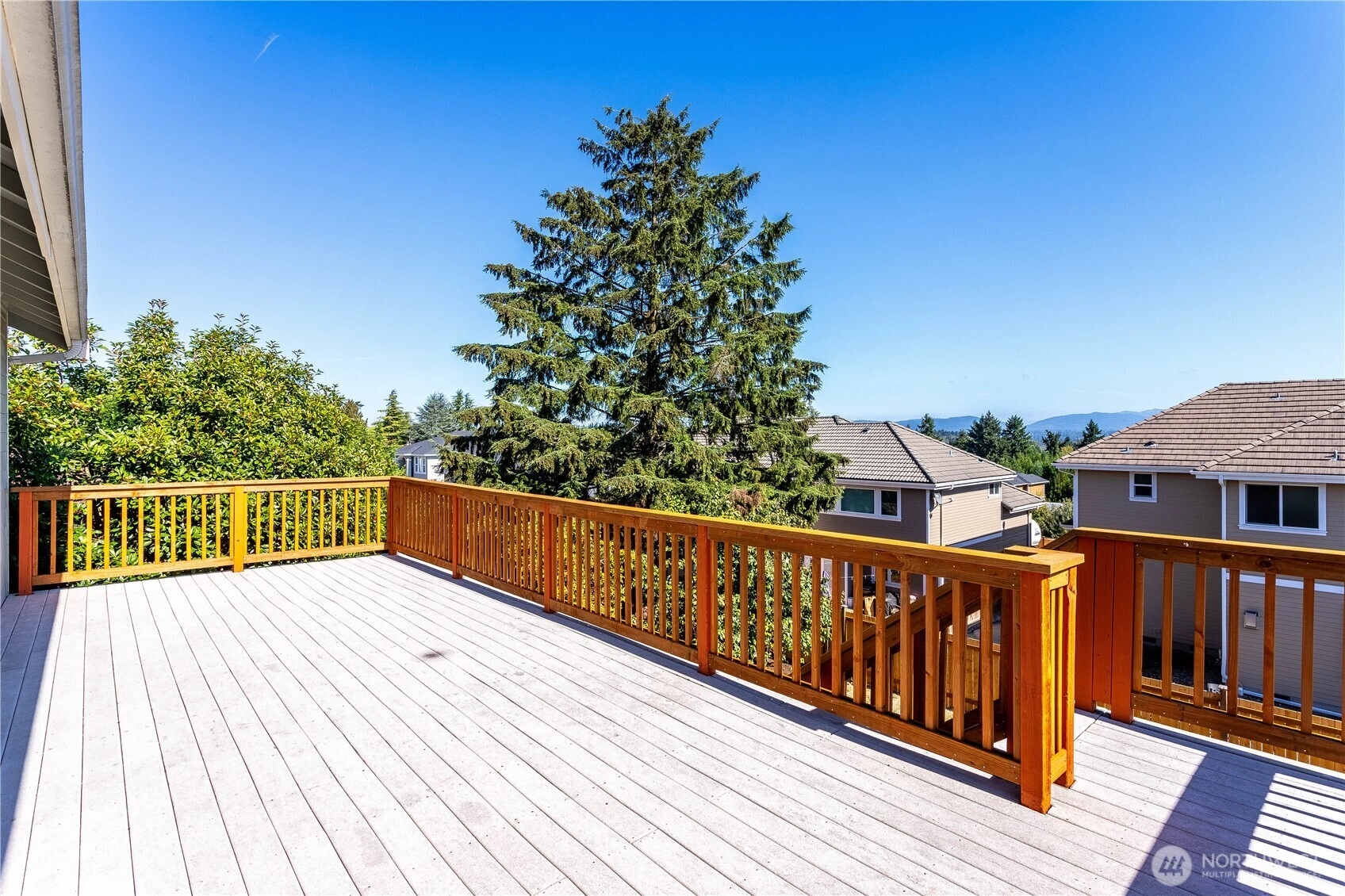 STUNNING VIEWS & CUSTOM BUILT - wrapped in elegance with beautiful territorial & mountain views. Main floor offers a great room with vaulted ceilings, two guest bedrooms & a primary suite with its own private back deck. Upper floor with view windows offers fully updated kitchen, updated bathroom, junior suite bedroom with barn doors, bonus room for crafts/office & spacious family room w/ projection entertainment system. Huge deck with views and gas hook-up for BBQ, a great hosting area year-round. Large flat front & back yard w/ detached storage, fruit trees, playset, RV parking & site already surveyed with a DADU preliminary drawings proposal. Centrally located I-5, I-405, Parks, Southcenter Shopping & SeaTac Airport. A Gem To See!