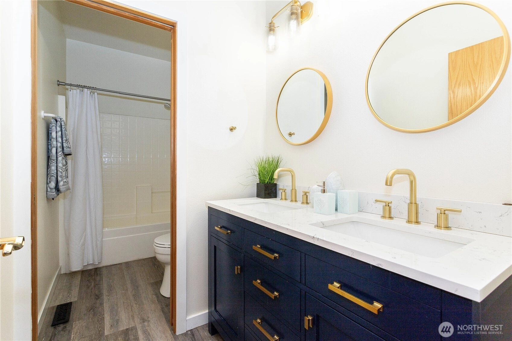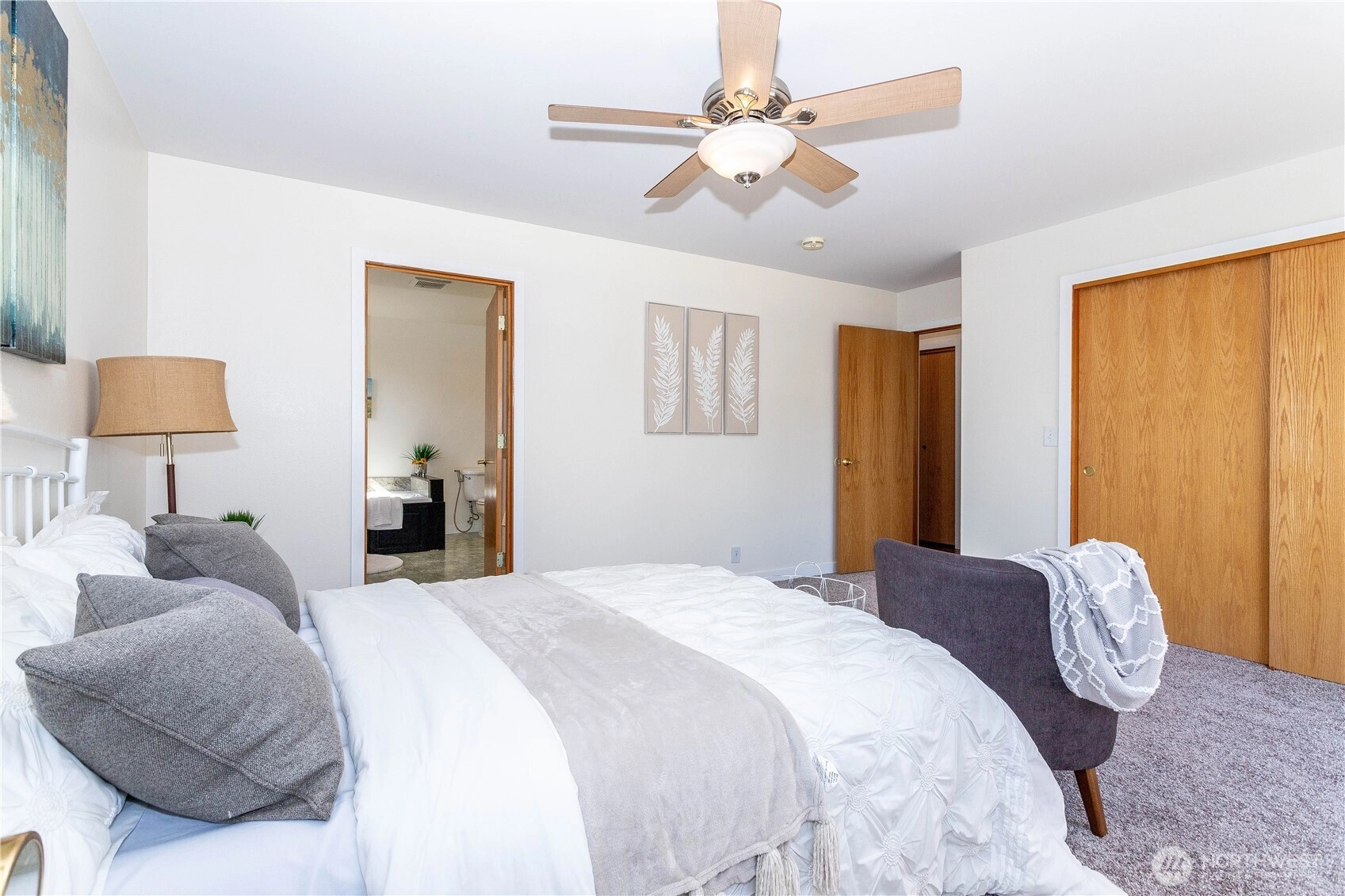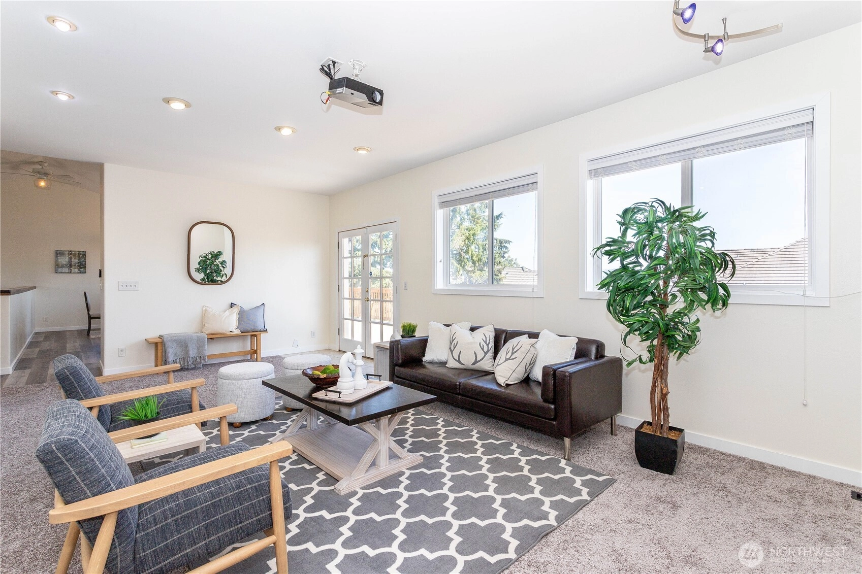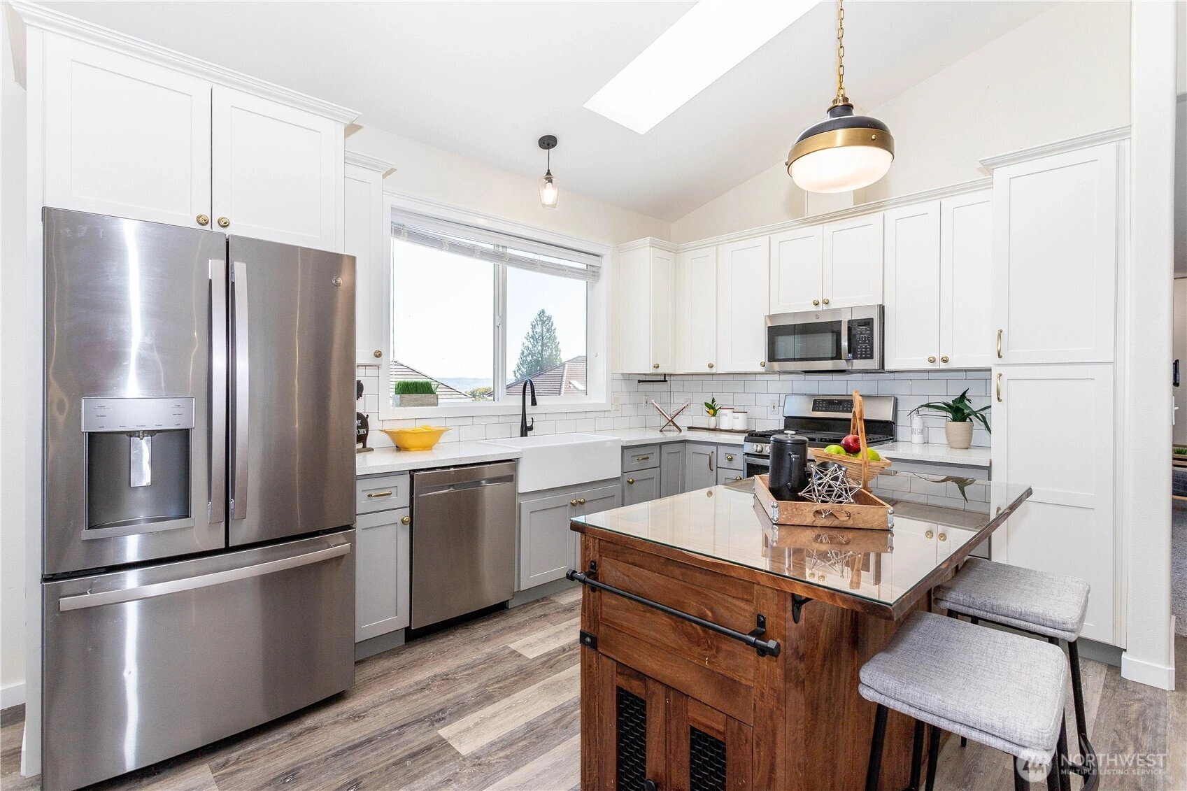 STUNNING VIEWS & CUSTOM BUILT - wrapped in elegance with beautiful territorial & mountain views. Main floor offers a great room with vaulted ceilings, two guest bedrooms & a primary suite with its own private back deck. Upper floor with view windows offers fully updated kitchen, updated bathroom, junior suite bedroom with barn doors, bonus room for crafts/office & spacious family room w/ projection entertainment system. Huge deck with views and gas hook-up for BBQ, a great hosting area year-round. Large flat front & back yard w/ detached storage, fruit trees, playset, RV parking & site already surveyed with a DADU preliminary drawings proposal. Centrally located I-5, I-405, Parks, Southcenter Shopping & SeaTac Airport. A Gem To See!