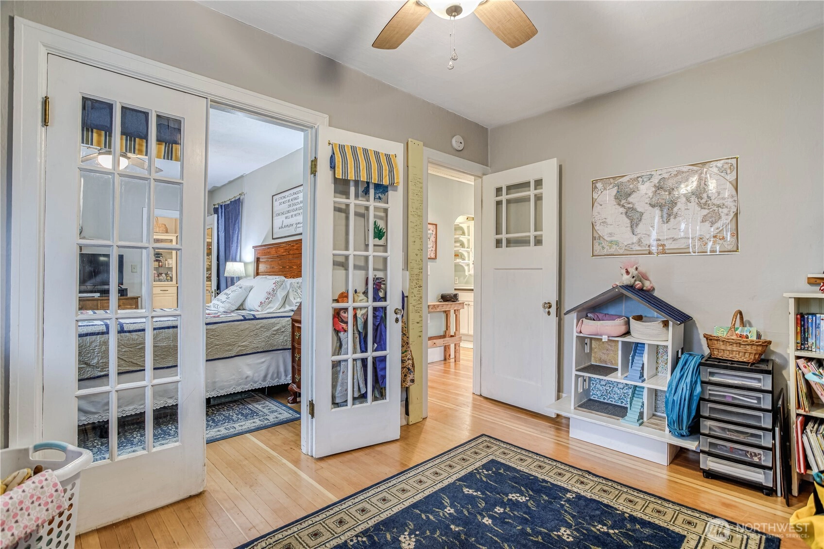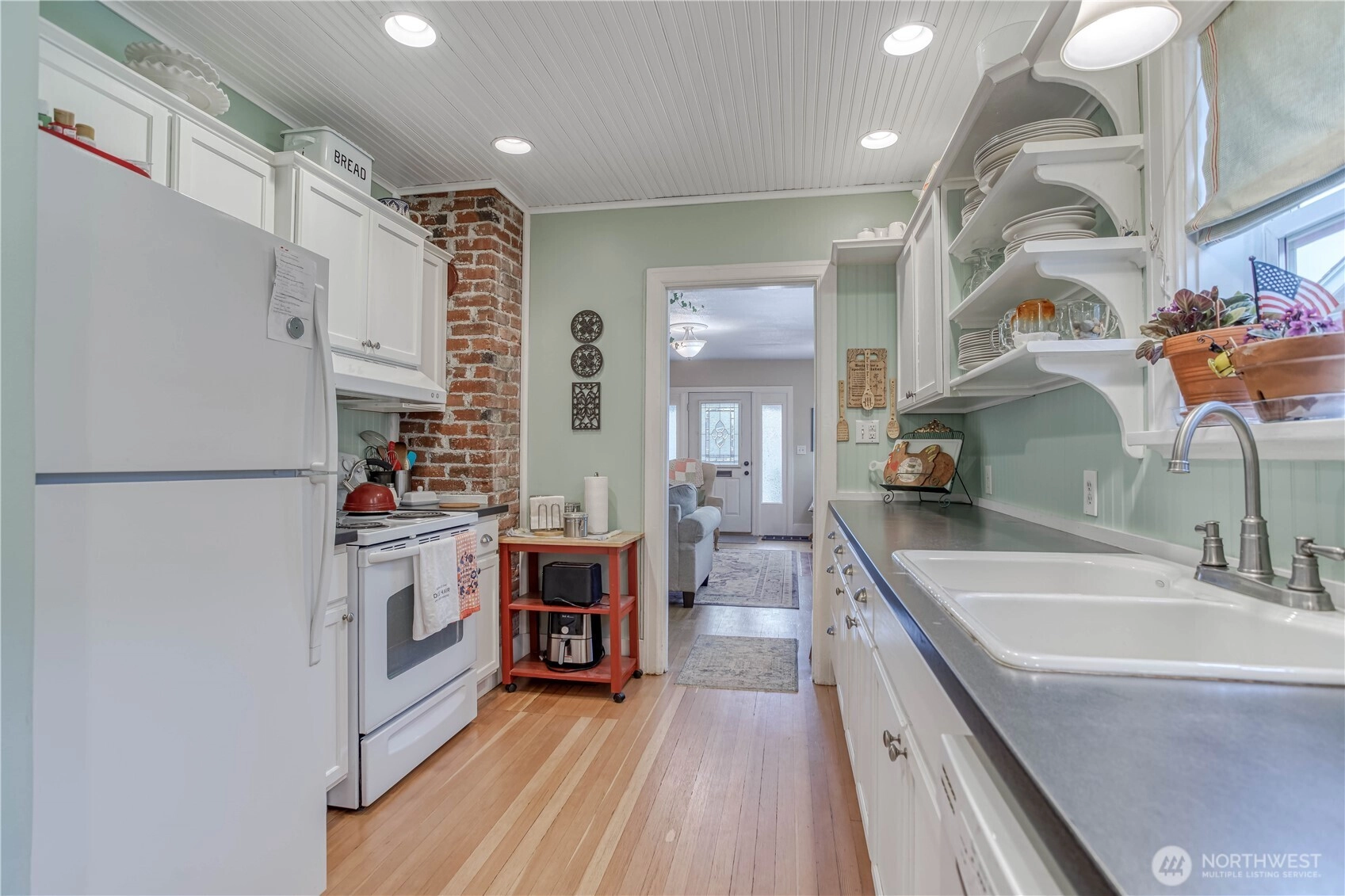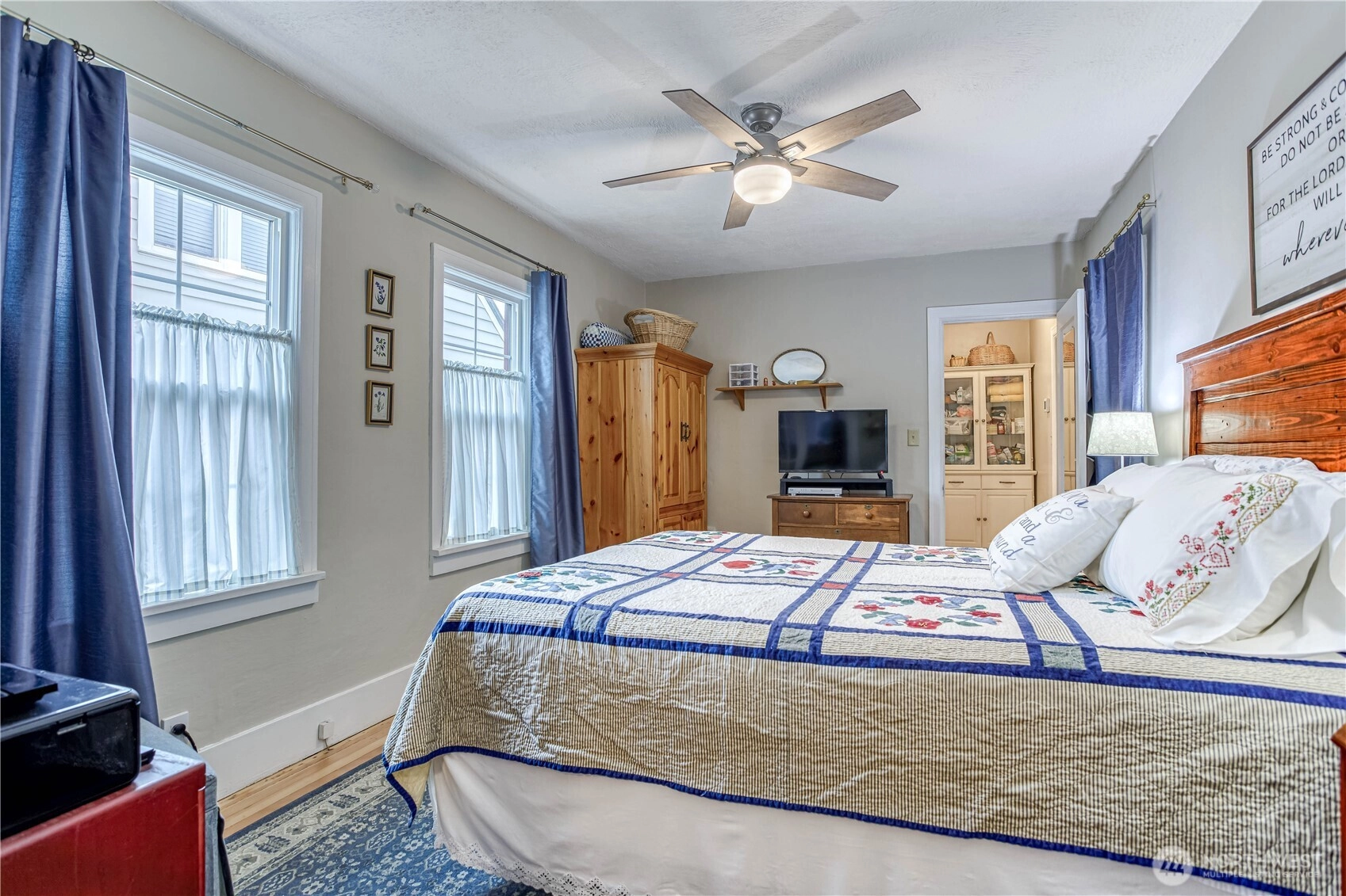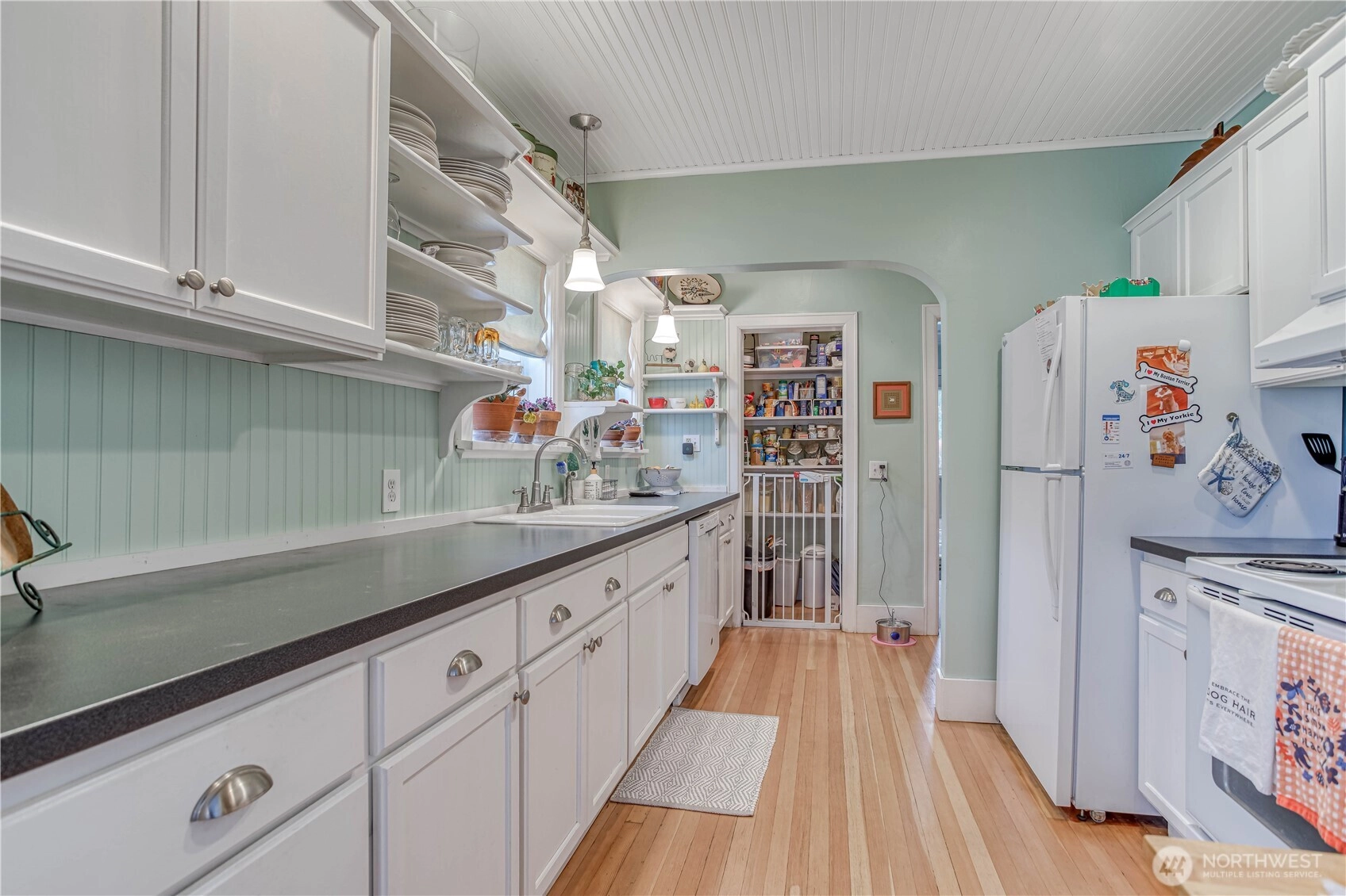 ADORABLE move-in ready cottage. Thoughtfully planned updates are done top to bottom. This home is CHARMING! Updated kitchen and bathrooms. Solid surface counter tops, bead board ceiling, open shelving, hardwood floors and a walk-in pantry make the galley kitchen a dream. New heat pump, upgraded electrical panel and wiring, egress windows in the basement, exterior and interior paint. A wood burning fireplace insert adds charms and saves heating costs. Terraced low maintenance landscaping in the front yard with a drip system. The front porch features tasteful tile and trex decking. Fenced backyard with garden space and windsail covered patio. Private driveway and single car garage. 4th bedroom off primary can be bedroom, office or playroom.