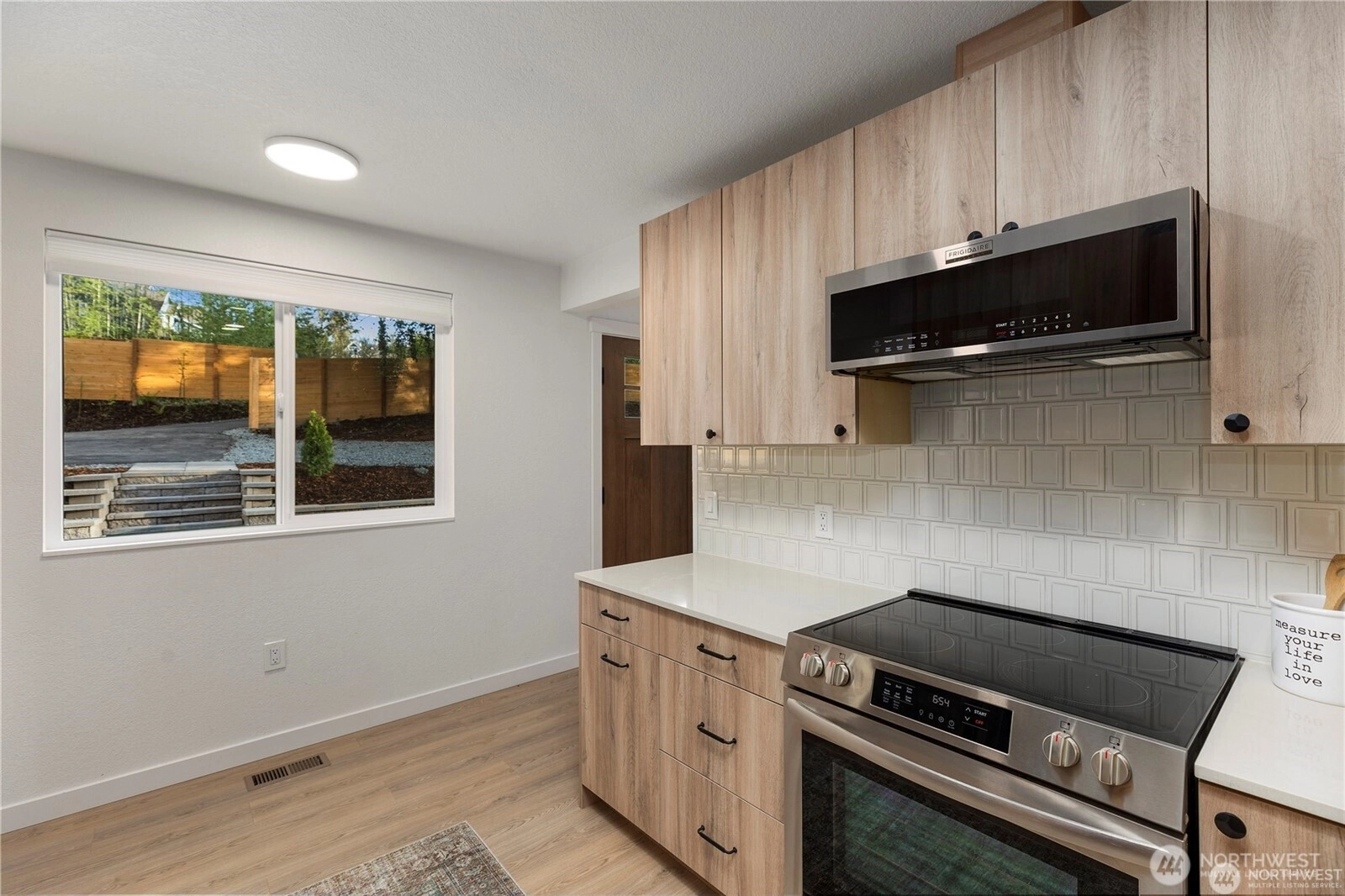 Discover the epitome of modern living in this beautifully updated 3-bed, 2-bath home nestled in Edgewood's heart. Boasting 1,311 sqft, every inch exudes elegance. Revel in endless updates including a new roof, siding, windows, kitchen, bathrooms, flooring and landscaping. The kitchen is a chef's dream with custom soft-close cabinets, quartz countertops, SS appliances, and a tile backsplash. Relax by the wood-burning fireplace in the spacious living room. A main-floor bedroom offers convenience. Outside, a sprawling lot awaits with new fencing, deck and landscaping, plus RV parking. With highways, schools, and shopping just minutes away, seize this opportunity for unparalleled comfort and convenience. Come tour today!