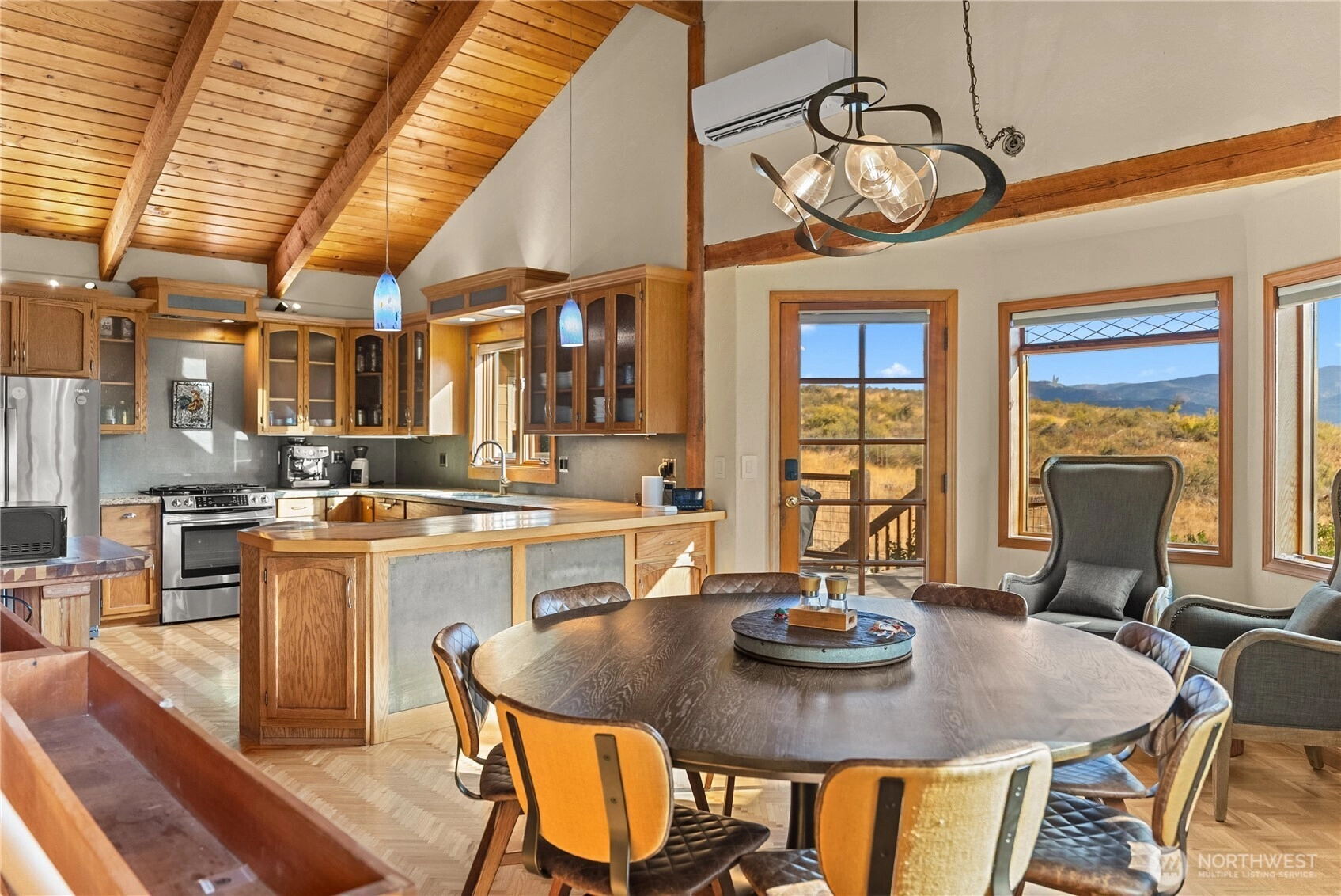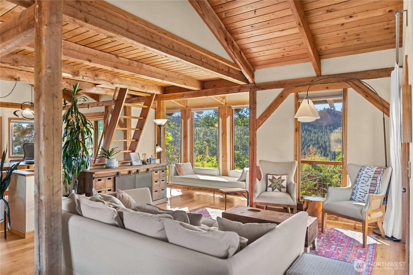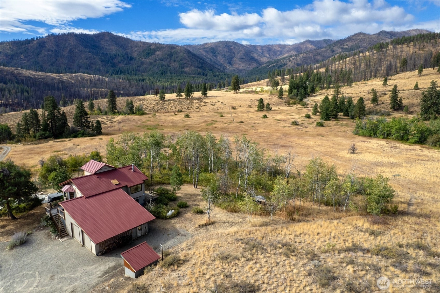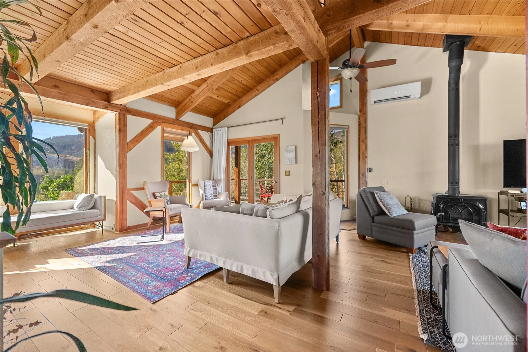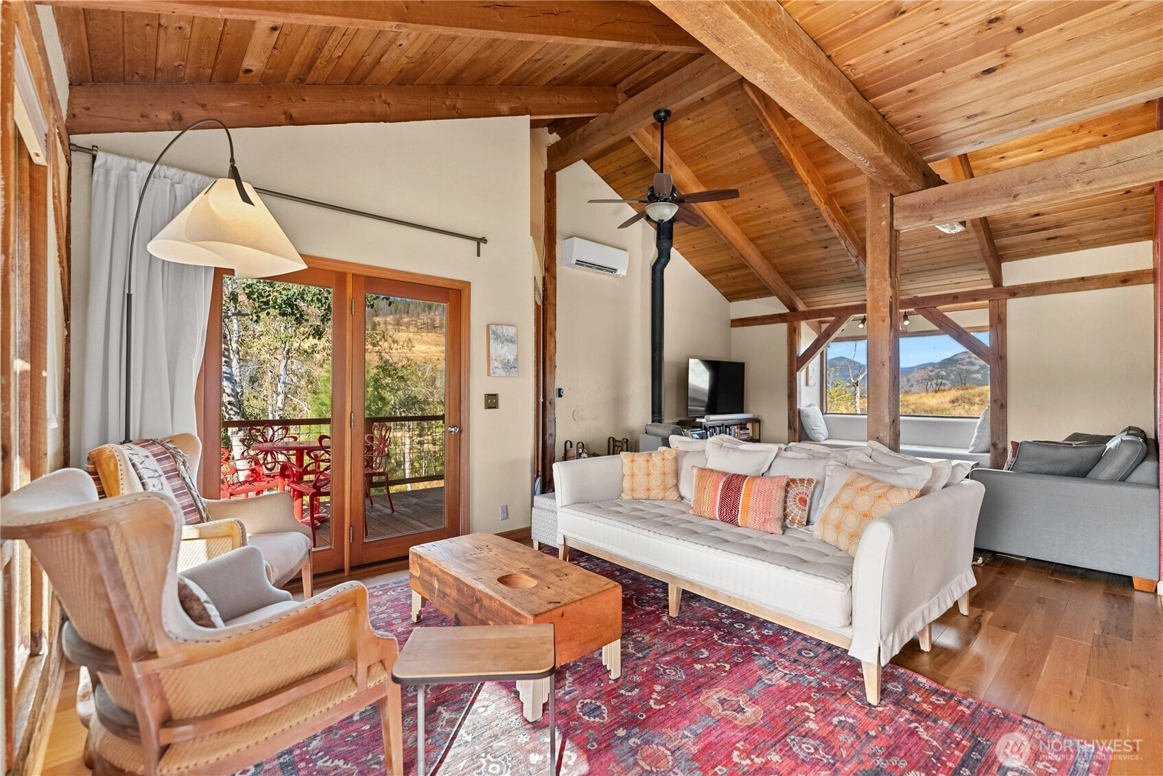 Exquisite Wolf Creek retreat on 40 acres with private trails and direct access to public land. Step out your door into the National Forest and explore for days. This hand-crafted timber frame home showcases reclaimed timbers, an efficient open-concept floor plan, 3 bedrooms plus a guest loft, and 2 bathrooms. Enjoy seamless indoor-outdoor living with an oversized patio, shaded arbor, and a deck off the primary suite—perfect for morning coffee or evening stargazing. Expansive mountain vistas surround you at every turn. A rare opportunity to own a stunning Methow Valley property that blends timeless craftsmanship with unmatched natural beauty.