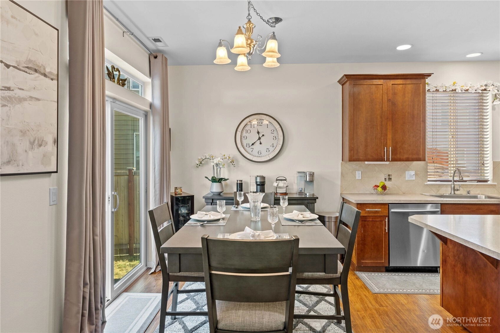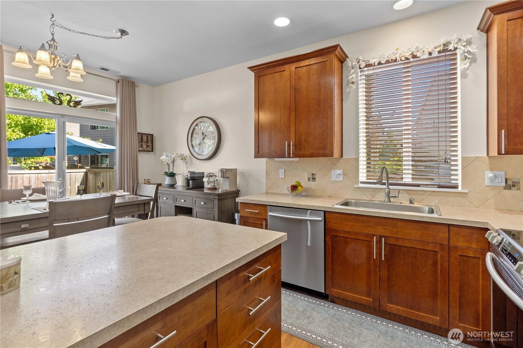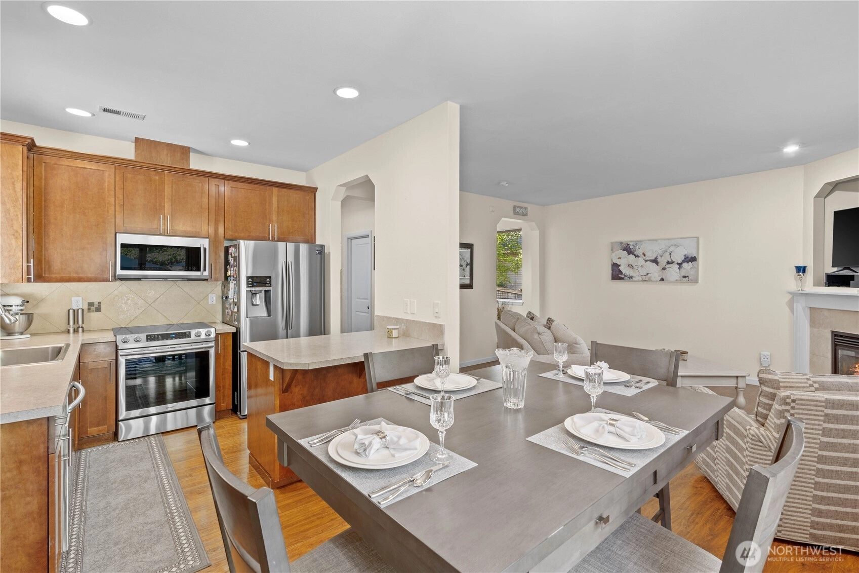Welcome to easy living in Navarro, inside sought-after Gem Heights in Puyallup! This beautifully maintained 4-bed, 2.5 bath home has a perfect flowing layout. The open & bright living room flows seamlessly into the dining area & kitchen for easy everyday living & fun entertaining opportunities. The kitchen's island/peninsula fits stools for casual dining. Stainless appliances keep it classy. Upstairs, you will find your primary suite w/attached bath & walk-in closet. Three more spacious bedrooms, a full hall bath, & convenient upstairs laundry complete your new home. A slider off your dining area leads to a fully fenced, low-maintenance backyard w/patio. Don't miss the park right behind! Just minutes from shopping, dining, & commuting!