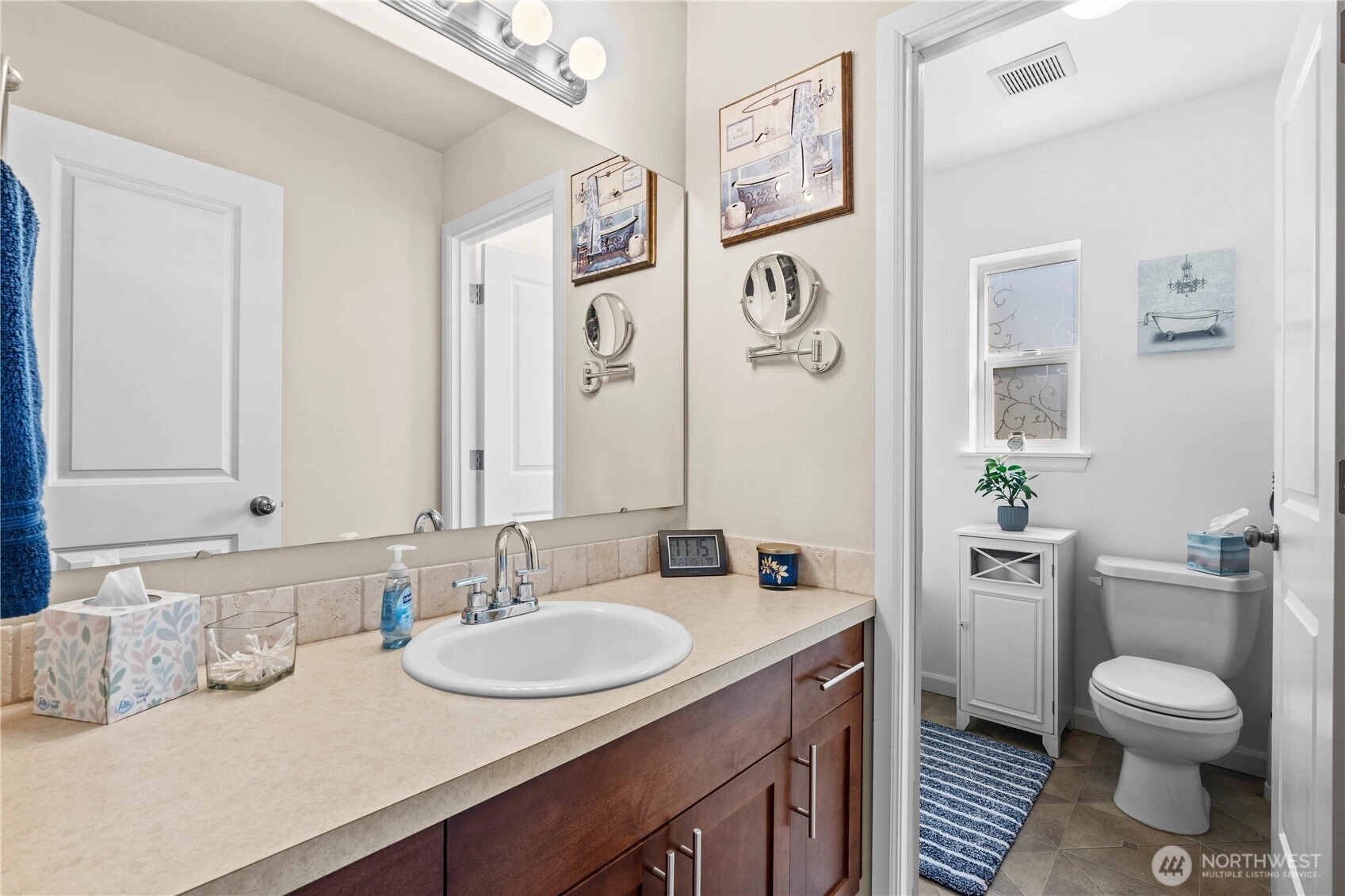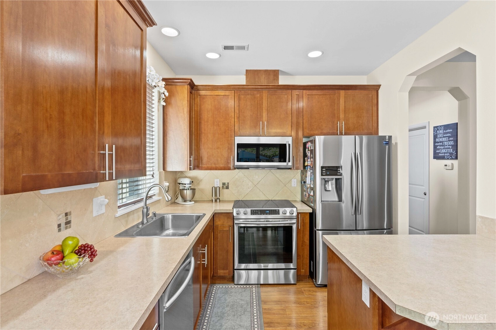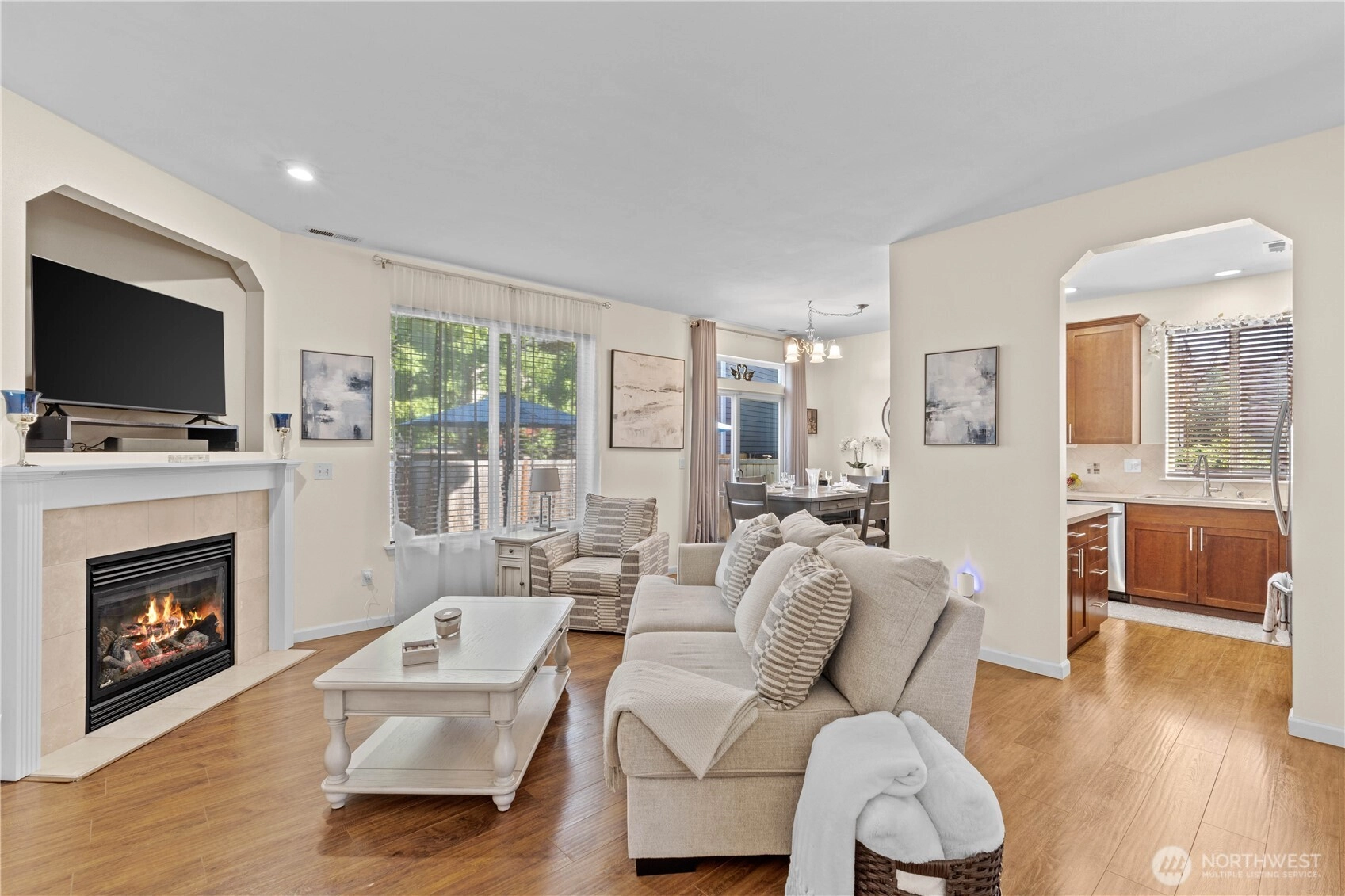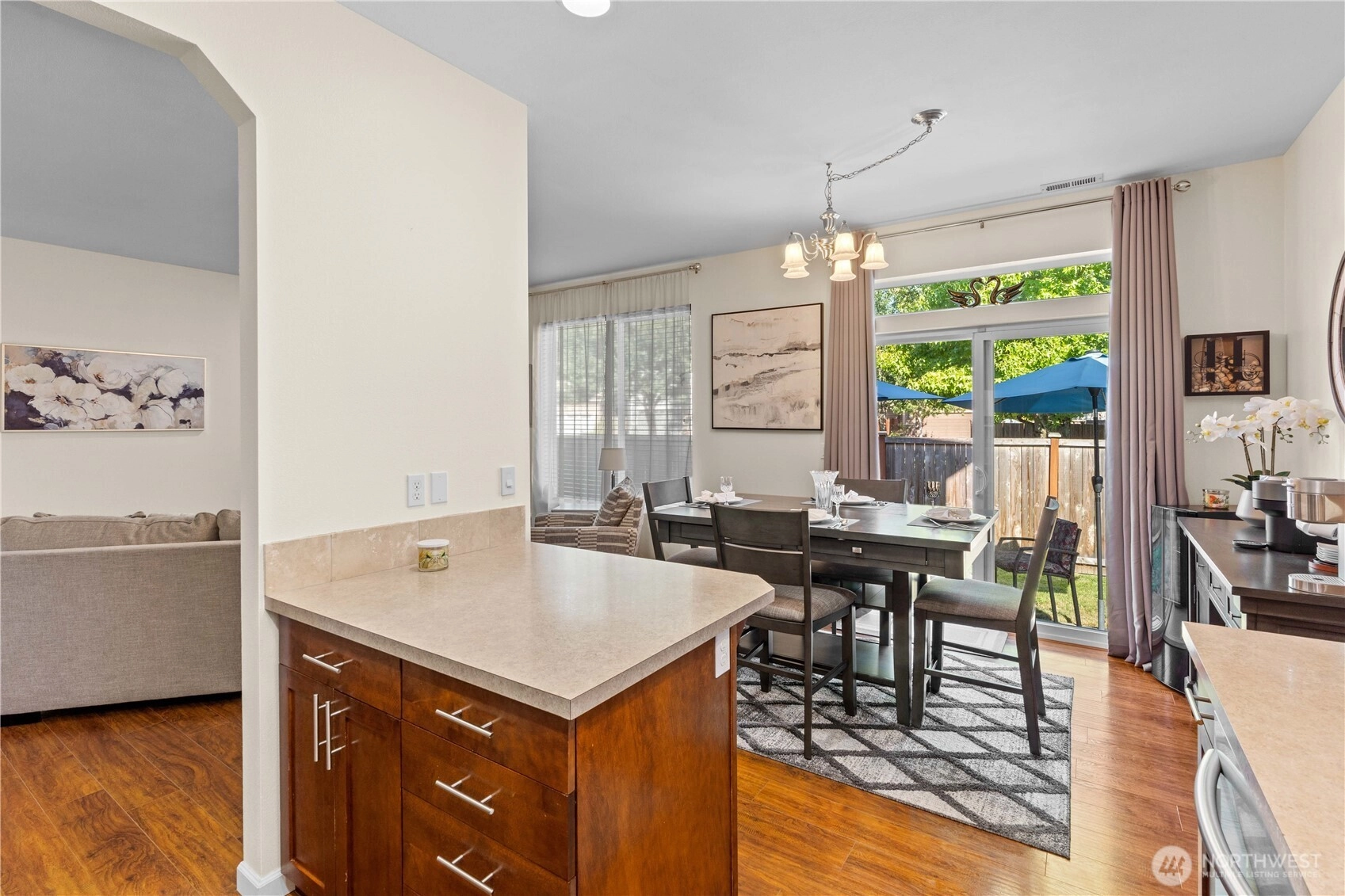 Welcome to easy living in Navarro, inside sought-after Gem Heights in Puyallup! This beautifully maintained 4-bed, 2.5 bath home has a perfect flowing layout. The open & bright living room flows seamlessly into the dining area & kitchen for easy everyday living & fun entertaining opportunities. The kitchen's island/peninsula fits stools for casual dining. Stainless appliances keep it classy. Upstairs, you will find your primary suite w/attached bath & walk-in closet. Three more spacious bedrooms, a full hall bath, & convenient upstairs laundry complete your new home. A slider off your dining area leads to a fully fenced, low-maintenance backyard w/patio. Don't miss the park right behind! Just minutes from shopping, dining, & commuting!