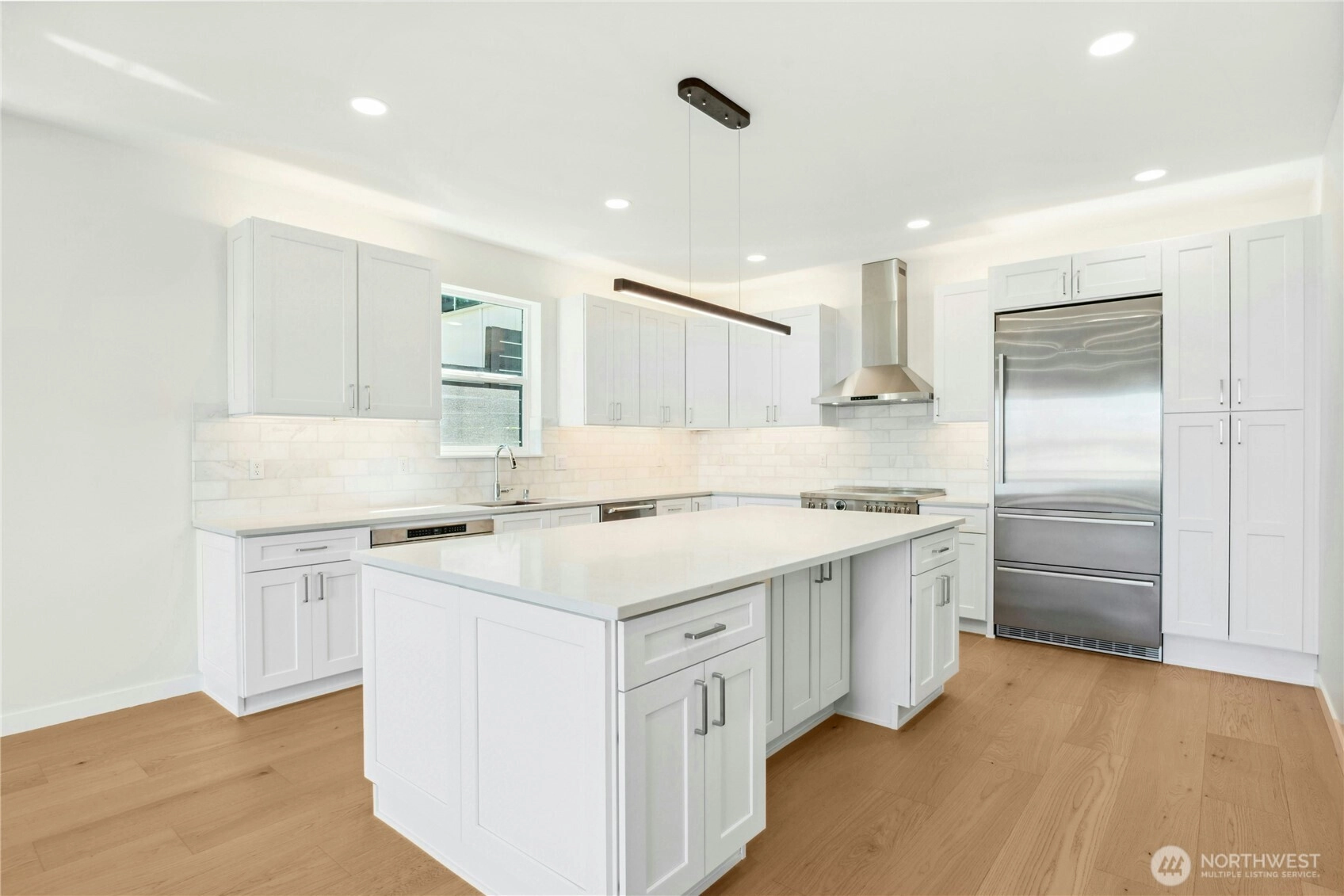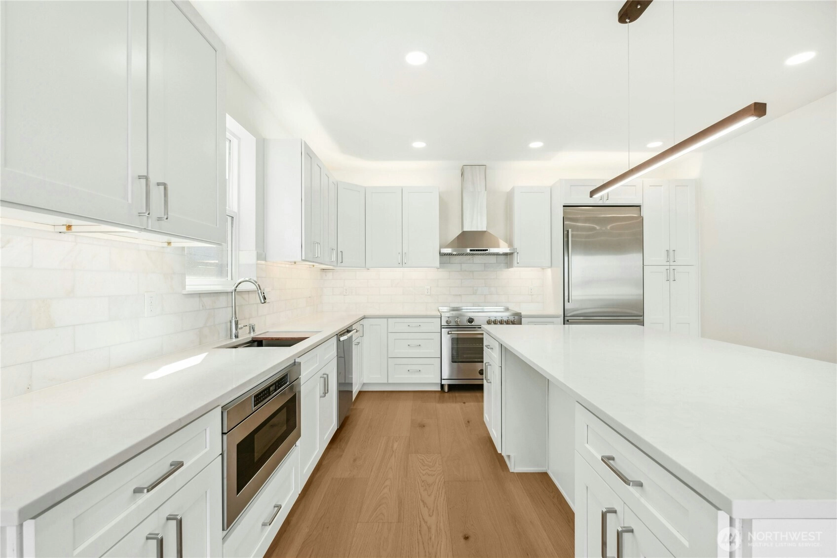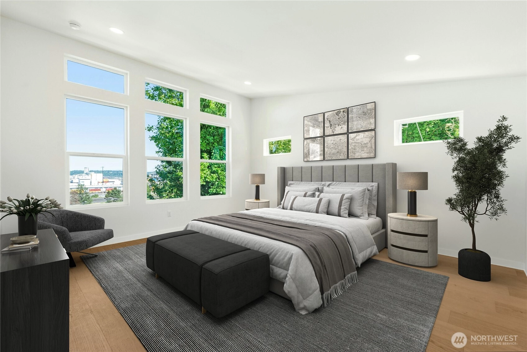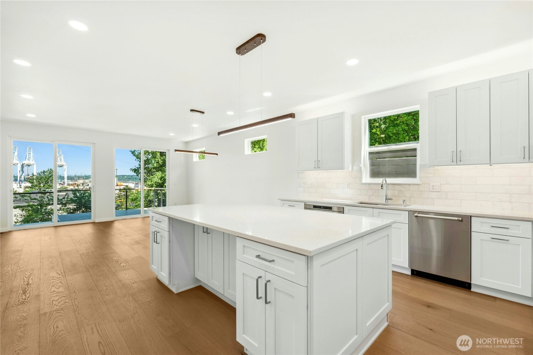Nestled in a private neighborhood above the waterfront in West Seattle’s Admiral District, this modern new construction home is close to the water taxi, Alki Beach, and is only 4 minutes from shops and restaurants and just 10 minutes from downtown. The home features expansive windows and captivating skyline views from the living room, deck, and vaulted primary suite. This energy-efficient air-conditioned retreat includes a large gourmet Bertazzoni kitchen, spa-inspired ensuite with heated floors, and a custom walk-in closet. An oversized 2-car EV-ready garage with extra parking and energy-efficient design completes this rare find.
