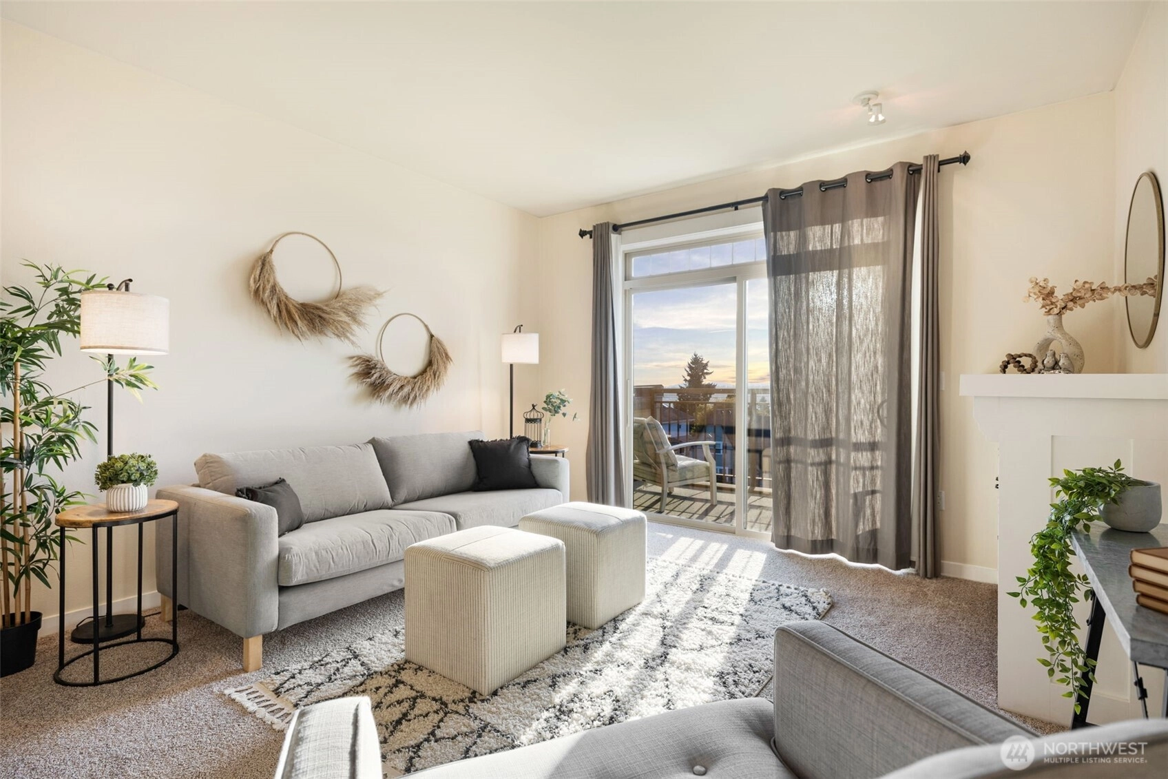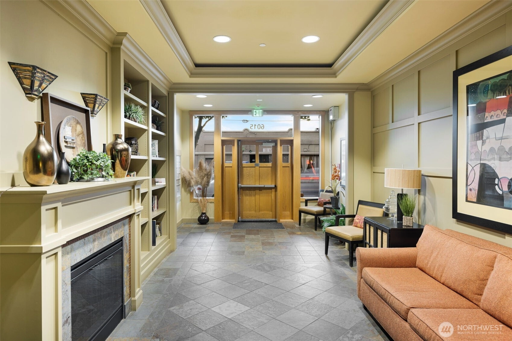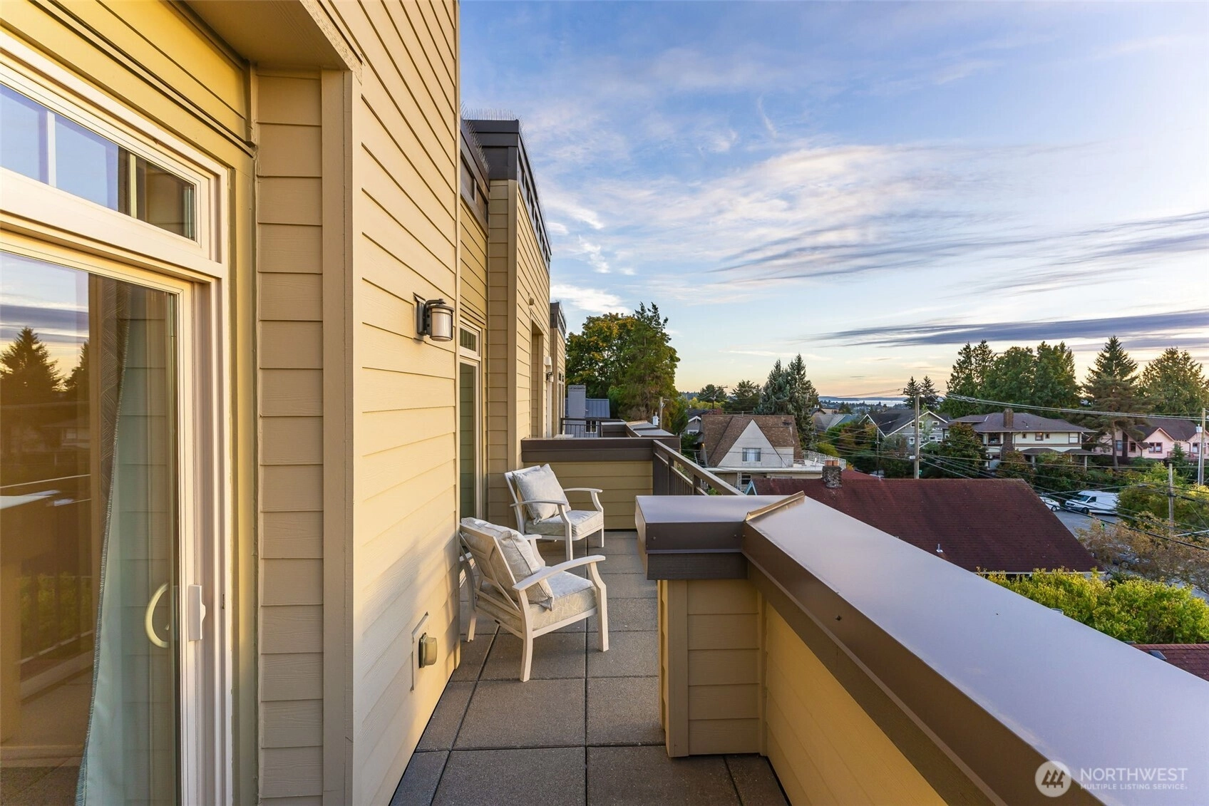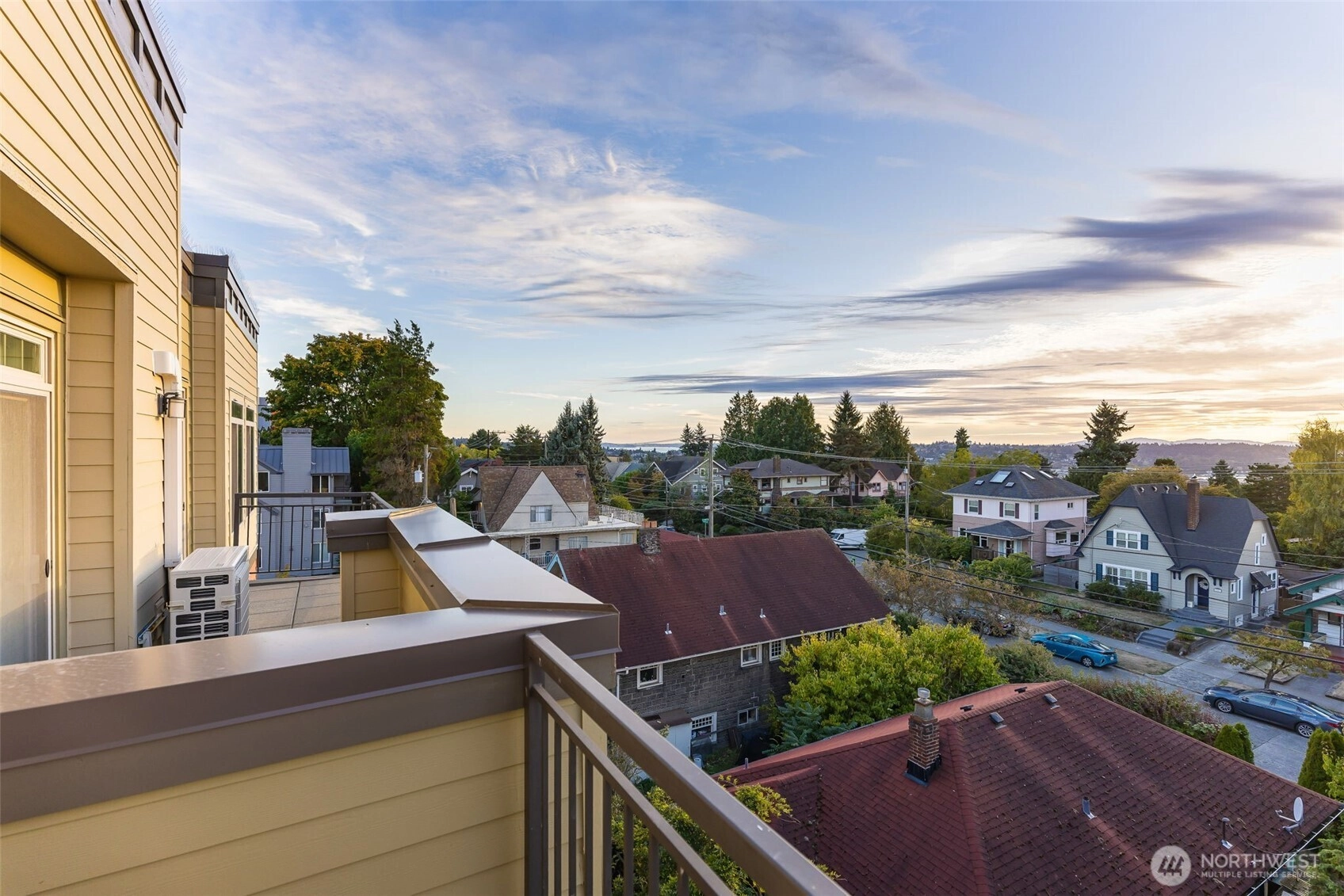 Welcome to the pinnacle of Phinney Ridge! Soak in sweeping views of Puget Sound and the Olympics from this spacious top-floor unit. Timeless craftsmanship meets thoughtful design with light-filled spaces featuring open kitchen with eating bar, large bedroom with walk-in closet, in-unit laundry, and expansive deck. Secure garage with easy parking and storage. Enjoy panoramic vistas from the rooftop deck, cozy up with a book in the welcoming lobby. Live in the heart of all that Phinney has to offer: pop downstairs for pastries and espresso, stroll to some of the best restaurants, shops and pubs in all of Seattle. Moments to Green Lake and concerts at the Zoo. Hop on the bus for easy access to downtown and light rail. Your home above it all!
