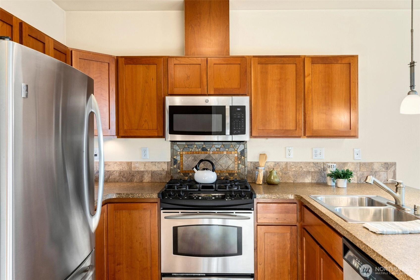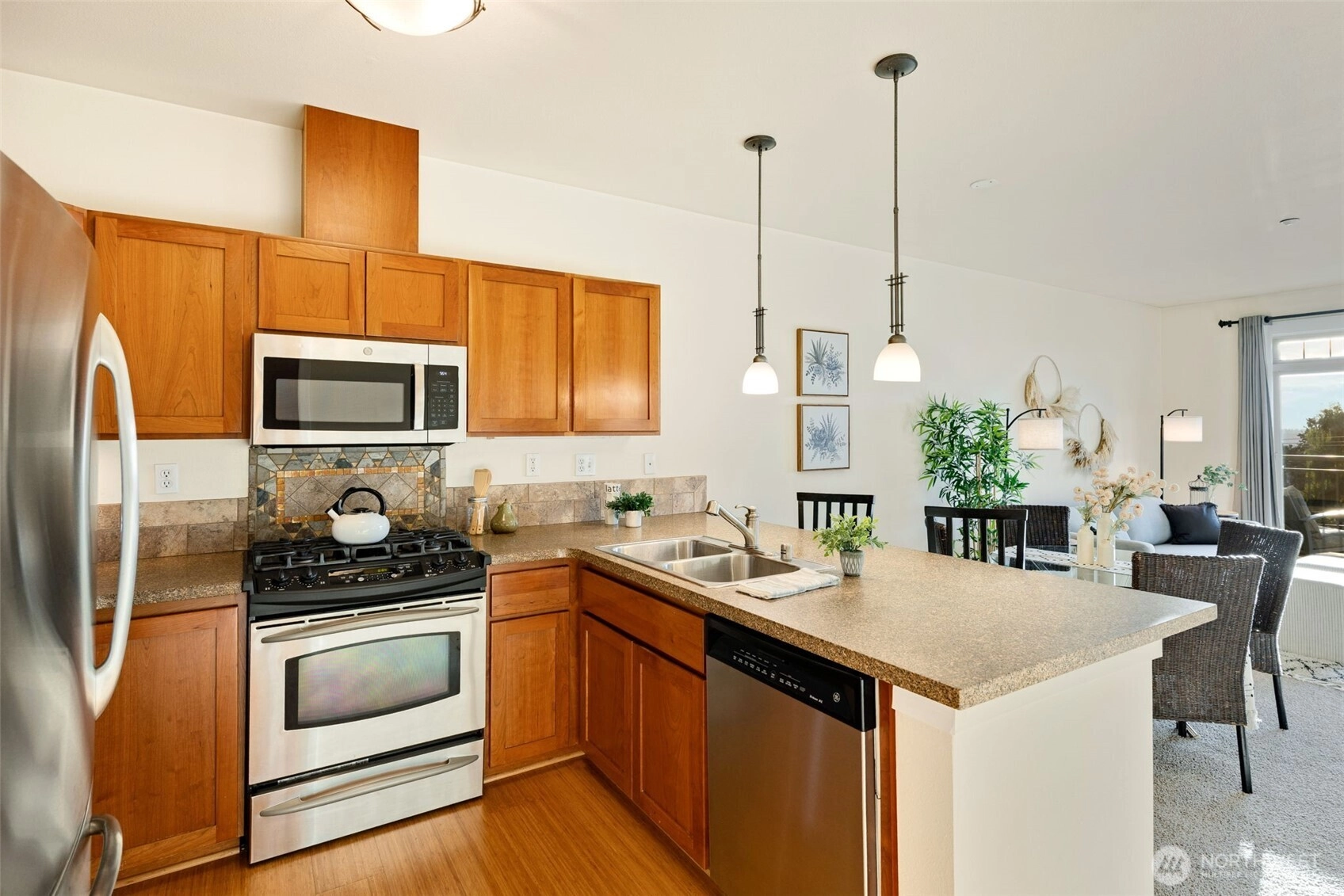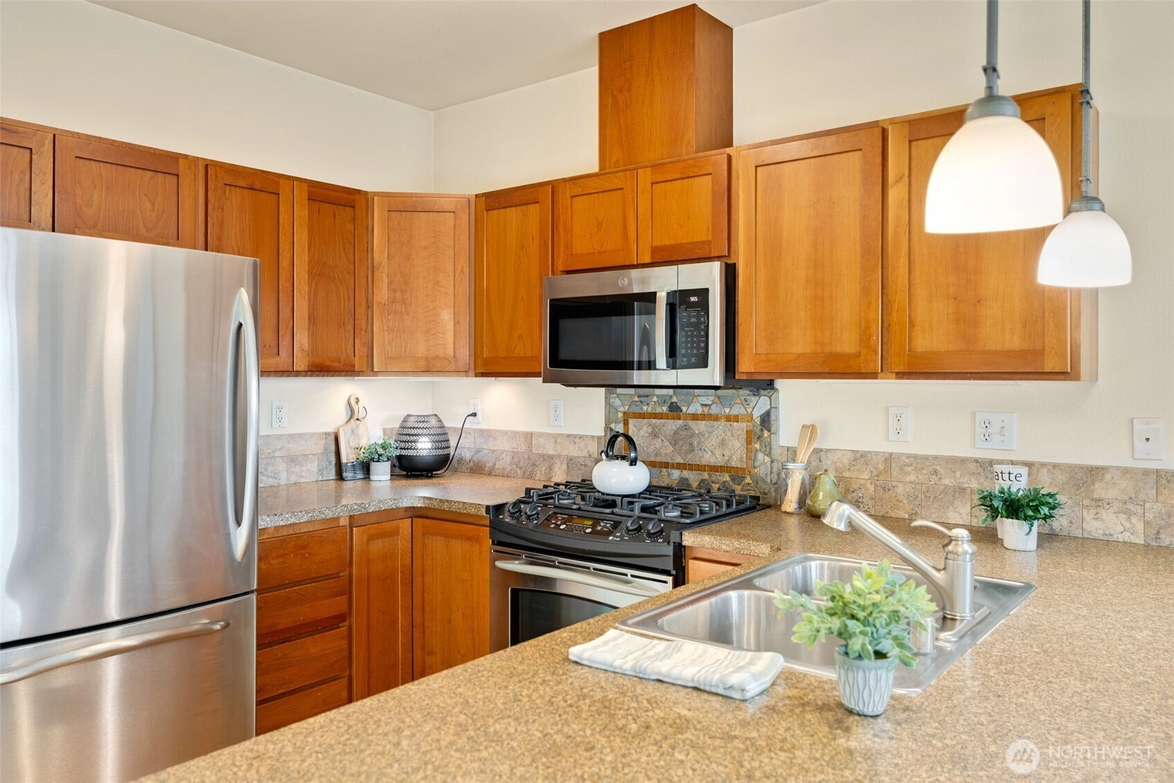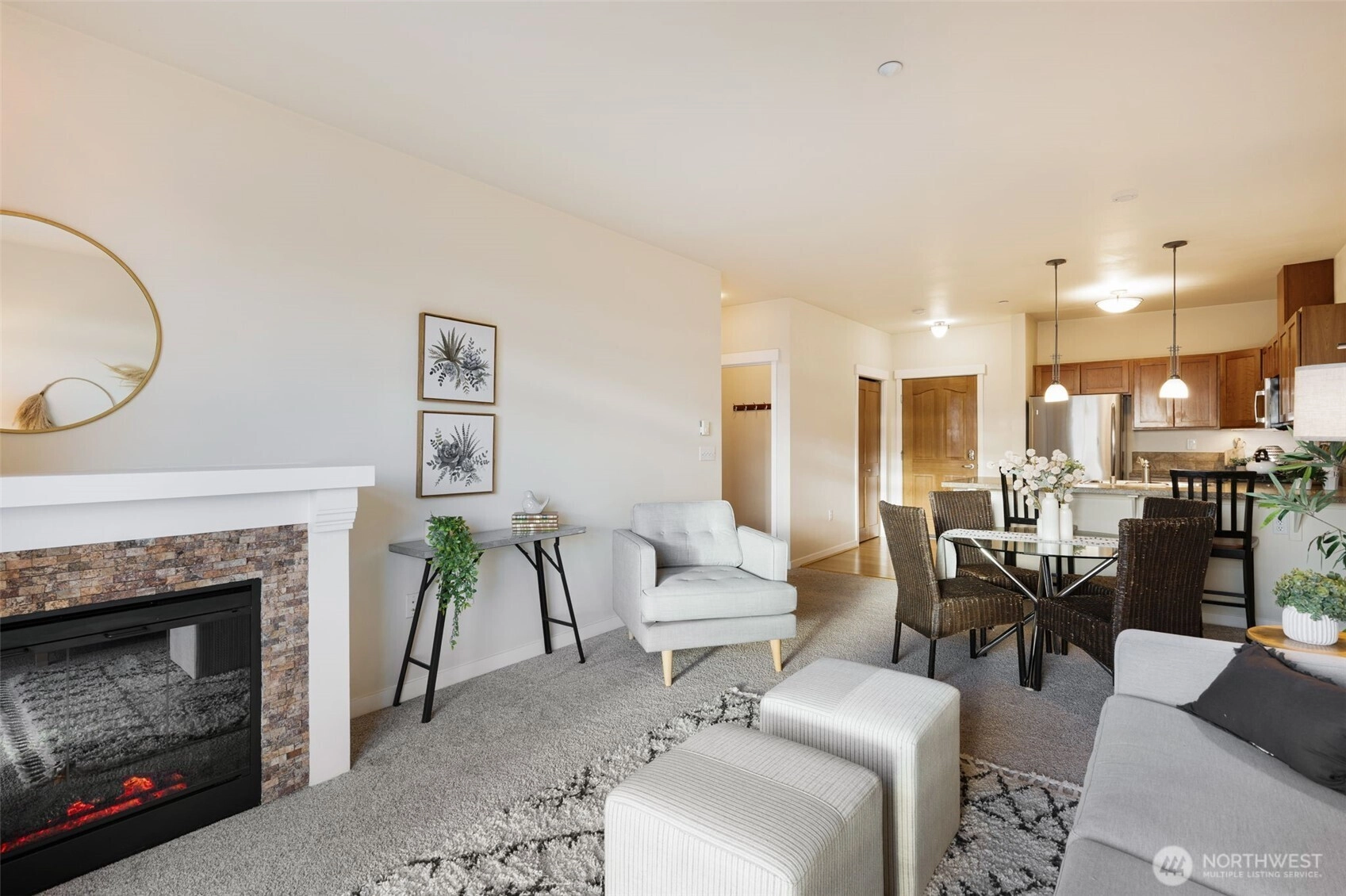 Welcome to the pinnacle of Phinney Ridge! Soak in sweeping views of Puget Sound and the Olympics from this spacious top-floor unit. Timeless craftsmanship meets thoughtful design with light-filled spaces featuring open kitchen with eating bar, large bedroom with walk-in closet, in-unit laundry, and expansive deck. Secure garage with easy parking and storage. Enjoy panoramic vistas from the rooftop deck, cozy up with a book in the welcoming lobby. Live in the heart of all that Phinney has to offer: pop downstairs for pastries and espresso, stroll to some of the best restaurants, shops and pubs in all of Seattle. Moments to Green Lake and concerts at the Zoo. Hop on the bus for easy access to downtown and light rail. Your home above it all!