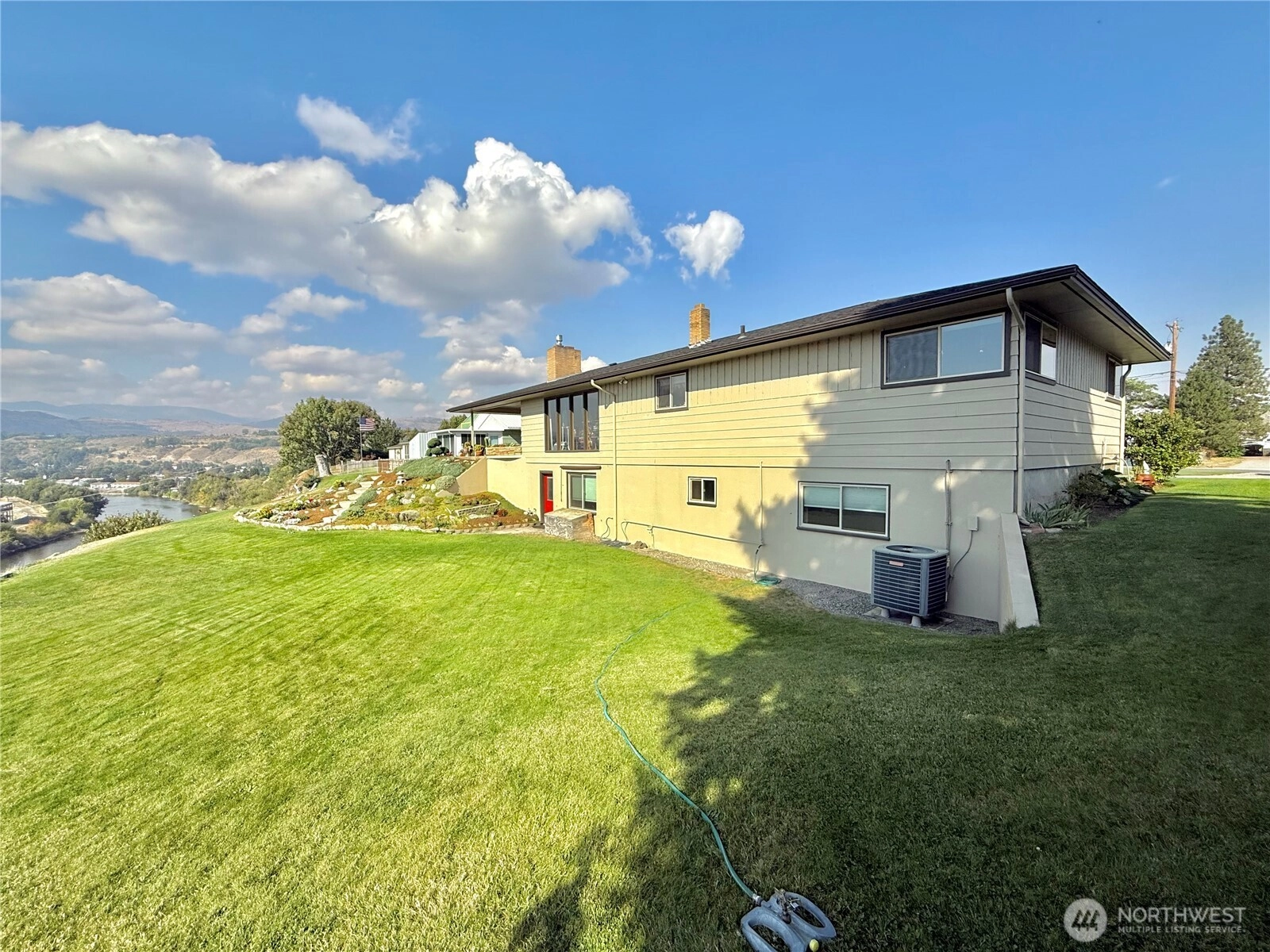Omak-Stampede Grounds & River View! Stunning 3441sqft 3+bed/1.5 bath on almost 1acre w/irrigation! Mid-century modern fts incl tiled entryway, intercom/AM radio throughout home, dining room, kitchen w/acrylic counters, linoleum floors, osmosis water filtration system & breakfast nook, living room w/gas fireplace & beautiful stone feature, backdoor w/big windows leading to back yard, laundry room w/half bath, bedroom w/bamboo flooring, oversized full bath, and two additional bedrooms. Lower-level daylight basement contains finished bedroom or additional rec room, unfinished bathroom & bedroom, and additional space to create your own vision! Round about driveway & meticulously cared for yard. OID & City Utilities $459,900 MLS-2439575/H-3721