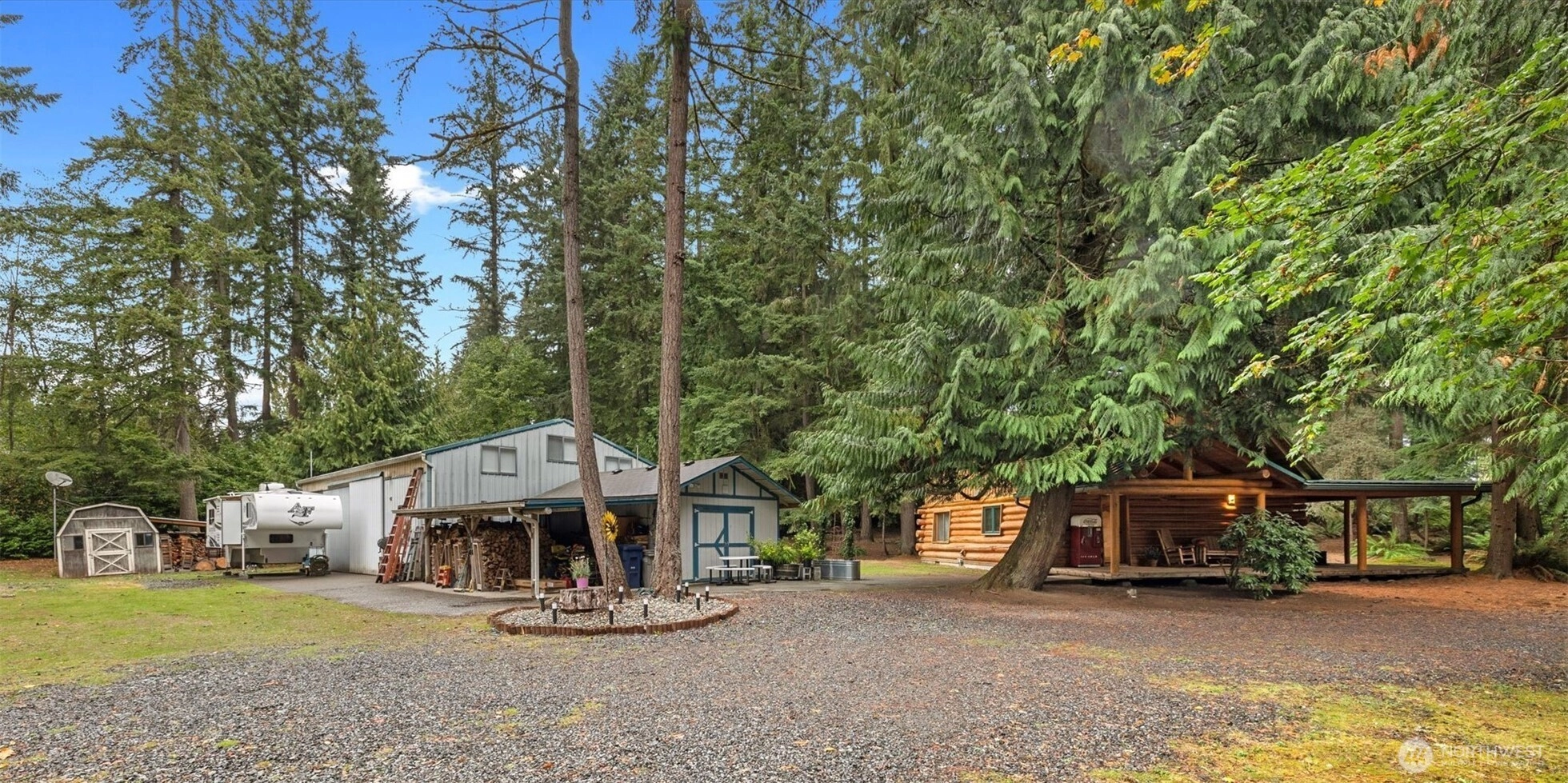 PRICE REDUCED!!! PRIME Location on 1.6 Acres in the Heart of Woodinville!This charming LOG home + HUGE SHOP offers the perfect blend of Rustic Character & Modern Updates. Thoughtfully Remodeled Kitchen shines w/a 6-burner Wolf range, Granite counters,2 Lazy Susans,Custom lighting, Generous Breakfast bar, Newer Flooring & Gorgeous Etched Entry Door. The Soaring ceilings & Great room design create an airy, open feel, plus office/den. 3 Bdrm drainfield. Updated Main Bath w/New Flooring, New Cabinet, New Countertop, New Sink & Fixtures! ATTENTION Hobbyists, Collectors, or Car Enthusiasts, this property is a true DREAM: massive 48 x 30 garage/shop w/ loft and storage, PLUS an additional 20 x 16 garage/shop w/attached Carport. Room for RV & MORE!