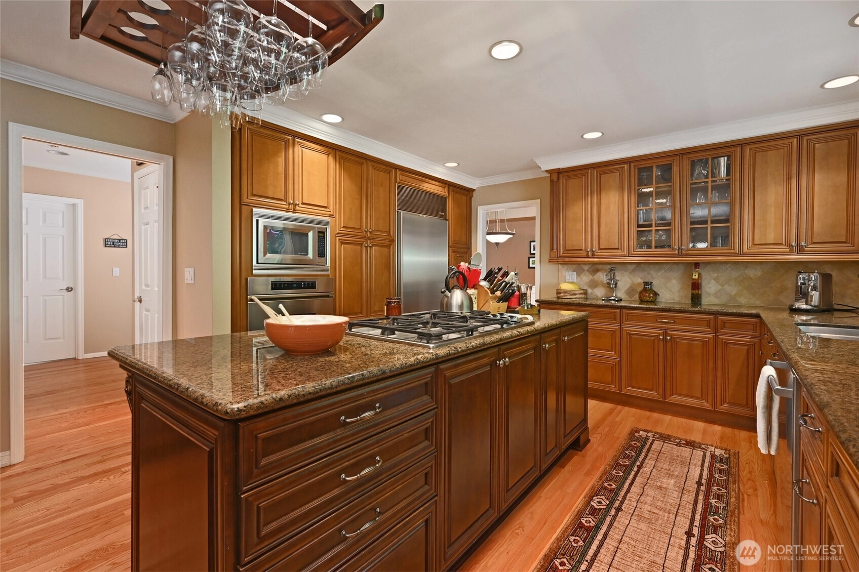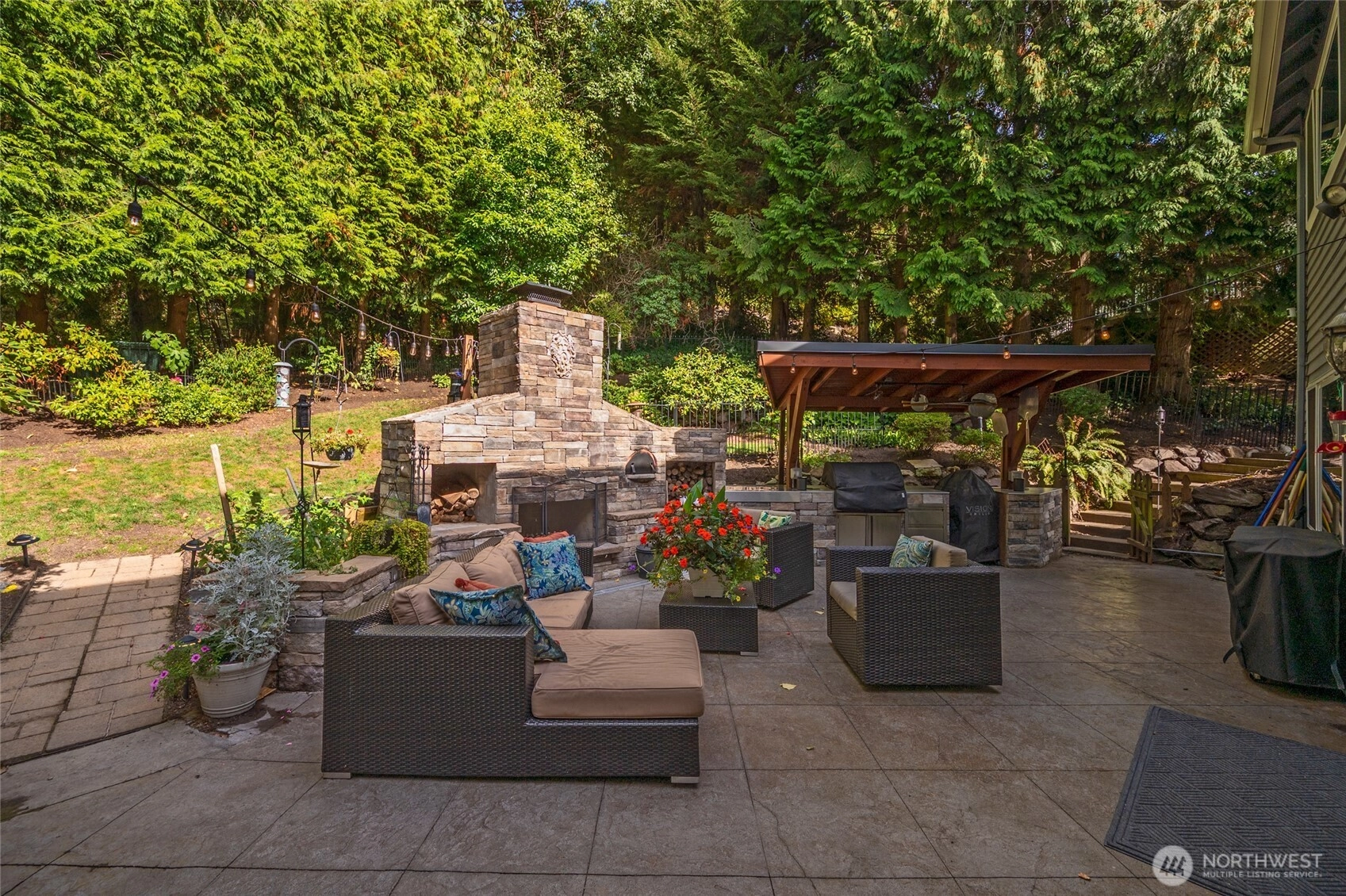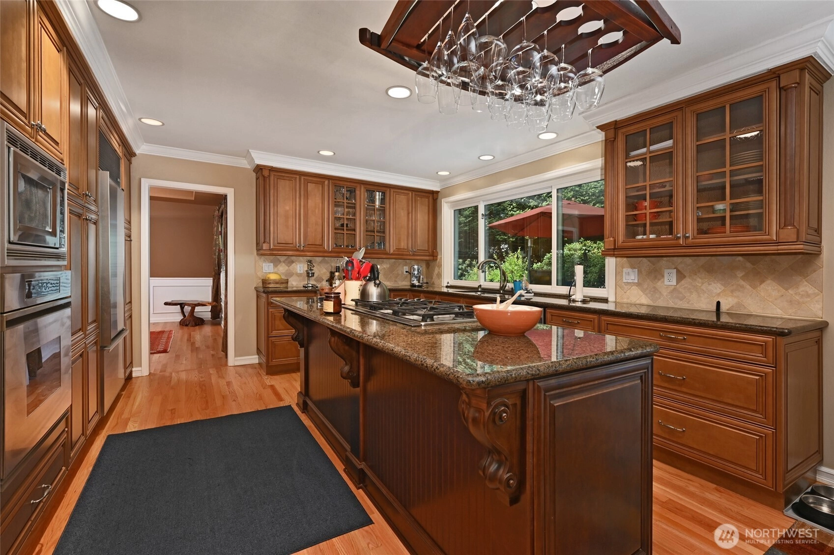 See pride of ownership in this beautiful home with tray ceilings, columns and wainscoting. Chef's kitchen with slab granite, SubZero refrigerator, Dacor oven, large center island, 5-burner gas cooktop, beverage bar & wine cooler. Relax in front of your gas fireplace with travertine surround in the family room. Luxurious primary bedroom w/5-piece bath, heated marble floors. Open the French doors to your amazing backyard with an outdoor kitchen with Italian pizza oven, wood fireplace, Blazer 6-burner barbeque, hot tub, fruit trees, raised beds, fully fenced, bordering a greenbelt. 50-year roof and home warranty. Quick access to shops, dining and freeways. Come make this gem your own!