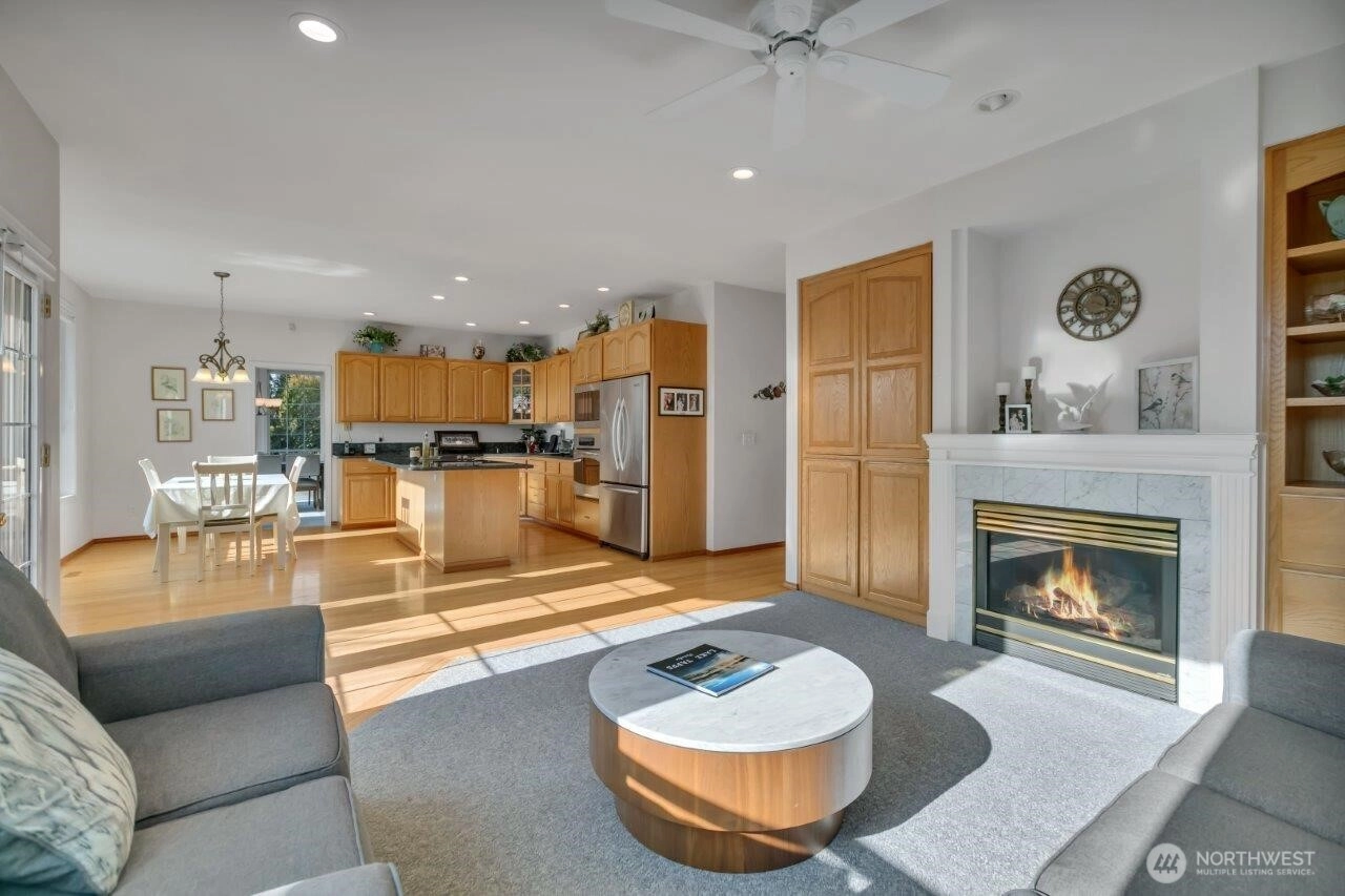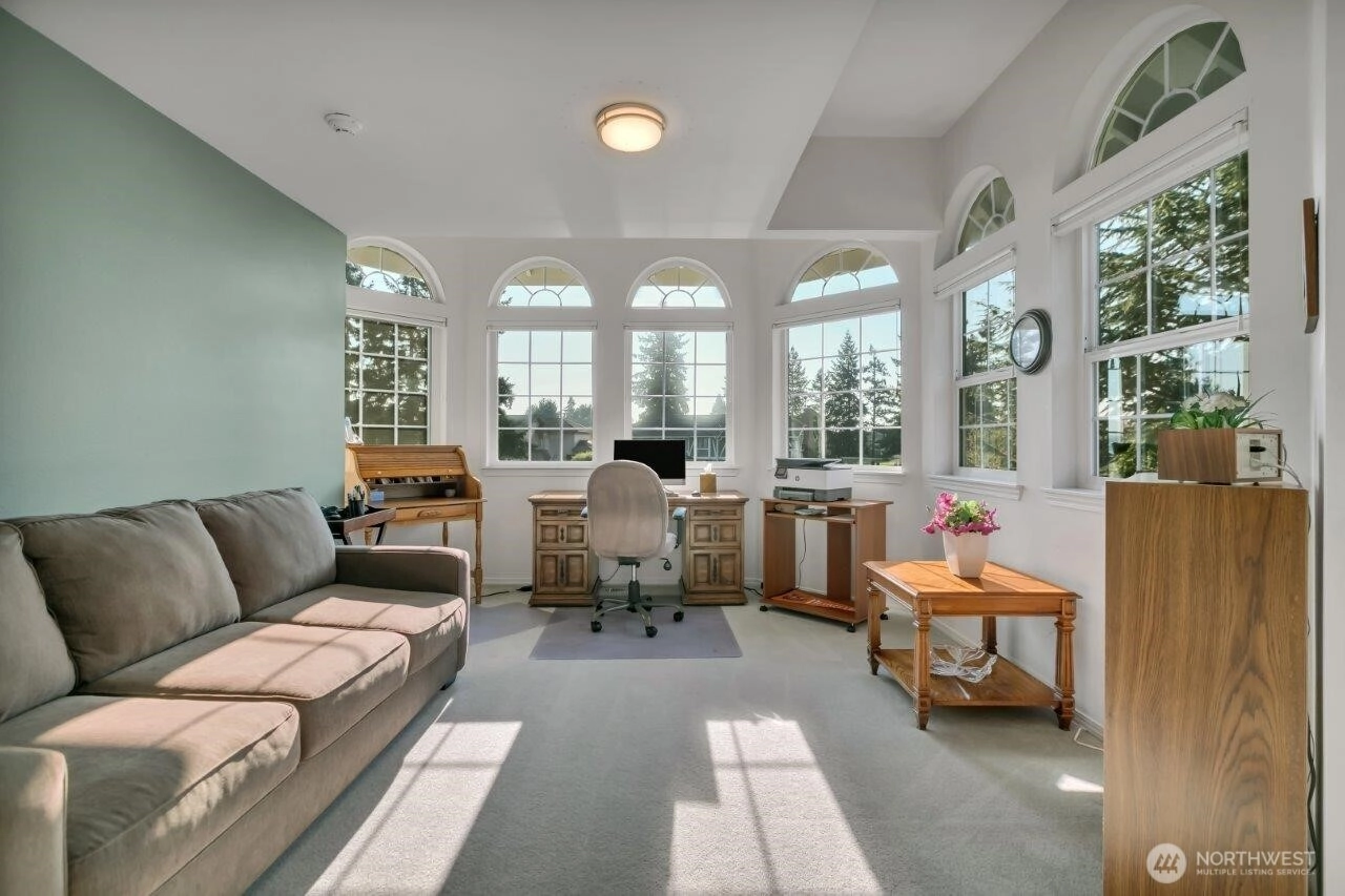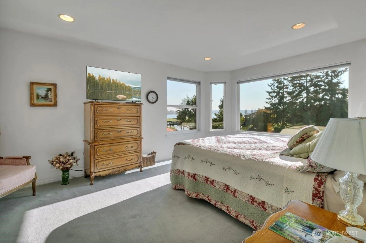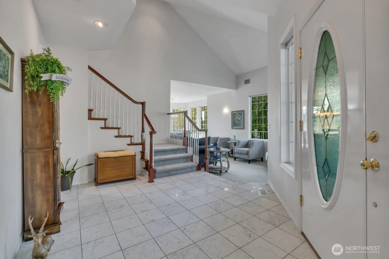 Move-in ready Lake Tapps home in the desirable Dieringer School District! W/4-bedroom potential~including a main floor bonus & versatile upstairs library, this home is designed for flexibility. Recent updates include fresh interior paint, a remodeled primary bath, upgraded laundry/mud room w/walk-in shower, custom blinds, & a new roof & gutters. Relax on the wraparound covered porch, Trex deck, or stamped concrete patio while taking in breathtaking Mt. Rainier & lake views. Don't miss the boat lift too! Steps lead directly to the water, plus a hot tub for year-round enjoyment. Resort-style amenities include private roads, security, pool, beaches, boat launch, tennis & pickleball courts, and an island nature trail. Lake & Golf Lifestyle.