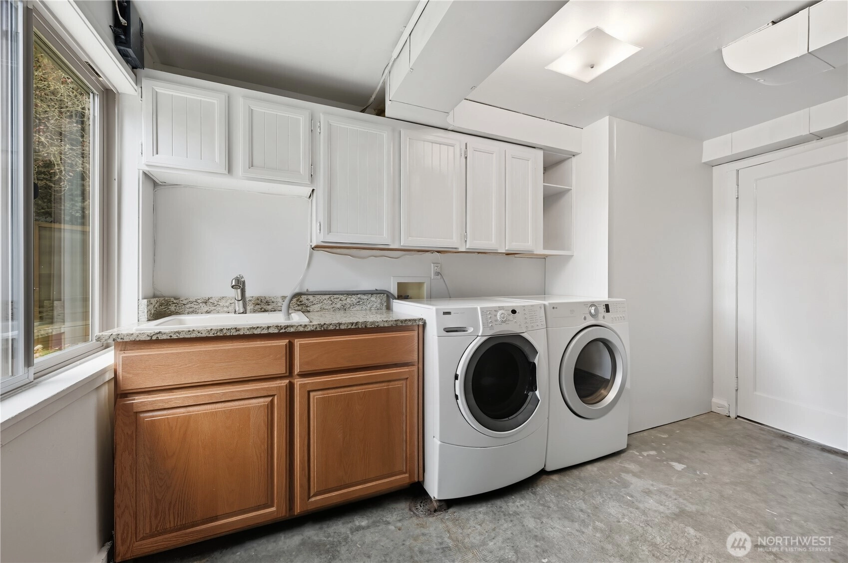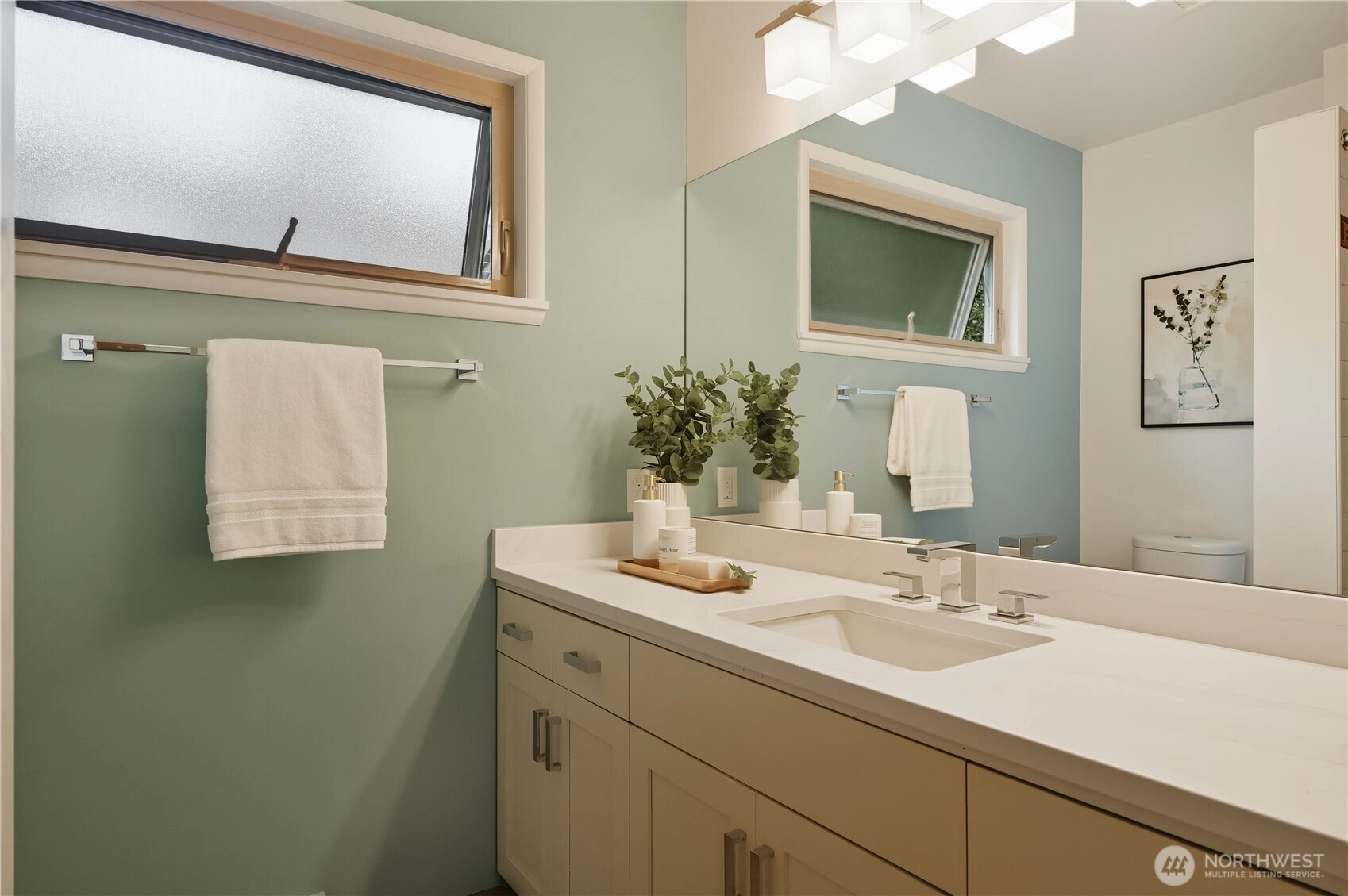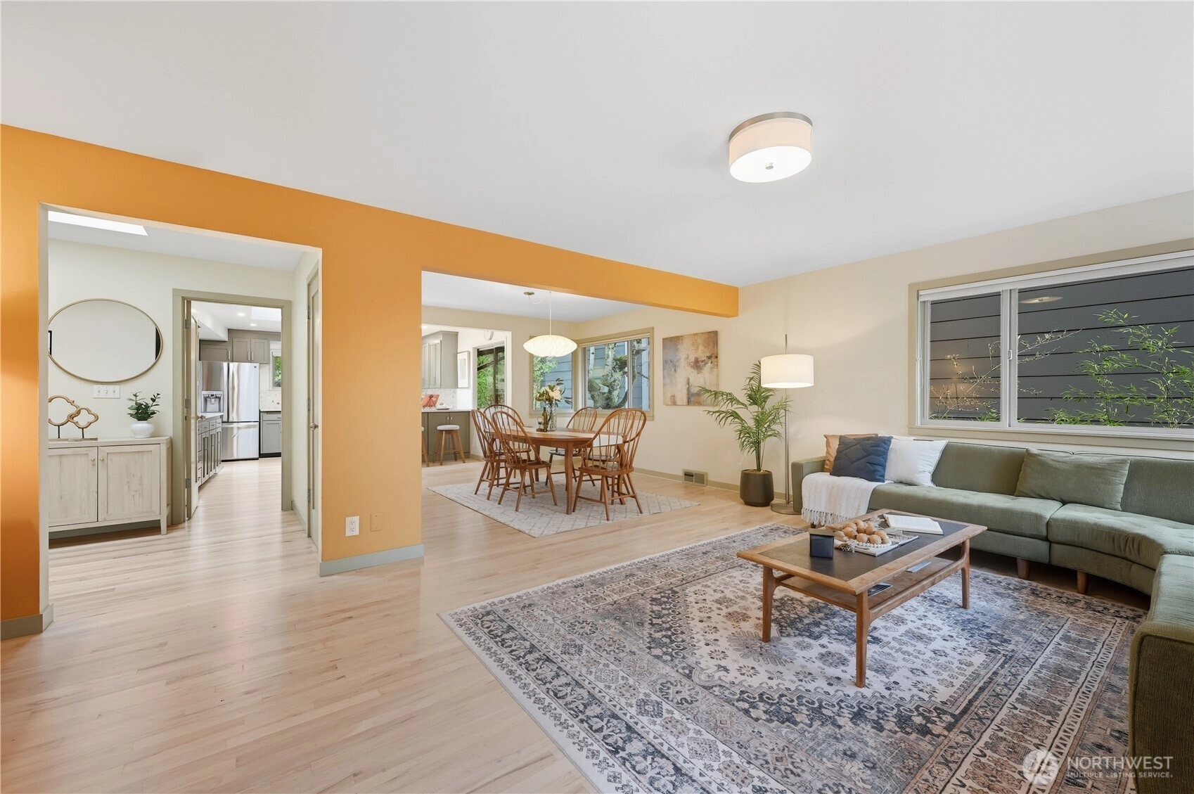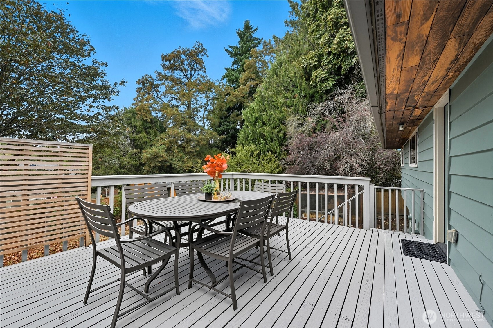 Timeless Mid-Century charm meets elevated modern living in this light-filled home on rare 7,988 sq ft lot. Thoughtful updates feature refreshed hardwood flooring, stylish eat-in kitchen w/quartz kitchen counters, & cabinetry. Flowing floor plan with dedicated dining & living rooms accented by original iconic fireplace, anchoring the main level w/2 beds & full bath. Versatile daylight basement offers 2 beds, ¾ bath, private entries, & flexible living—ideal for office, multi-gen, guest suite, or rental income. Western territorial views from expansive deck & fenced yard. New roof, exterior paint, plumbing, electrical, high efficiency insulation. Attached 1 car garage + N3 zoning for added upside. Near Green Lake, transit, & top-tier amenities.
