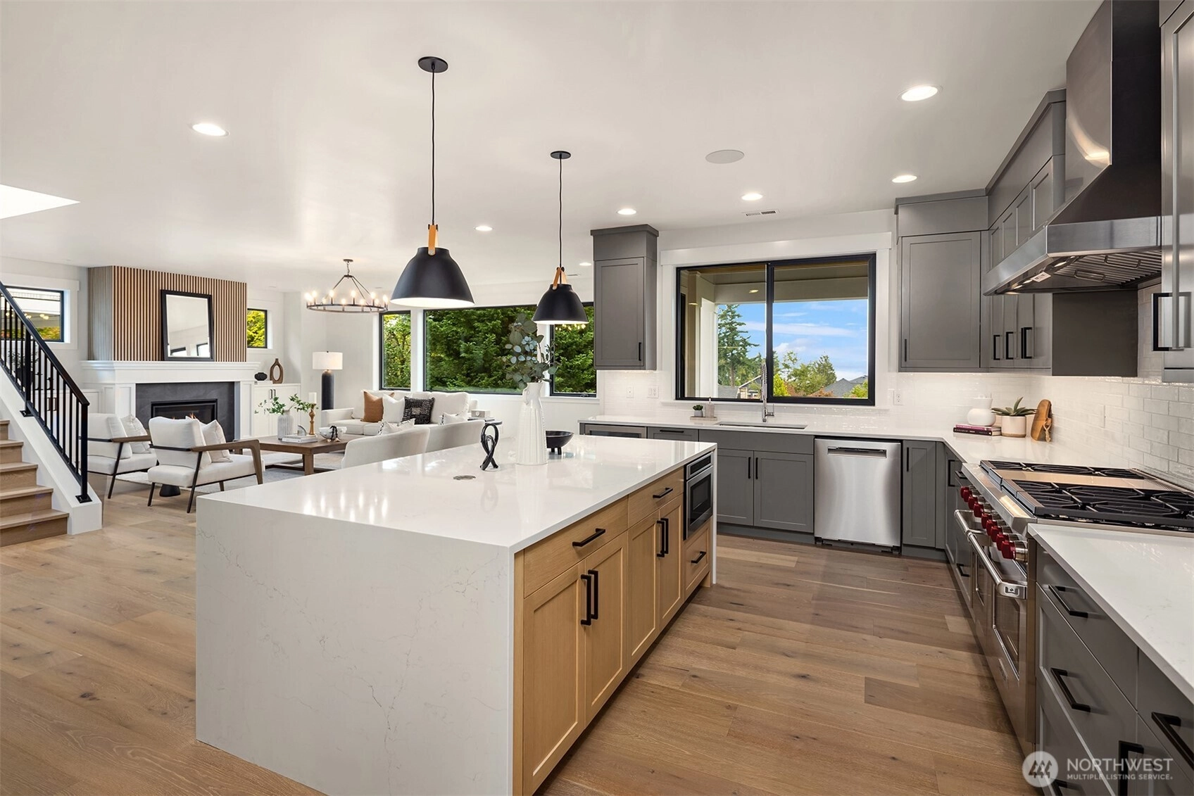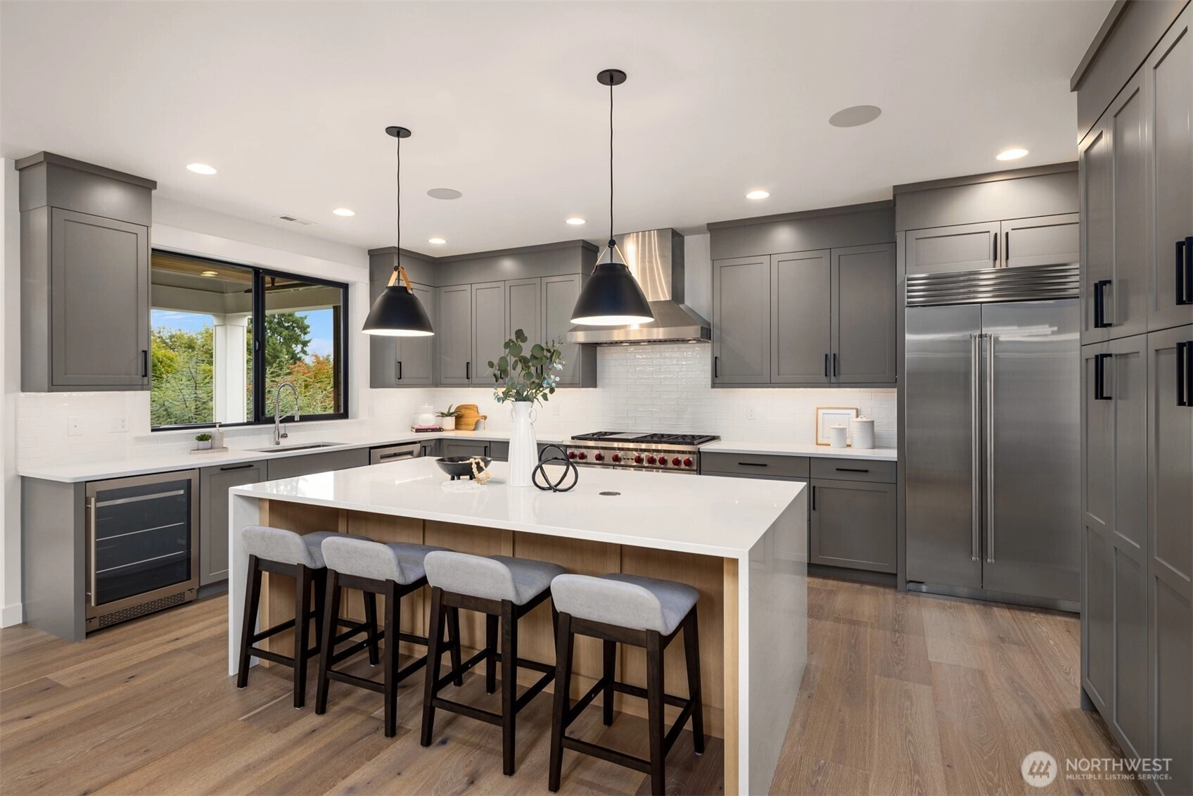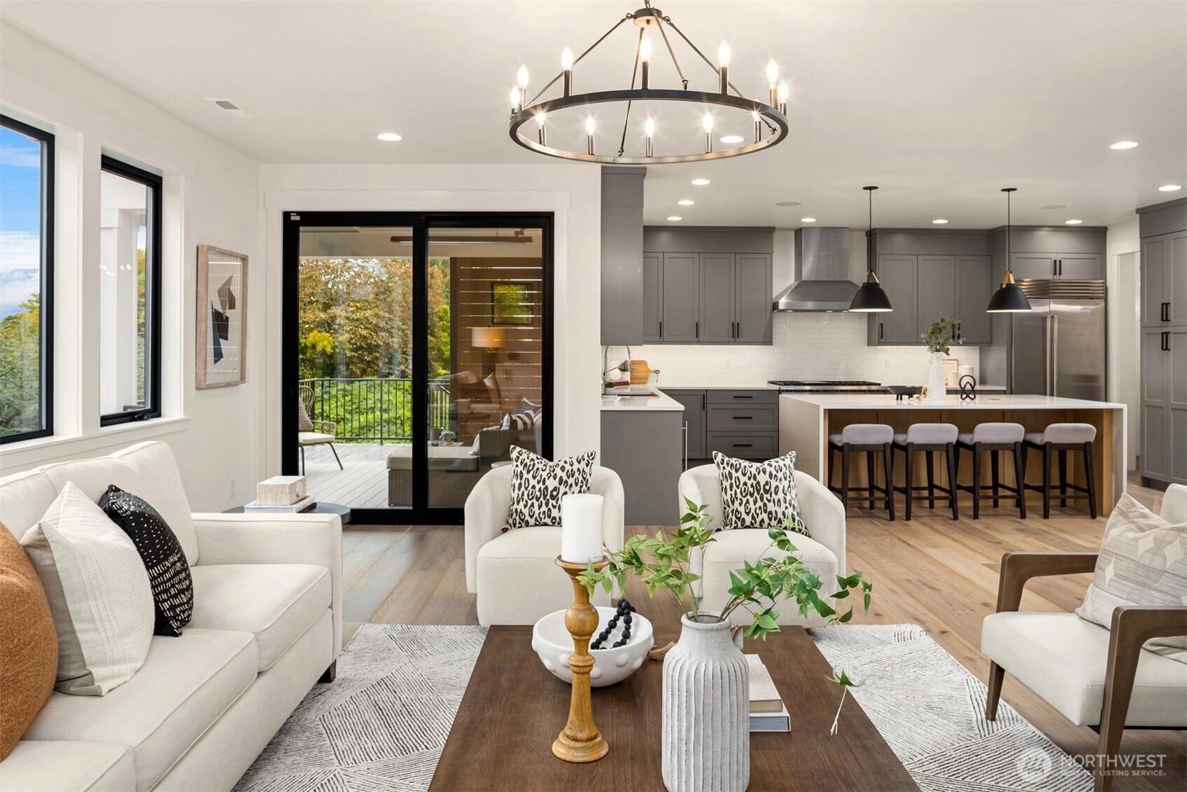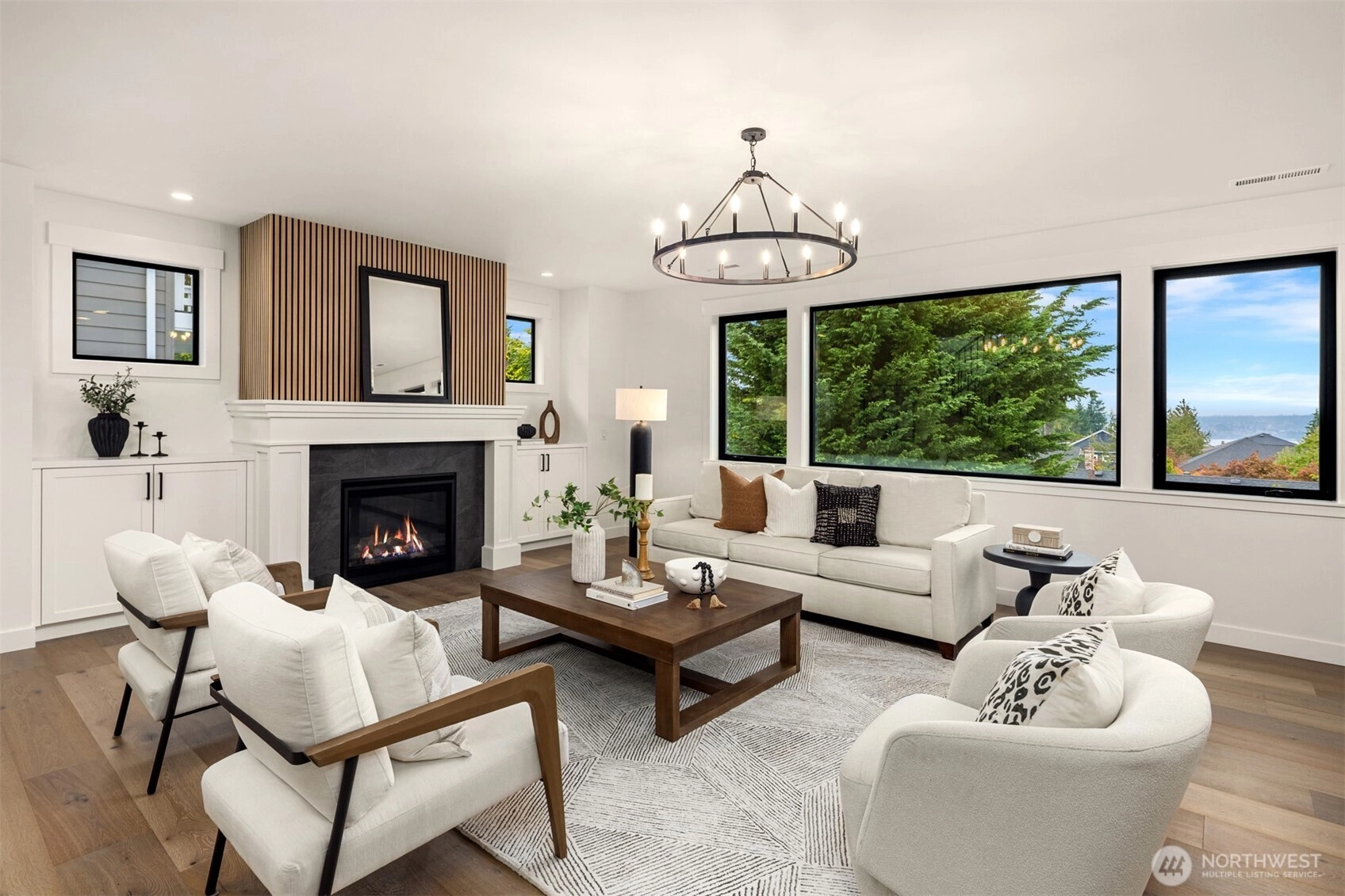 Presenting this new modern farmhouse home by Winfield Homes in the heart of View Ridge offering lake & mountain views. The spacious great room with fireplace, built-ins, wide plank hardwood floors and a gourmet kitchen featuring a quartz waterfall island, Wolf 48" range & Sub-Zero refrigerator, is a chef’s dream! Entertain with ease from the outdoor covered deck w/ patio heater for year-round comfort. Upper floor primary suite with view deck and 5-piece spa bath with heated floors. The lower level offers a family room, 2 bedrooms, 3/4 bath & 2nd kitchen—ideal for multi-generational living or guest suite. A fully fenced backyard and a 2-car garage completes this beautiful home.