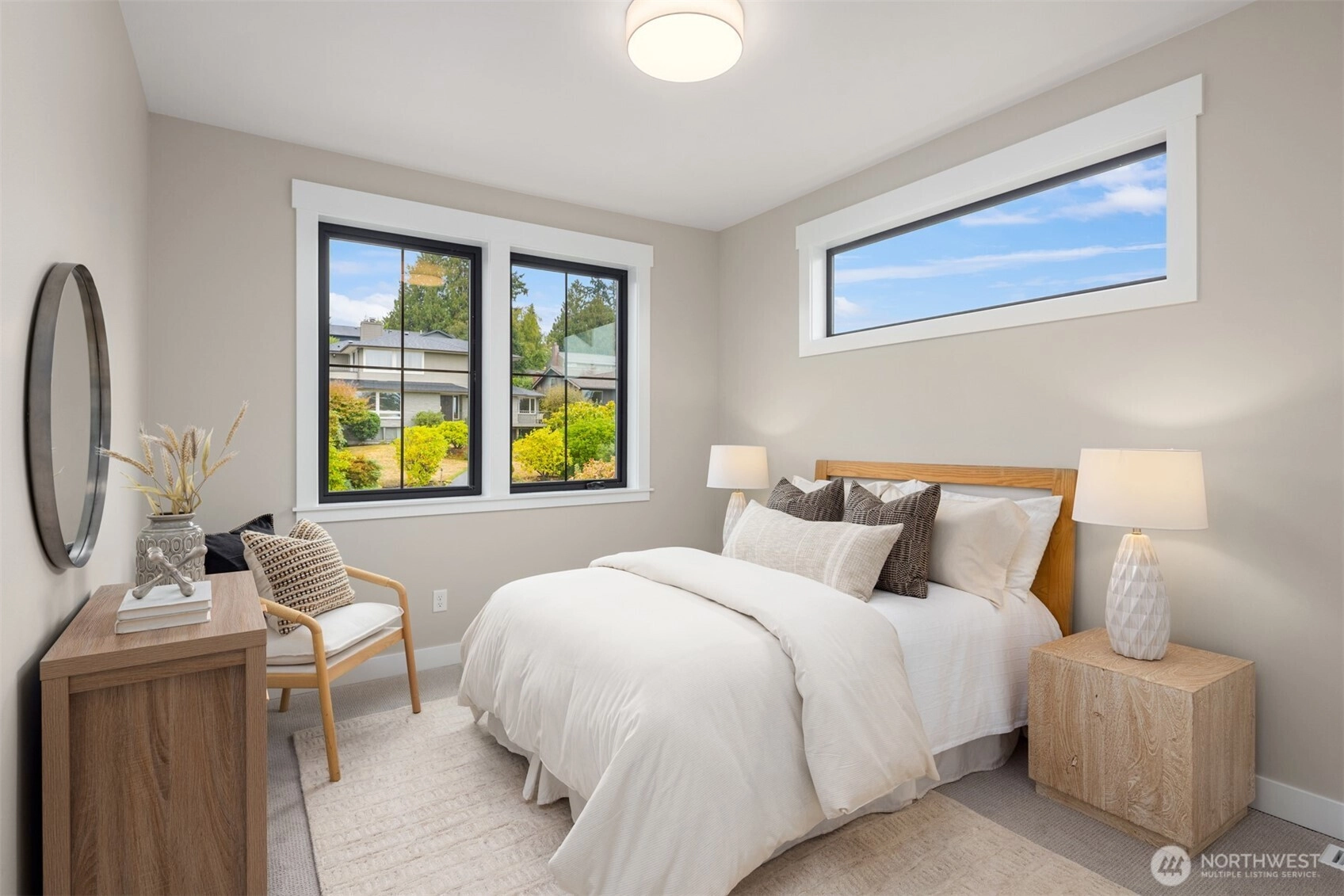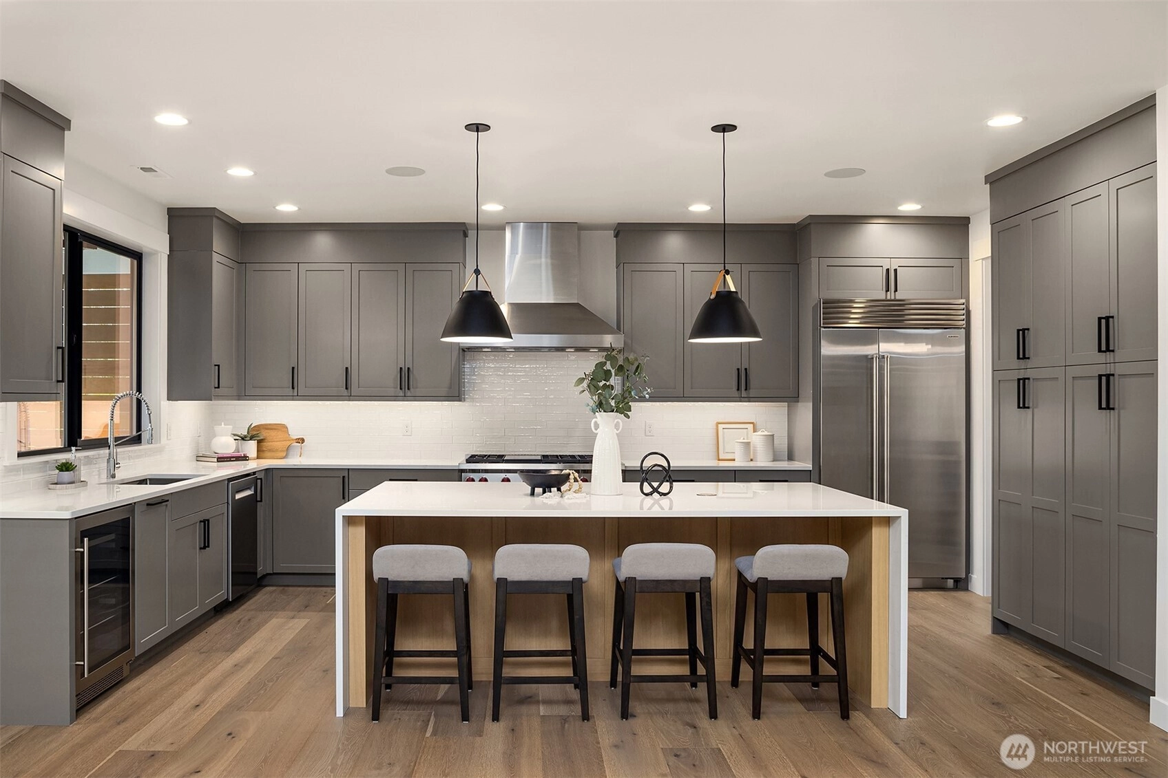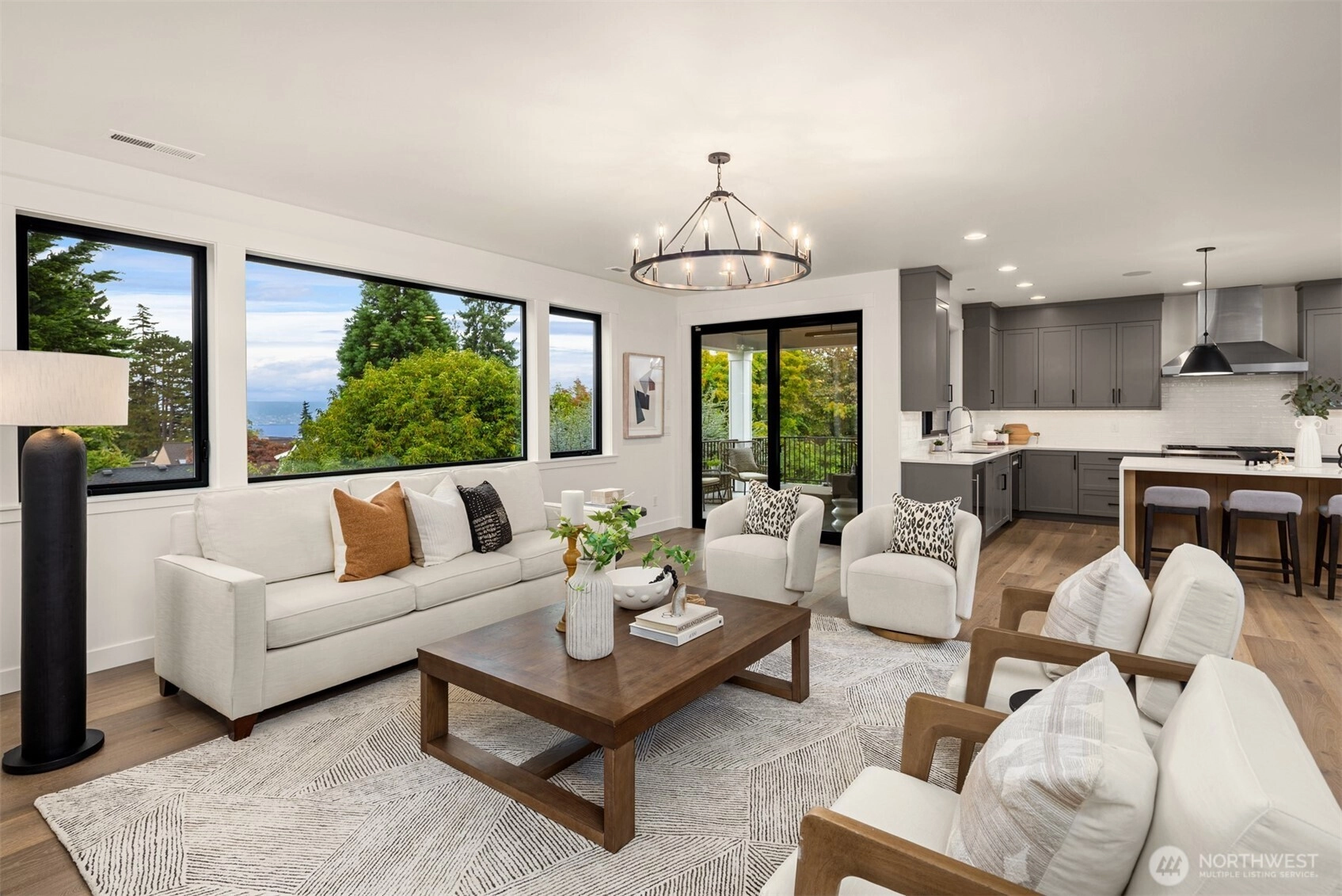 Presenting this new modern farmhouse home by Winfield Homes in the heart of View Ridge offering lake & mountain views. The spacious great room with fireplace, built-ins, wide plank hardwood floors and a gourmet kitchen featuring a quartz waterfall island, Wolf 48" range & Sub-Zero refrigerator, is a chef’s dream! Entertain with ease from the outdoor covered deck w/ patio heater for year-round comfort. Upper floor primary suite with view deck and 5-piece spa bath with heated floors. The lower level offers a family room, 2 bedrooms, 3/4 bath & 2nd kitchen—ideal for multi-generational living or guest suite. A fully fenced backyard and a 2-car garage completes this beautiful home.