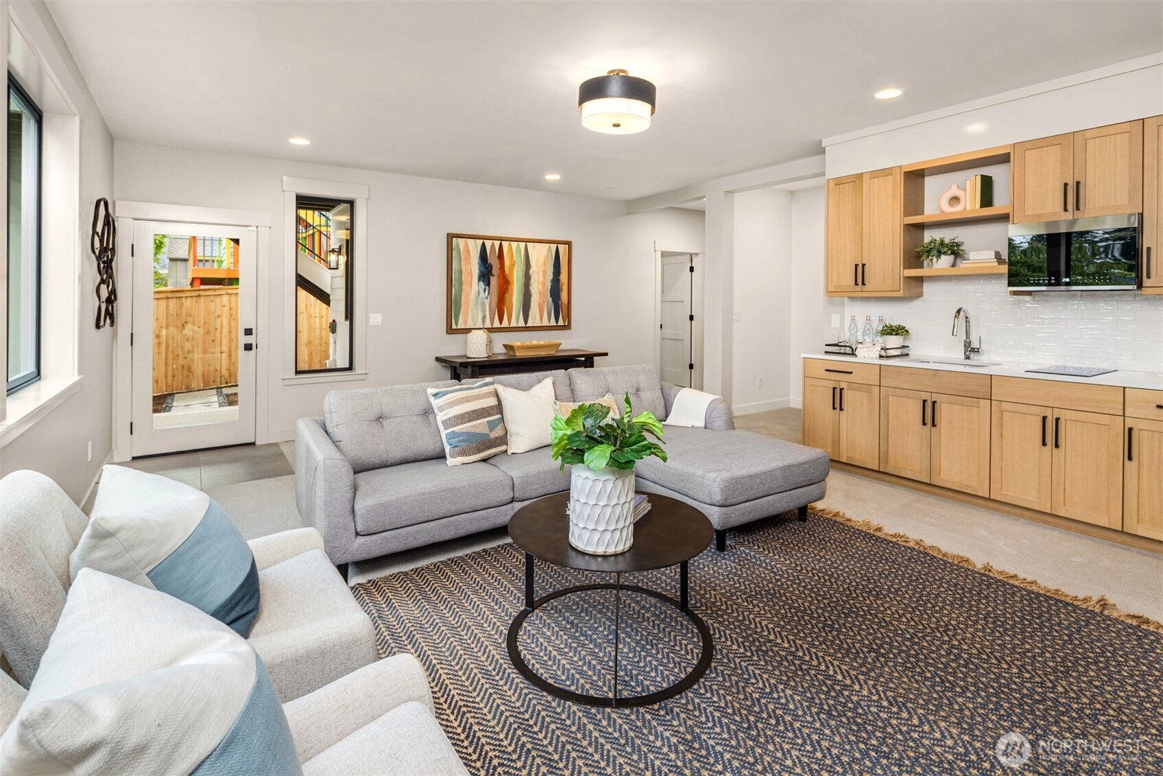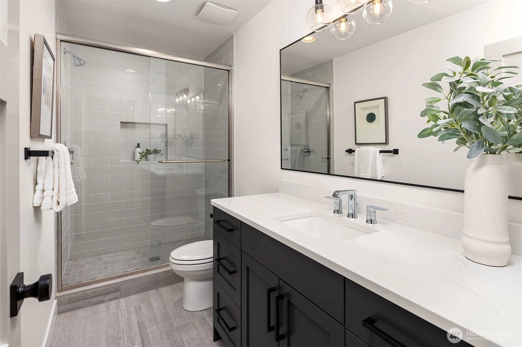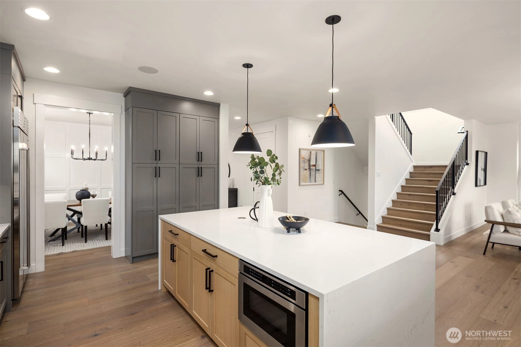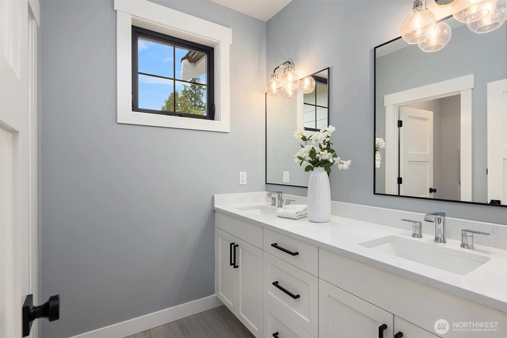 Presenting this new modern farmhouse home by Winfield Homes in the heart of View Ridge offering lake & mountain views. The spacious great room with fireplace, built-ins, wide plank hardwood floors and a gourmet kitchen featuring a quartz waterfall island, Wolf 48" range & Sub-Zero refrigerator, is a chef’s dream! Entertain with ease from the outdoor covered deck w/ patio heater for year-round comfort. Upper floor primary suite with view deck and 5-piece spa bath with heated floors. The lower level offers a family room, 2 bedrooms, 3/4 bath & 2nd kitchen—ideal for multi-generational living or guest suite. A fully fenced backyard and a 2-car garage completes this beautiful home.