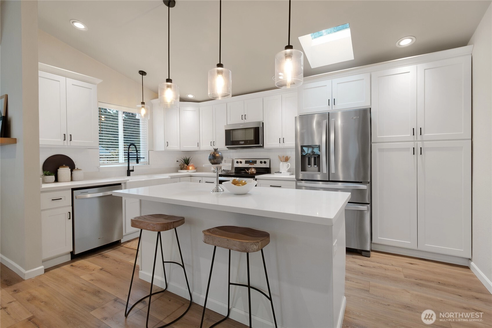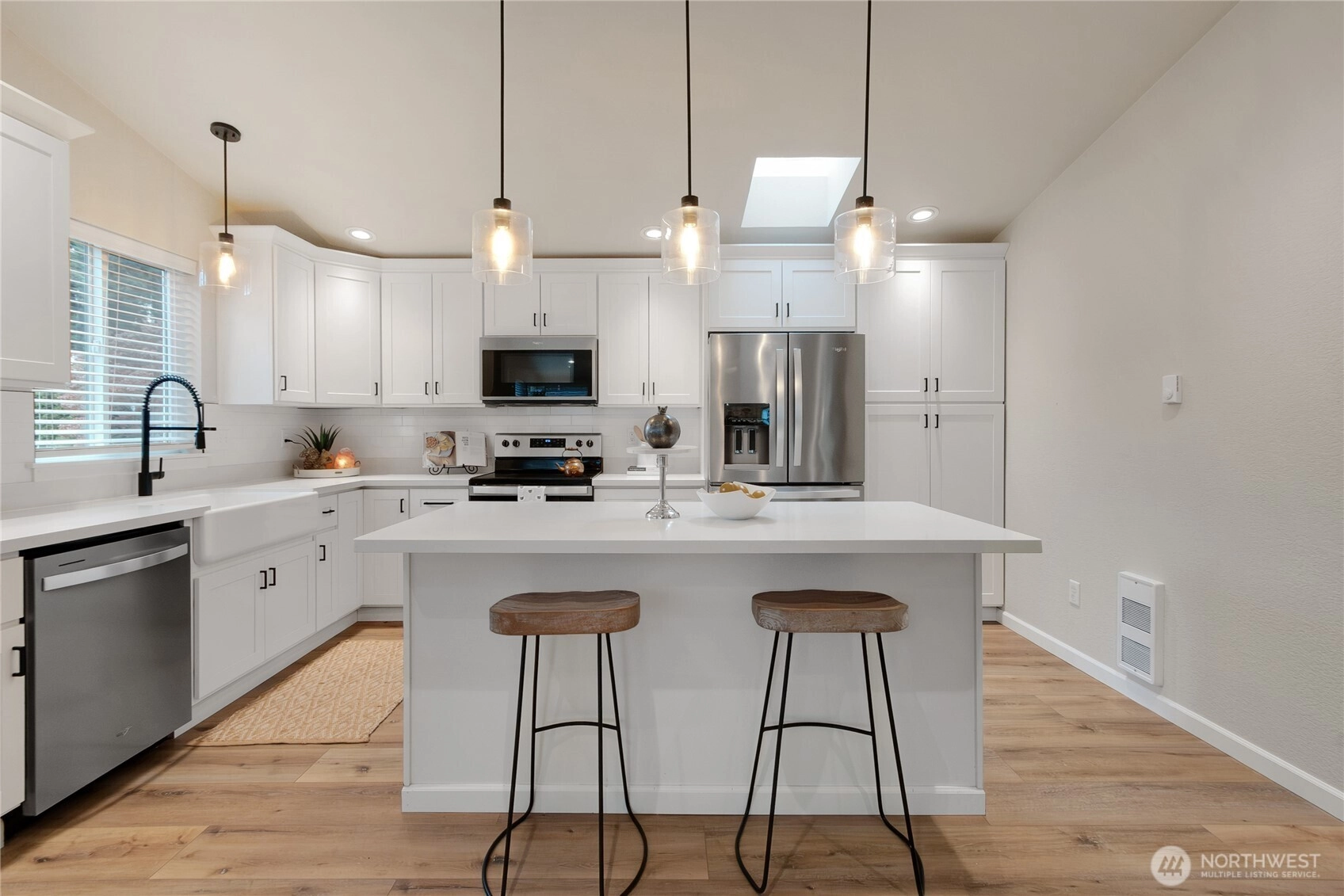 Welcome Home! Stylishly remodeled split-entry in the desirable University Place School District! The heart of the home is the open kitchen with quartz counters, huge island, and generous work space that flows seamlessly to the living room areas/great room concept—ideal for everyday living and entertaining. 4 bedrooms, 1.75 baths, and two living spaces, there’s flexibility for home office, guests, or media even space. Energy-efficient mini split heat pumps provide year-round comfort. Outdoors, enjoy low-maintenance turf, a covered patio perfect for gatherings, and plenty of space to relax. All this in a super convenient location close to parks, schools, and the heart of University Place. This one won't last long, call your broker today!
