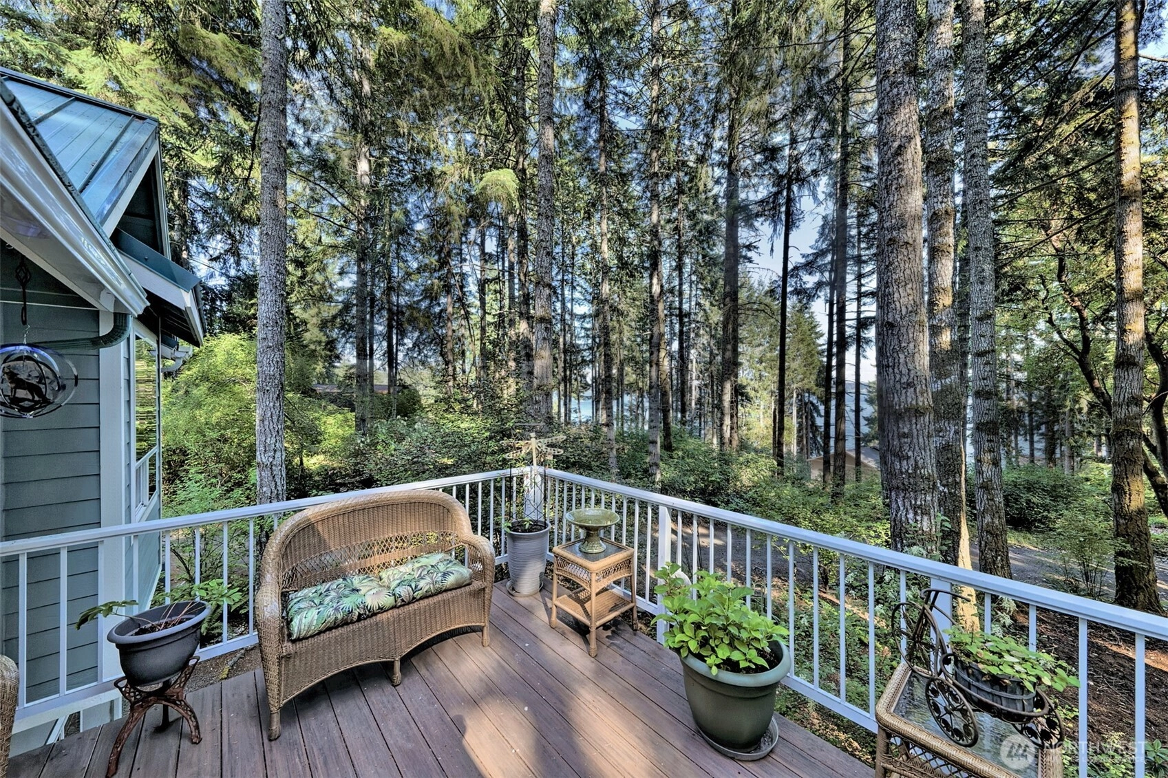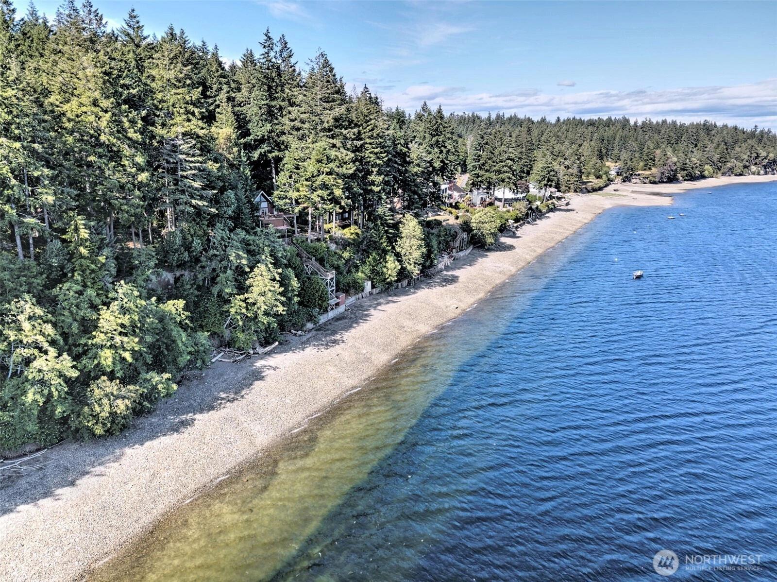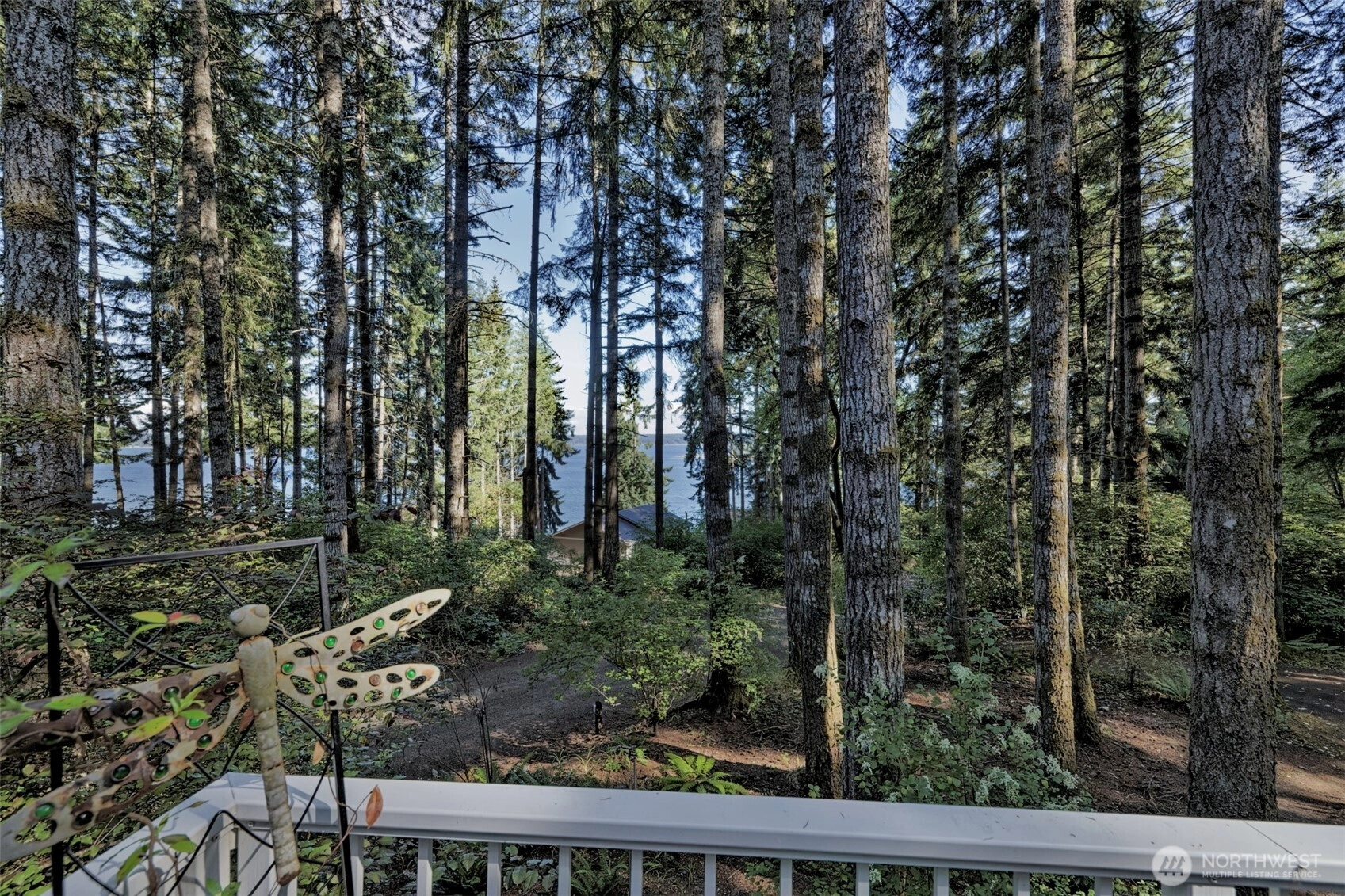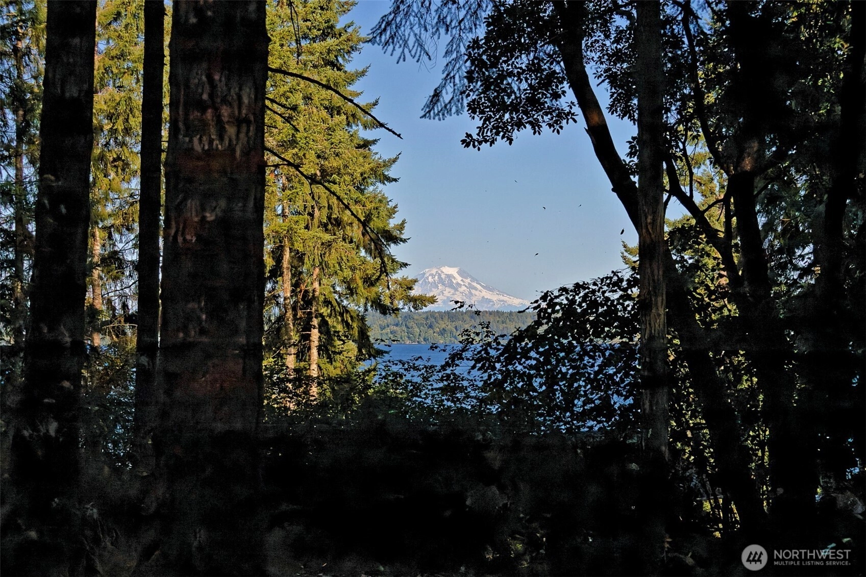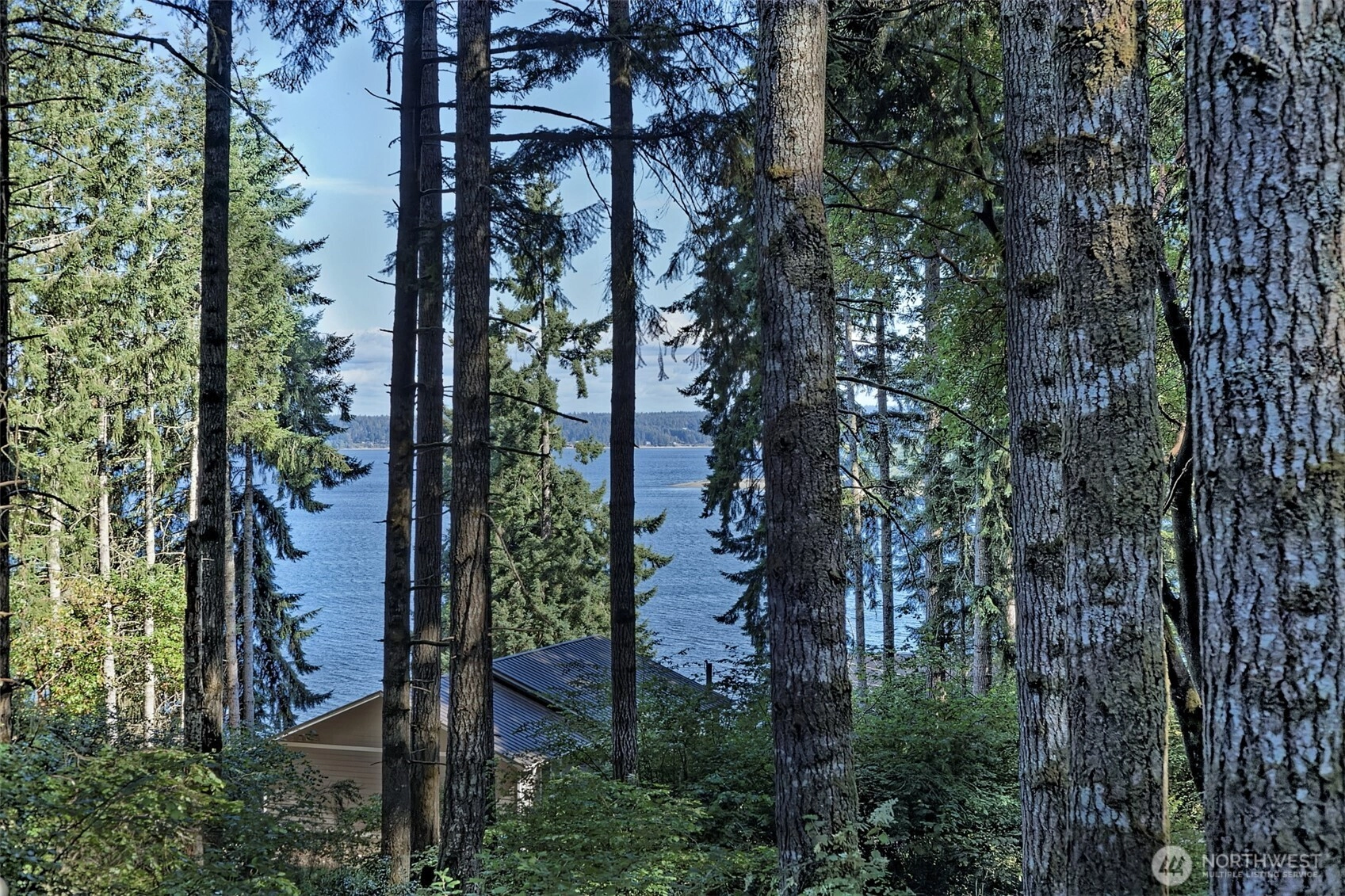Absolutely majestic setting on 2.16 acres w/tall standing timber towering over the property along w/a view of Pickering Passage on Puget Sound.Breathe in the woodsie & salty air. Serenity & magical views-a true PNW retreat & setting.Step inside to a meticulous high quality home w/new flooring,fresh interior paint,soaring ceilings & large windows framing the view.Open concept kitchen/dining/living room lives large. Bedrooms each w/its own special view share an updated bath.Neat as a pin oversized garage, RV carport & outbuildings.Relax at the firepit & take in nature.Access to shared beach trail close by as well as many other recreational opportunities.An excellent opportunity for investment, and/or full/part time living- retreat style!