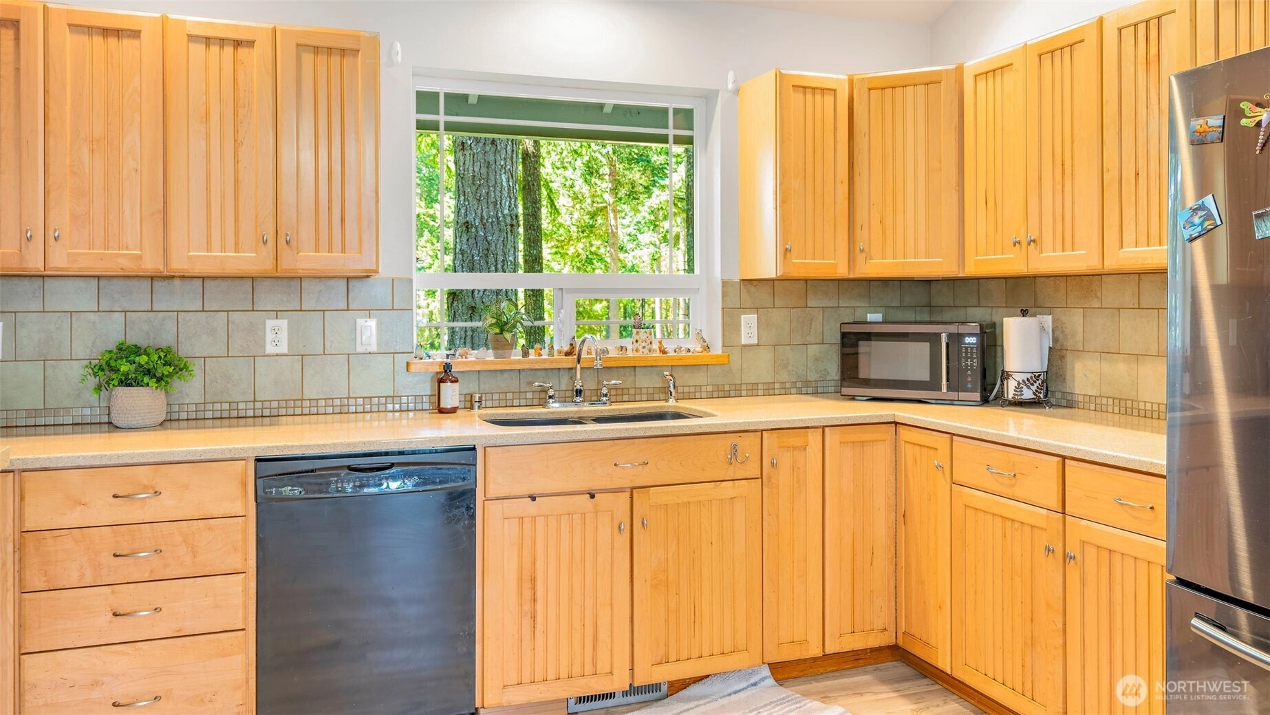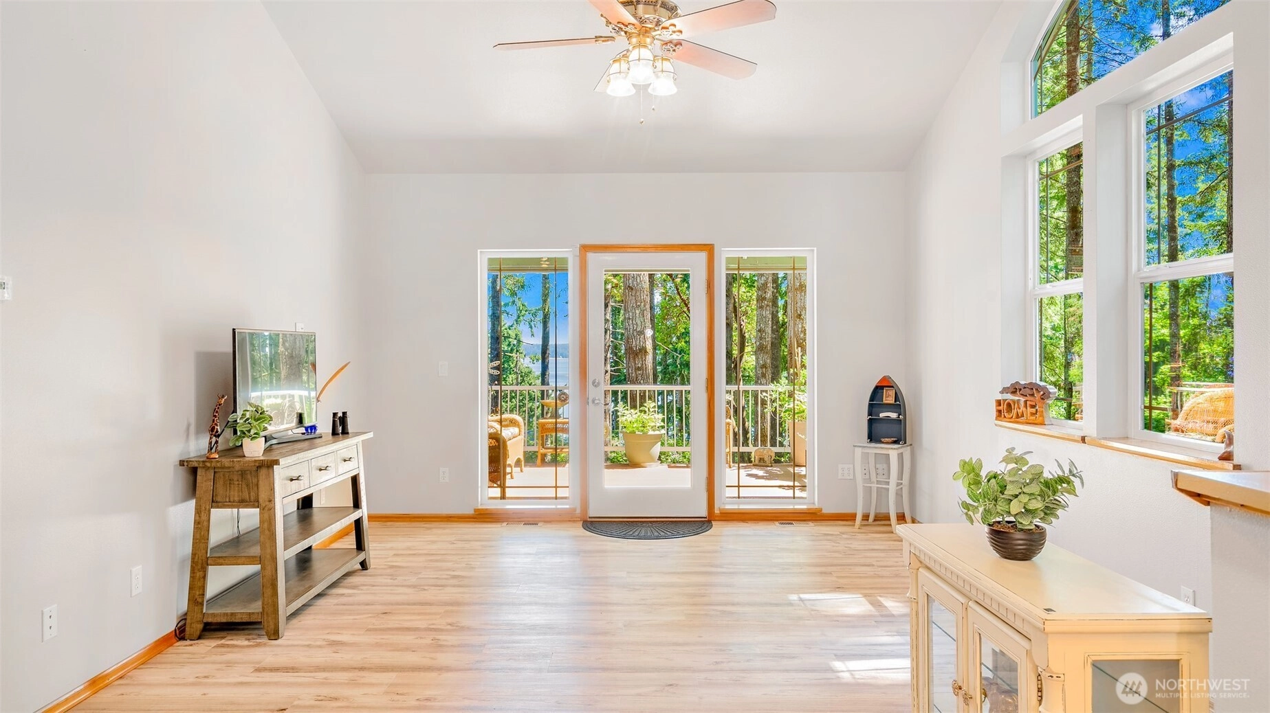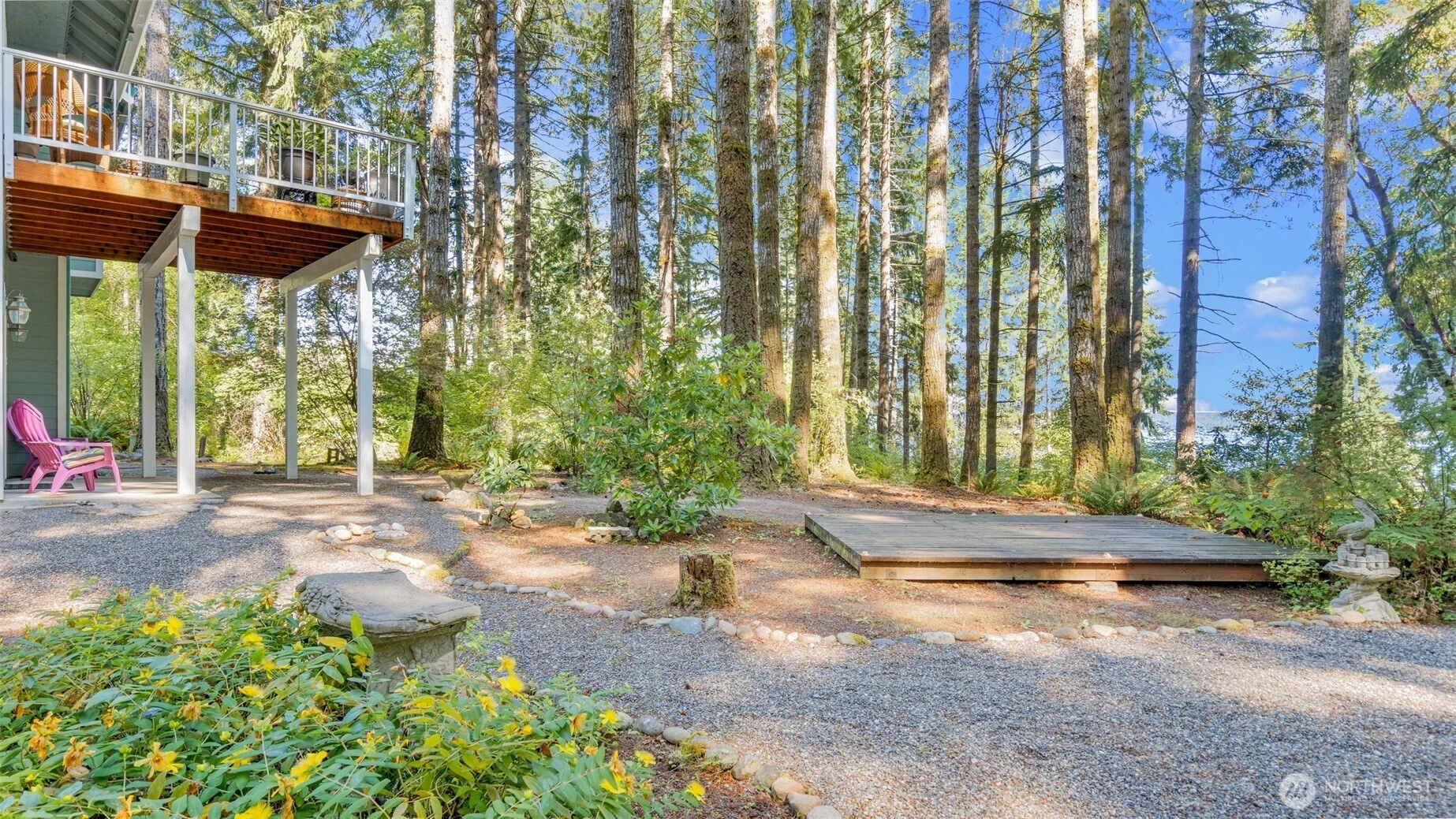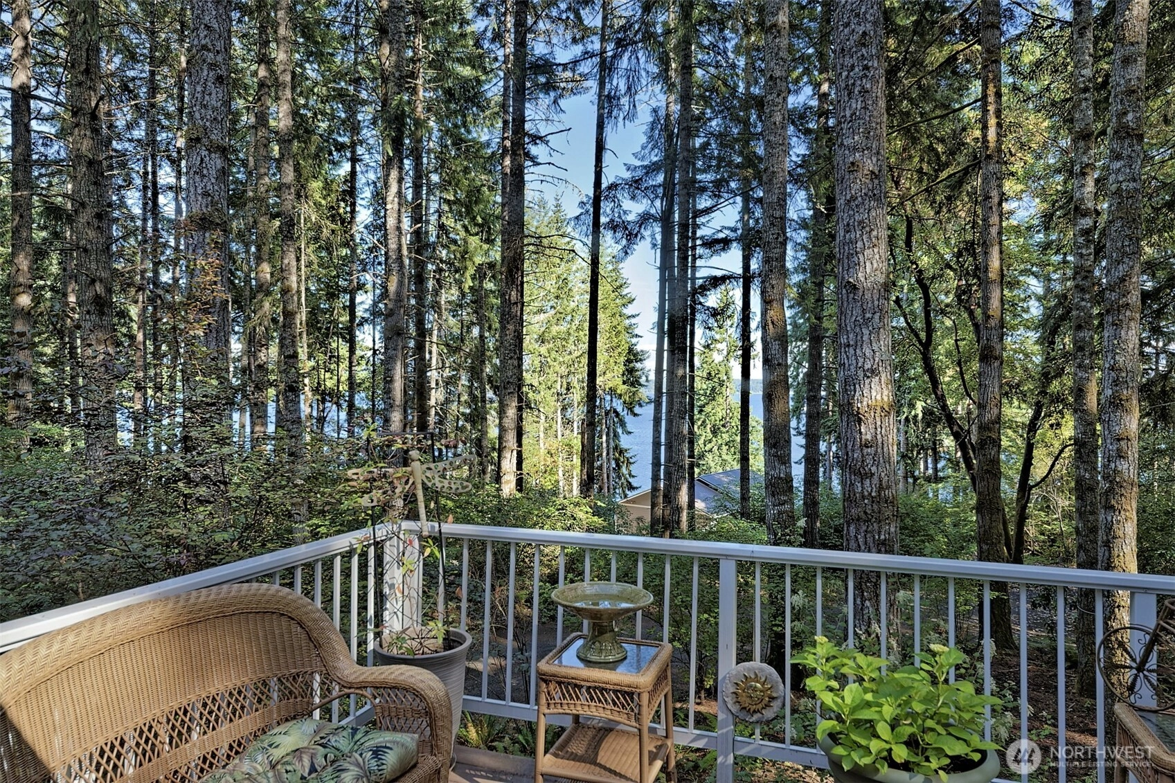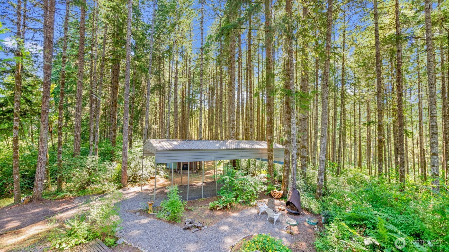 Absolutely majestic setting on 2.16 acres w/tall standing timber towering over the property along w/a view of Pickering Passage on Puget Sound.Breathe in the woodsie & salty air. Serenity & magical views-a true PNW retreat & setting.Step inside to a meticulous high quality home w/new flooring,fresh interior paint,soaring ceilings & large windows framing the view.Open concept kitchen/dining/living room lives large. Bedrooms each w/its own special view share an updated bath.Neat as a pin oversized garage, RV carport & outbuildings.Relax at the firepit & take in nature.Access to shared beach trail close by as well as many other recreational opportunities.An excellent opportunity for investment, and/or full/part time living- retreat style!