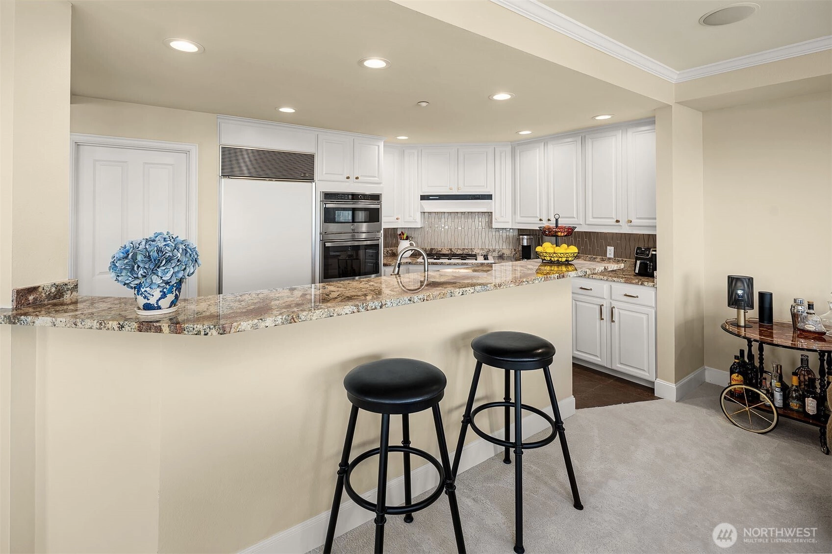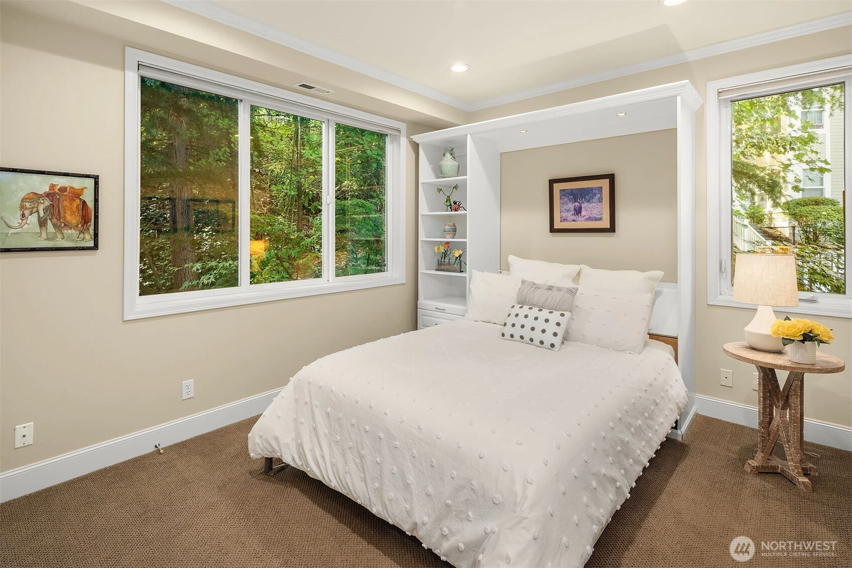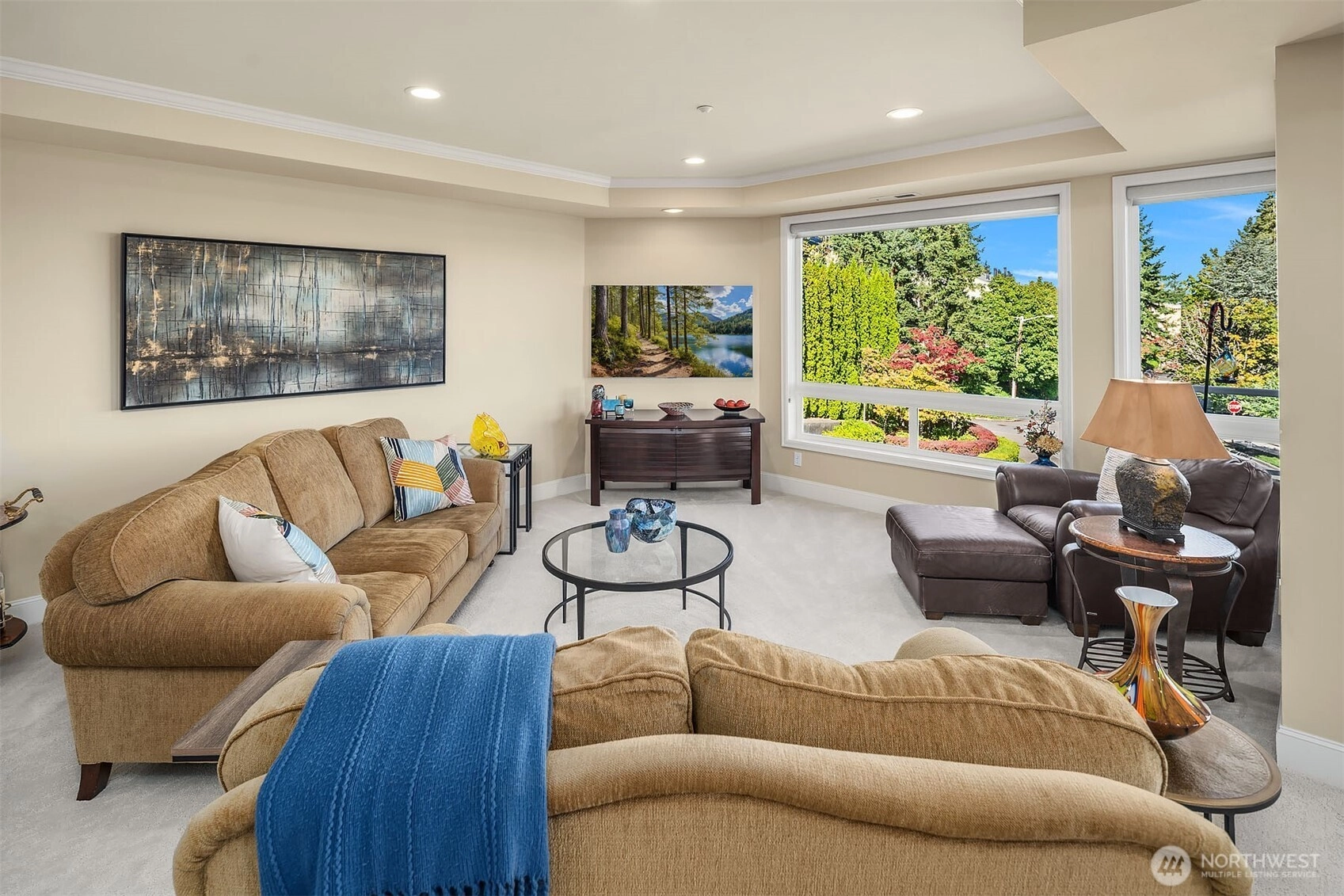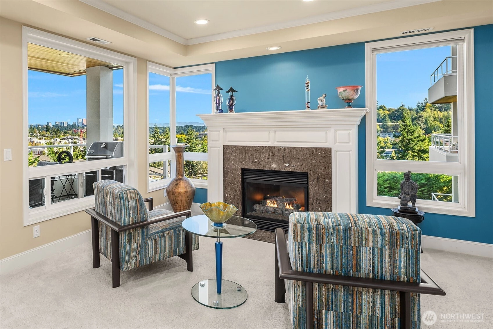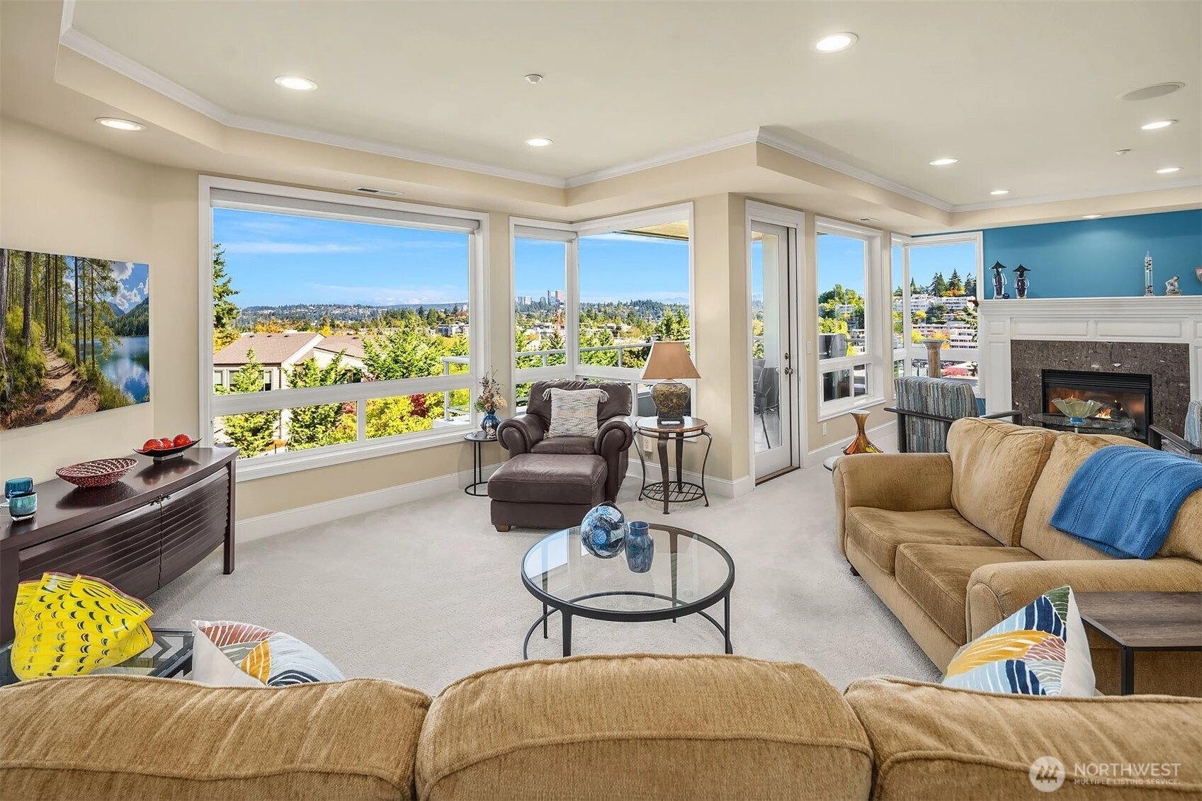 Embrace the lifestyle. Rare offering in Mercerdale Park, a coveted 9-unit boutique community on the North end of Mercer Island. This stylish one-level residence offers 1,991 sq ft of thoughtfully designed living with 2 spacious bedrooms, a versatile den/office, and 1.75 baths. The covered deck frames sweeping views, including the Bellevue skyline-perfect for morning coffee or evening chats. Two secure garage spaces, generous storage, and ample guest parking ensure every day is effortless. Step outside and you are immediately connected to everything: explore downtown shops and dining, easy access to I-90, Park & Ride, and the light rail station. This meticulously maintained condo offers the perfect blend of comfort and ultimate island charm.