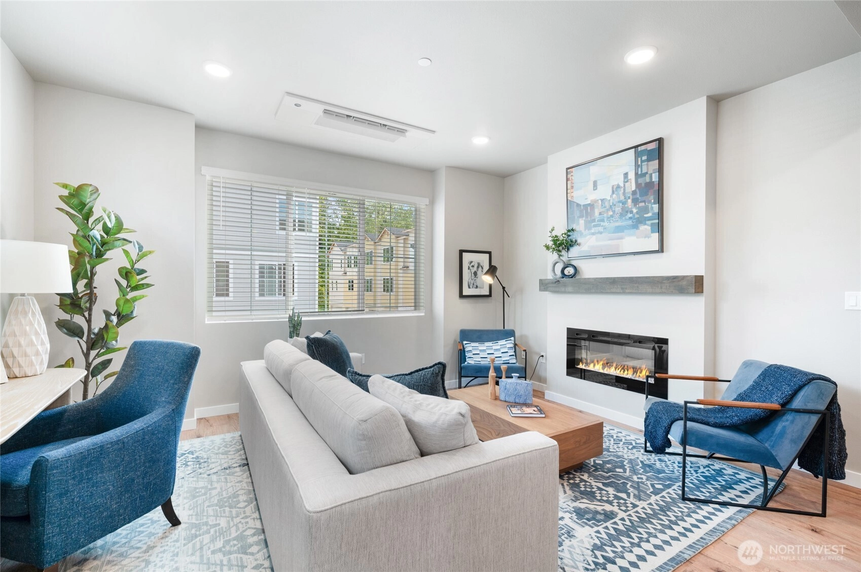Welcome to Aberdour Landing, a new community in Bothell showcasing beautifully designed homes with upscale finishes. This home offers 2 bedrooms with private in-suite bathrooms, a dedicated office/den, cozy fireplace, and extra garage storage. Enjoy thoughtful features like balcony heaters, stair lighting, and Ring doorbells for modern convenience. The spacious kitchen is perfect for gatherings, featuring a large island, quartz countertops, and a built-in seating nook. Discover comfort and style at Aberdour Landing. Lot 21 Includes appliance package, Finished in the Classic Color Scheme. Community is subject to a site registration policy.