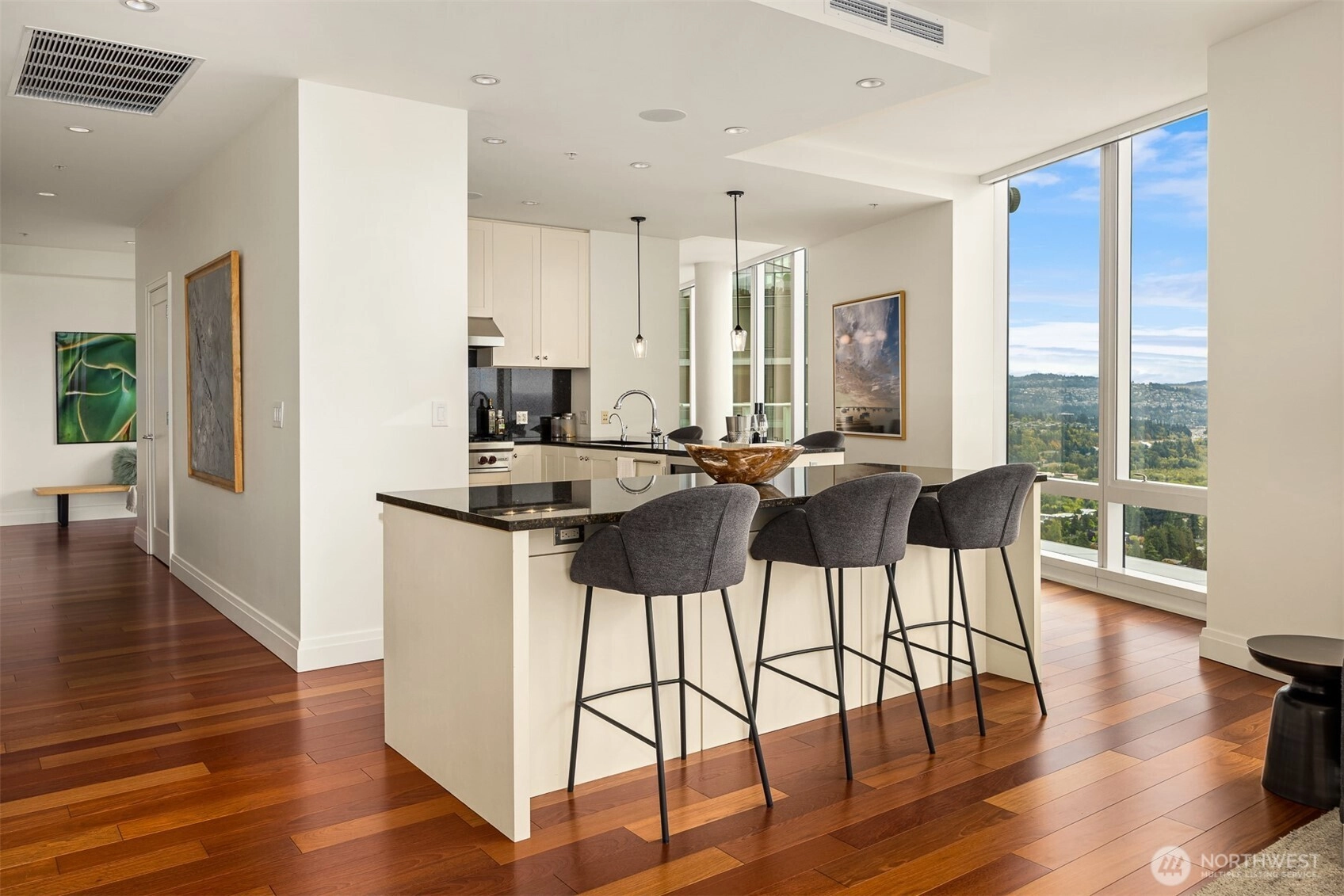A high-performance life deserves a high-performance home — one that can only be found at the iconic Bellevue Towers. Touch the sky from the 41st floor and surround yourself with sweeping views of Lake Washington, City Skylines, Mt.Rainier and the Olympic Mountains. Expansive spaces, 10-foot ceilings and floor-to-ceiling windows flood the home with brilliant light. A dazzling kitchen features Wolf appliances, custom cabinetry, dual wine fridges and a butler’s pantry. Enjoy 3 premium parking w/EV option & large storage. 24-hour concierge, luxury fitness center & spa, theater, lounges, pet retreat and a half-acre garden with cascading waterfalls. Don’t miss this rare opportunity to own a one-of-a-kind penthouse at the revered Bellevue Towers!