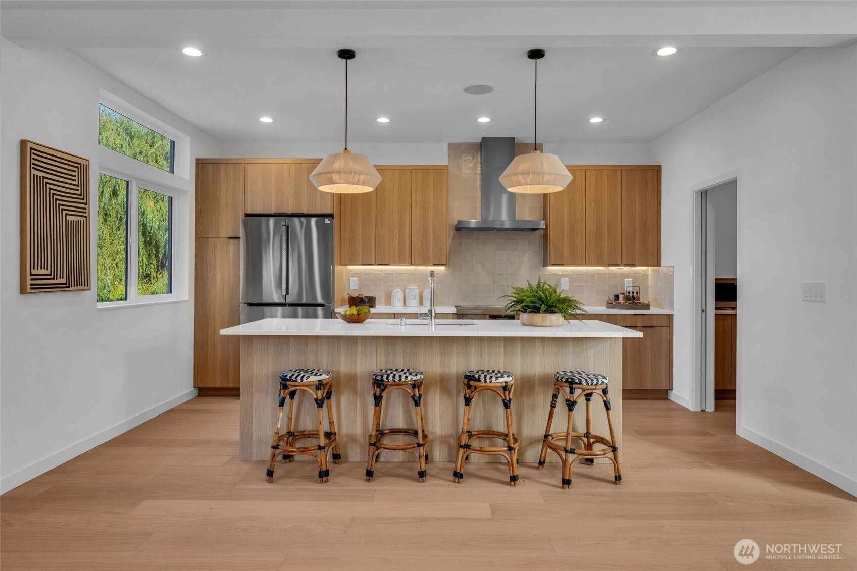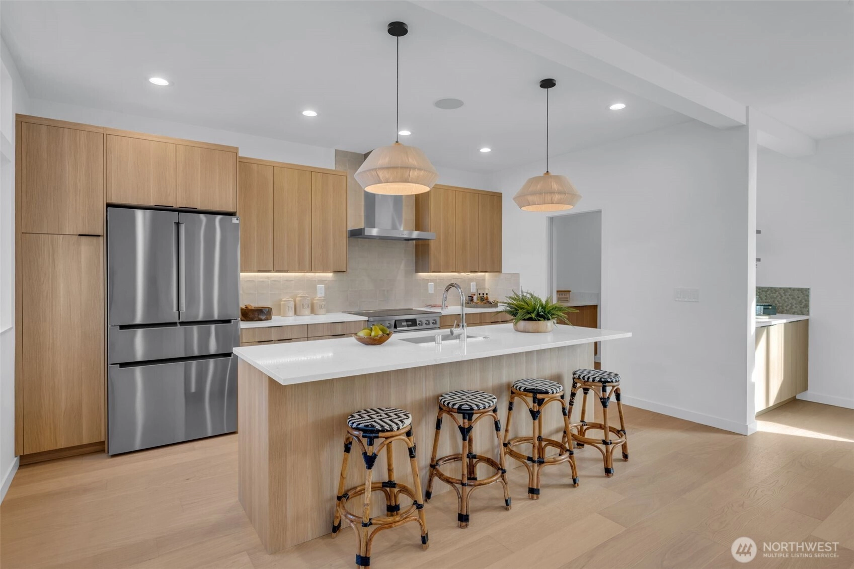 Discover your dream home in the tranquil Seaview neighborhood of West Seattle! This stunning new construction home boasts 2,291SF of thoughtfully designed living space, featuring 4 spacious bedrooms and 3.5 luxurious baths. Large Island kitchen with plenty of seating. Built-in cabinets make a great serving area off the dinning room. Covered deck off living room. Top floor primary suite has large walk-in closest. Separate laundry room upstairs. Enjoy breathtaking views of the Sound and mountains from the expansive rooftop deck, perfect for soaking in vibrant sunsets. Nestled on a peaceful street yet only a short stroll away from the bustling Alaska Junction. With a two-car attached garage, convenience meets comfort in this idyllic setting.