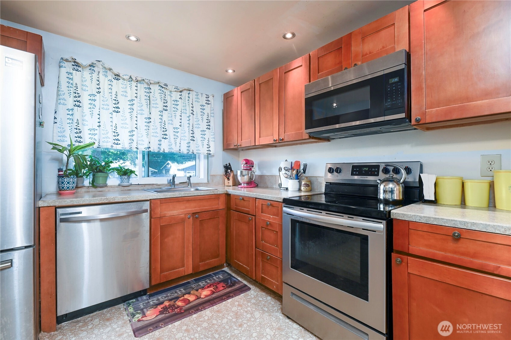 Charming 3-bedroom rambler on a spacious corner lot with a two-car garage! This single-level home offers easy living with a bright living room, functional kitchen, and a comfortable layout ready for your personal touches. Large windows bring in natural light while the level yard provides room for gardening, play, or entertaining. The corner lot adds extra privacy and parking flexibility, while the attached garage gives plenty of storage and convenience. Located in a well-established neighborhood close to schools, parks, shopping, and easy freeway access, this home is ideal for first-time buyers or those looking to downsize. A solid opportunity to create lasting value in a desirable location!