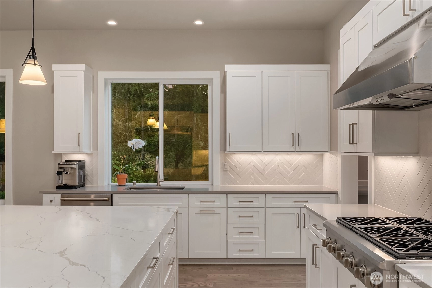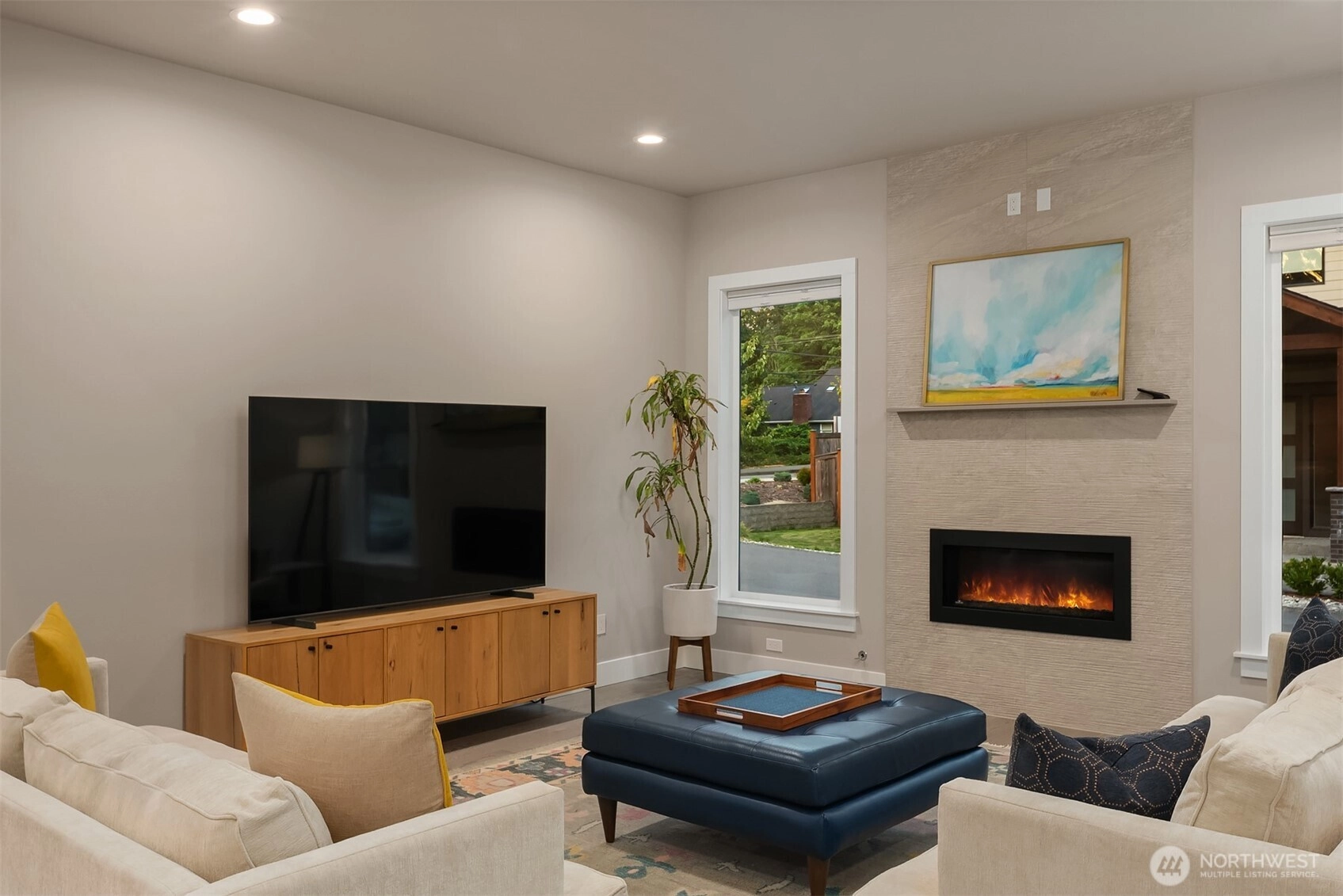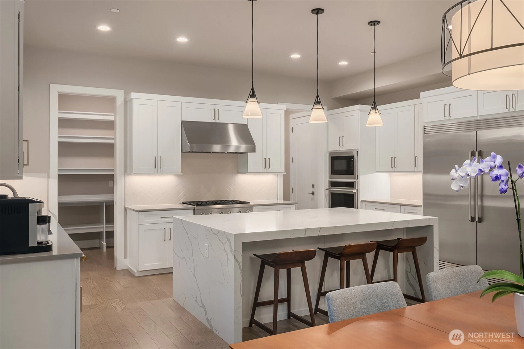 Built in 2021, this contemporary home showcases an open layout with year-round natural light. Walk inside to your chef’s kitchen offering dual pantries, waterfall quartz countertops, an oversized island, high-end stainless steel appliances, 60” fridge, and white shaker cabinetry. With 4 bedrooms, 3.5 baths—including 2 en-suites—plus an office and bonus retreat, there’s space for every need. The primary suite features a flex space, large spa-like bath, and expansive walk-in closet, while the great room opens to a covered patio with a cozy outdoor fireplace. Additional features include a 3-car garage, mudroom, and central A/C - all within top-rated Northshore School District on nearly a third of an acre. This one is a must-see!