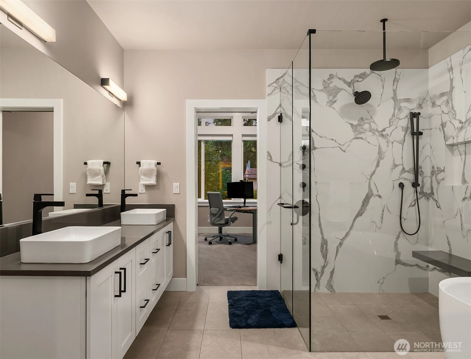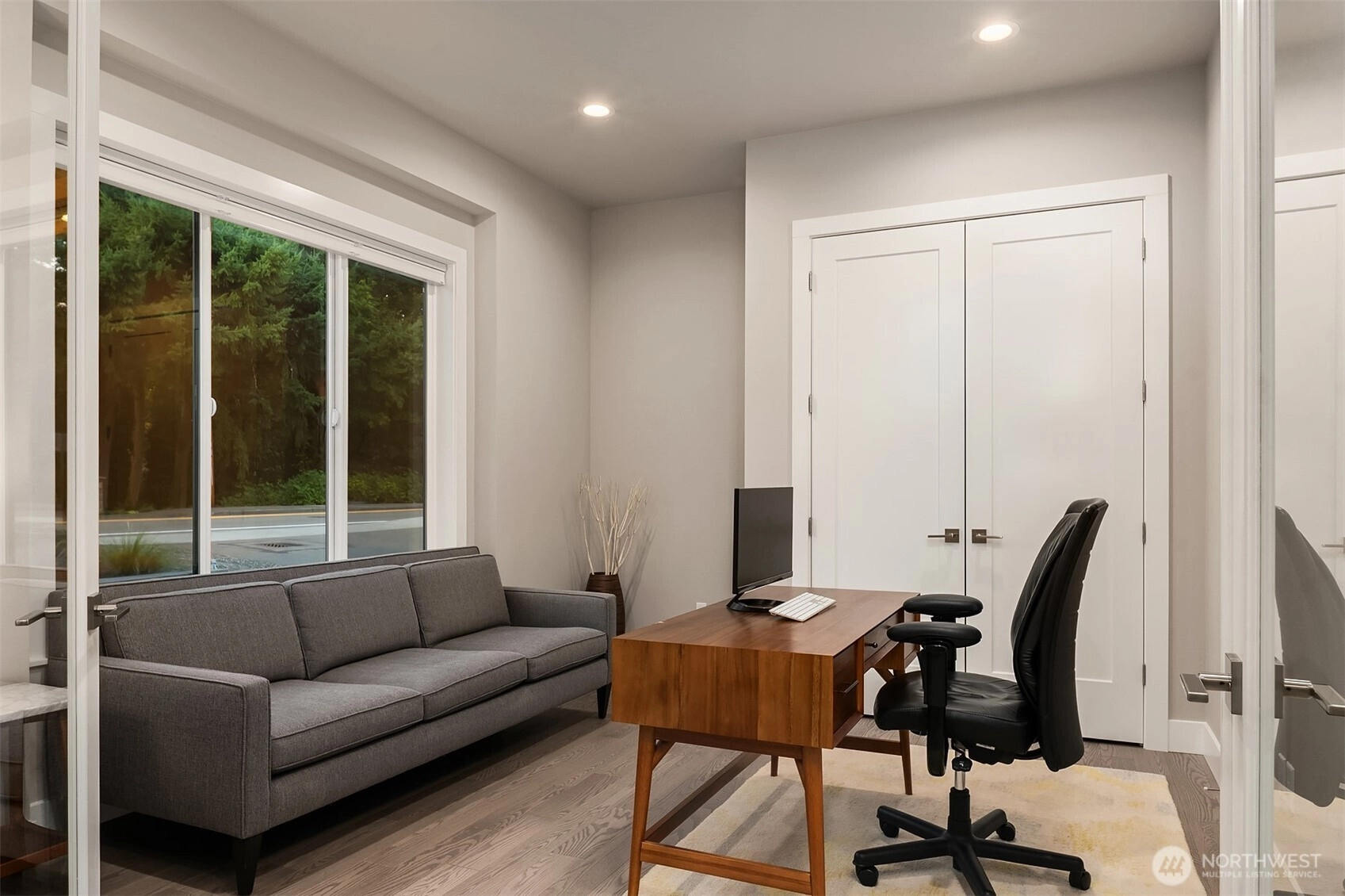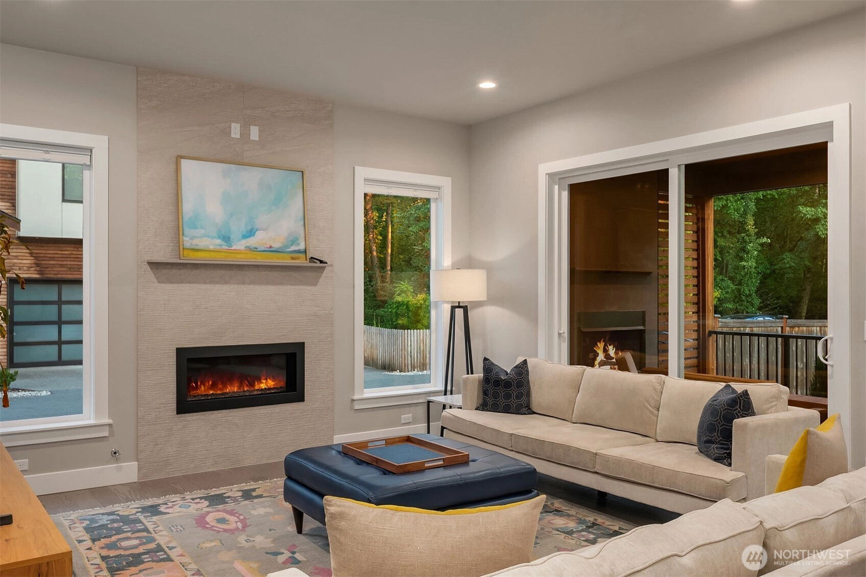Built in 2021, this contemporary home showcases an open layout with year-round natural light. Walk inside to your chef’s kitchen offering dual pantries, waterfall quartz countertops, an oversized island, high-end stainless steel appliances, 60” fridge, and white shaker cabinetry. With 4 bedrooms, 3.5 baths—including 2 en-suites—plus an office and bonus retreat, there’s space for every need. The primary suite features a flex space, large spa-like bath, and expansive walk-in closet, while the great room opens to a covered patio with a cozy outdoor fireplace. Additional features include a 3-car garage, mudroom, and central A/C - all within top-rated Northshore School District on nearly a third of an acre. This one is a must-see!