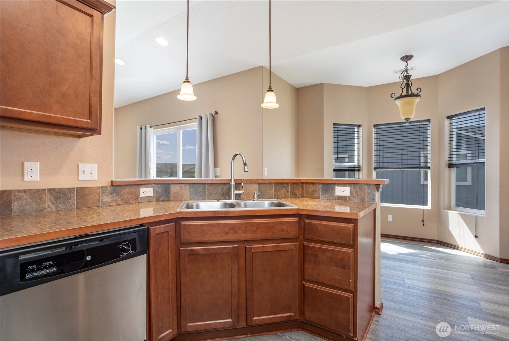 Charming Home on a Corner Lot in Othello! Welcome to this beautifully maintained 1,516 sq ft home, offering 3 bedrooms and 2 bathrooms. Step inside to soaring ceilings and new flooring that create an open, welcoming atmosphere. The great room features slider access to the patio, while 2 dining areas offer the perfect setup for casual meals or entertaining guests. The kitchen has a breakfast bar, stainless steel appliances, and a spacious pantry. The primary suite includes a generous closet and ensuite bathroom. Set on a .17-acre corner lot, the property offers a patio, along with an attached 2-car garage for parking and storage. Located near Hiawatha Elementary, Lions Park, medical facilities, and local amenities!