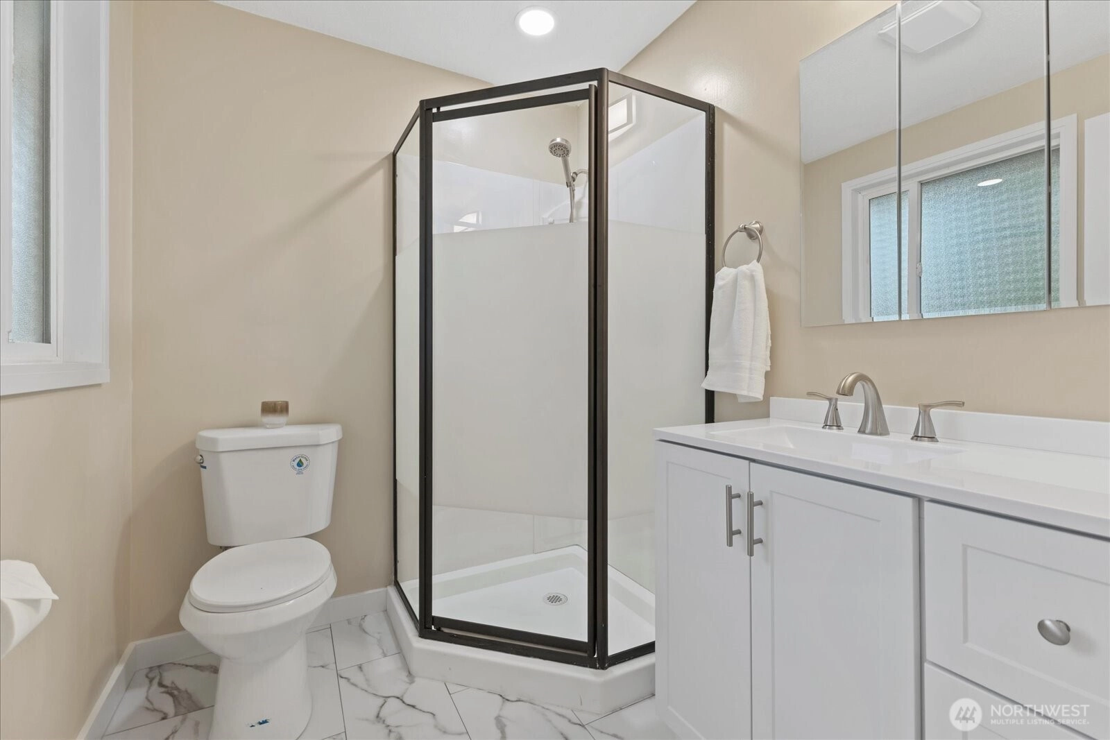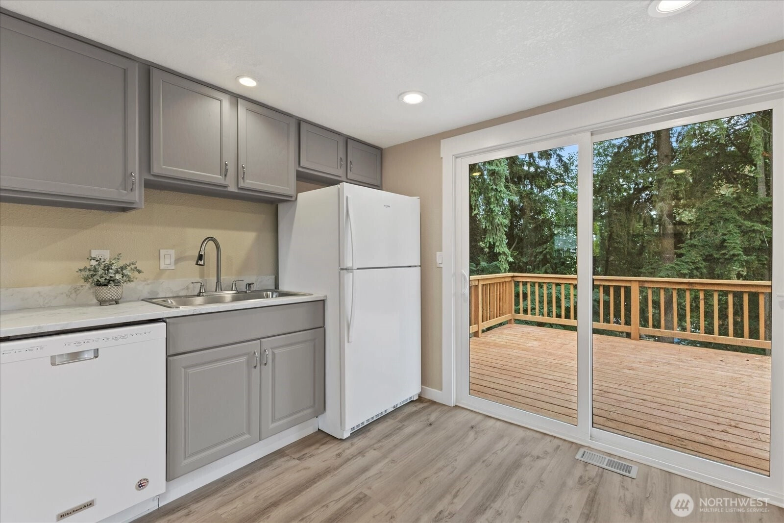 Move-in ready split-level with updates throughout! This 4 bed, 2.5 bath, 1,852 sq ft home features fresh paint, new carpet, updated kitchen and baths, and new flooring. Light-filled living room with stone fireplace, dining area with slider to brand-new deck, and spacious rec room downstairs. Recent upgrades include new vinyl windows, new decks, and a new heat pump for comfort and efficiency. Large fully fenced 10,890 sq ft lot with 2-car garage plus RV/boat parking. Quiet neighborhood near Lake Stevens schools, lake, trails, and freeway access. A perfect blend of comfort, convenience, and community.