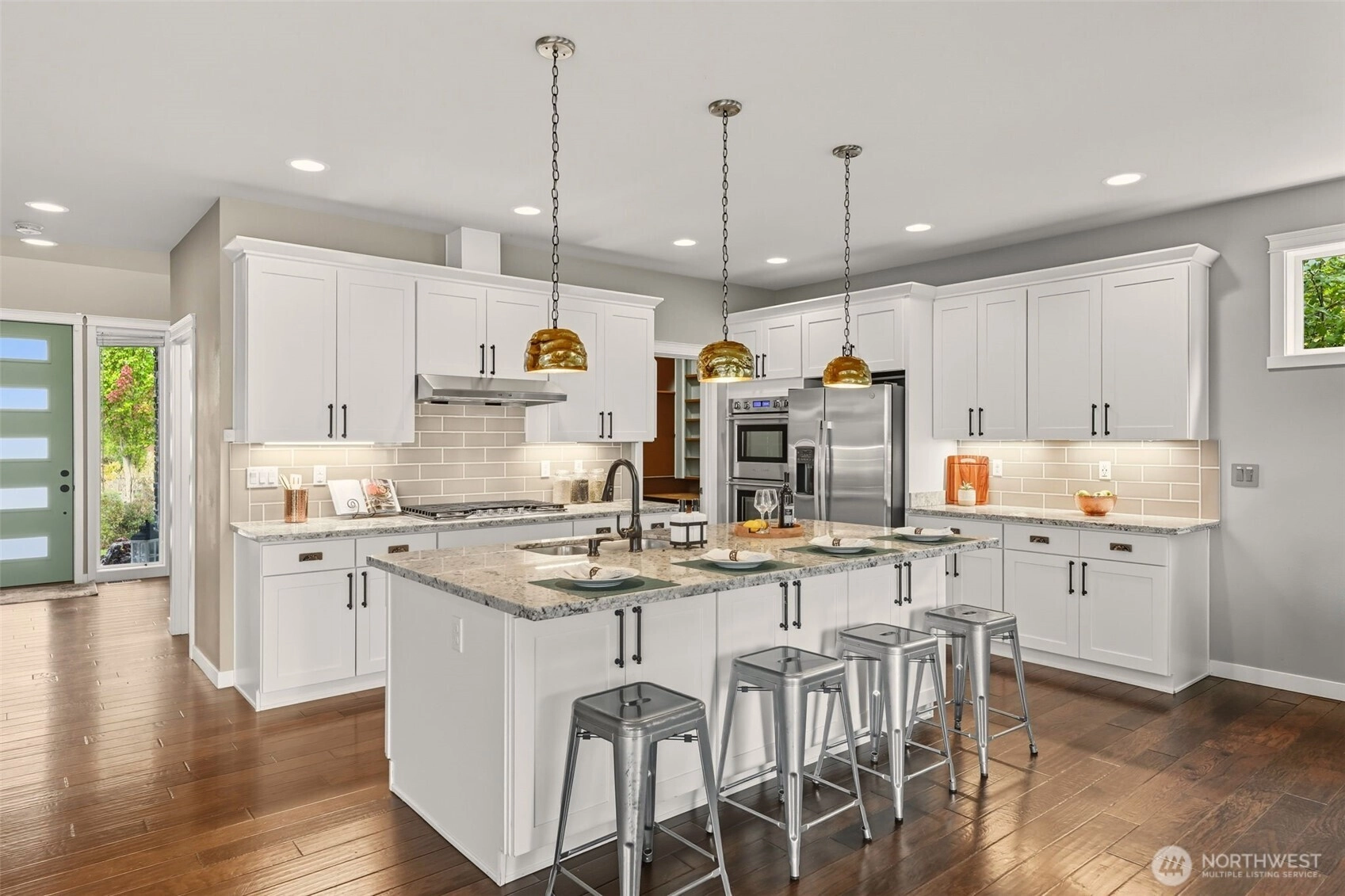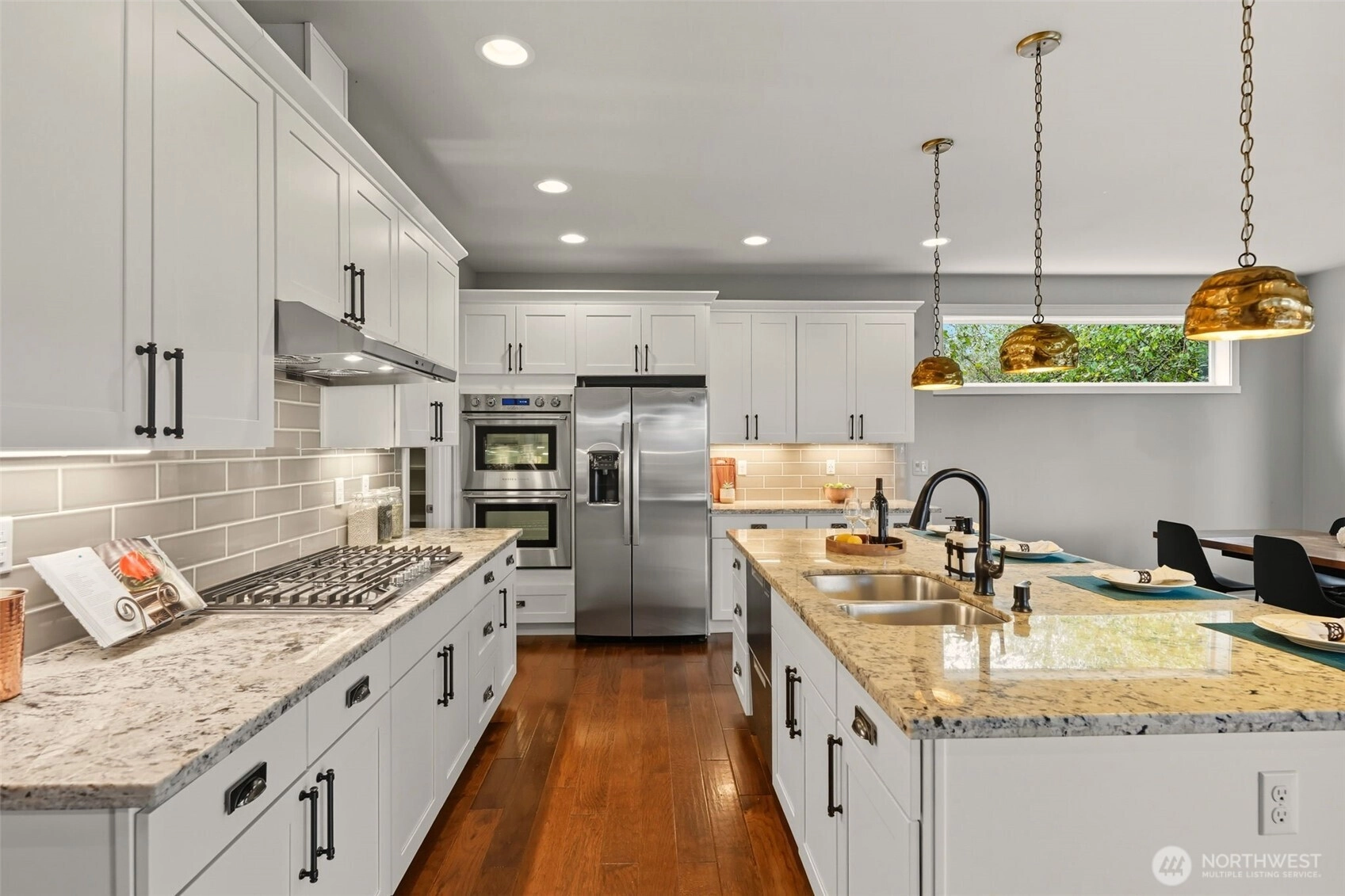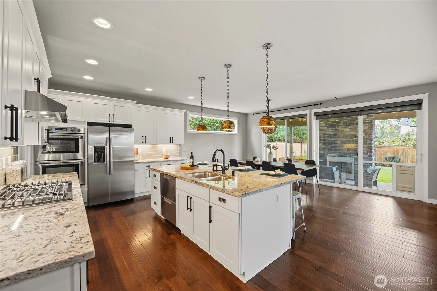 Discover this inviting home that offers generous living space. This home lives large with a spacious great room that flows seamlessly from the kitchen and dining area, creating the perfect entertaining space. If you like to cook, you will love the Fisher & Paykel double oven and 2 dishwashers. A bonus room and office/den provide flexibility for work, play, or relaxation, while large windows fill the home with natural light. Step outside & enjoy the covered patio w/outdoor fireplace ideal for gathering with friends. Green thumbs will love the abundance of vegetable gardens, and the peaceful location at the end of a cul-de-sac offers both privacy and charm. Ideal location that is close to I5, Hwy 204, Costco, and shopping/dining.