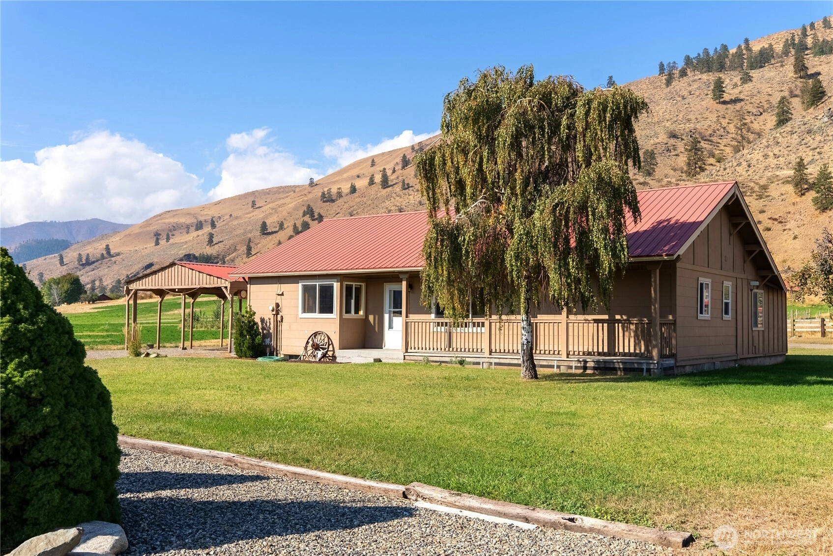 TWISP: Delightful 5-acre ranchette, perfect for equestrian enthusiasts and those seeking country living. Property features fenced corrals, an outdoor arena & irrigated pastures. Move-in ready 1,328sf, 2-bd, 1-ba home. Enjoy a spacious kitchen, hardwood floors in main living area, cozy wood stove, large mudroom, unfinished basement & covered back porch to take in the beautiful mountain and territorial views. Multiple outbuildings include a two-car detached garage/shop w/lots of extra storage/work space & carport, plus an additional barn/storage building. Convenient U-shaped driveway circles around the back of the house for easy access to all amenities. Don’t miss your chance to experience the unique possibilities this property has to offer!