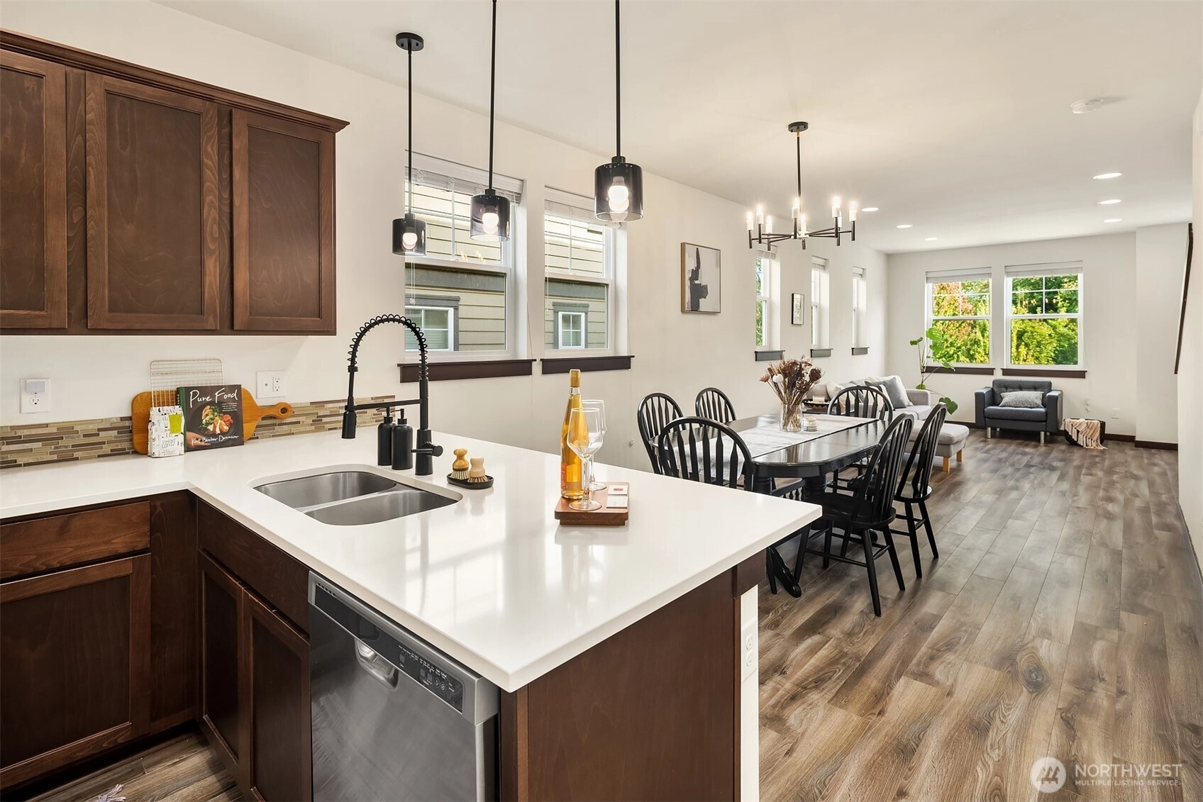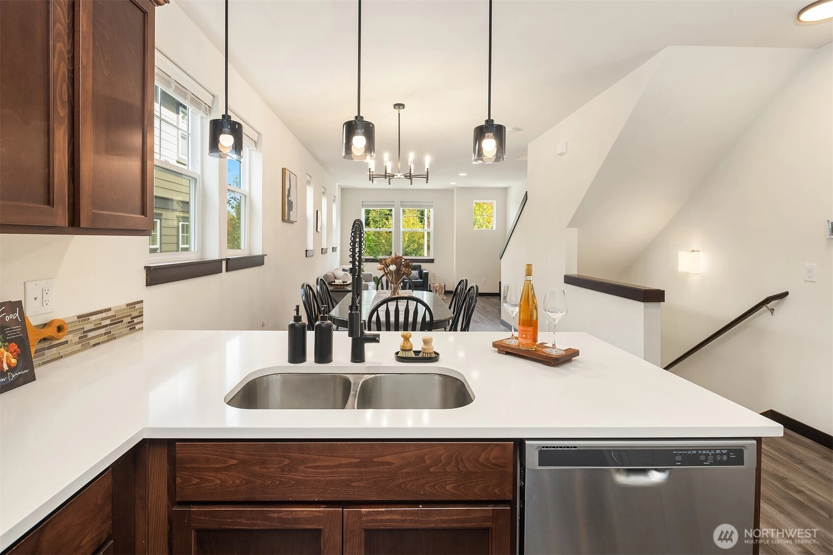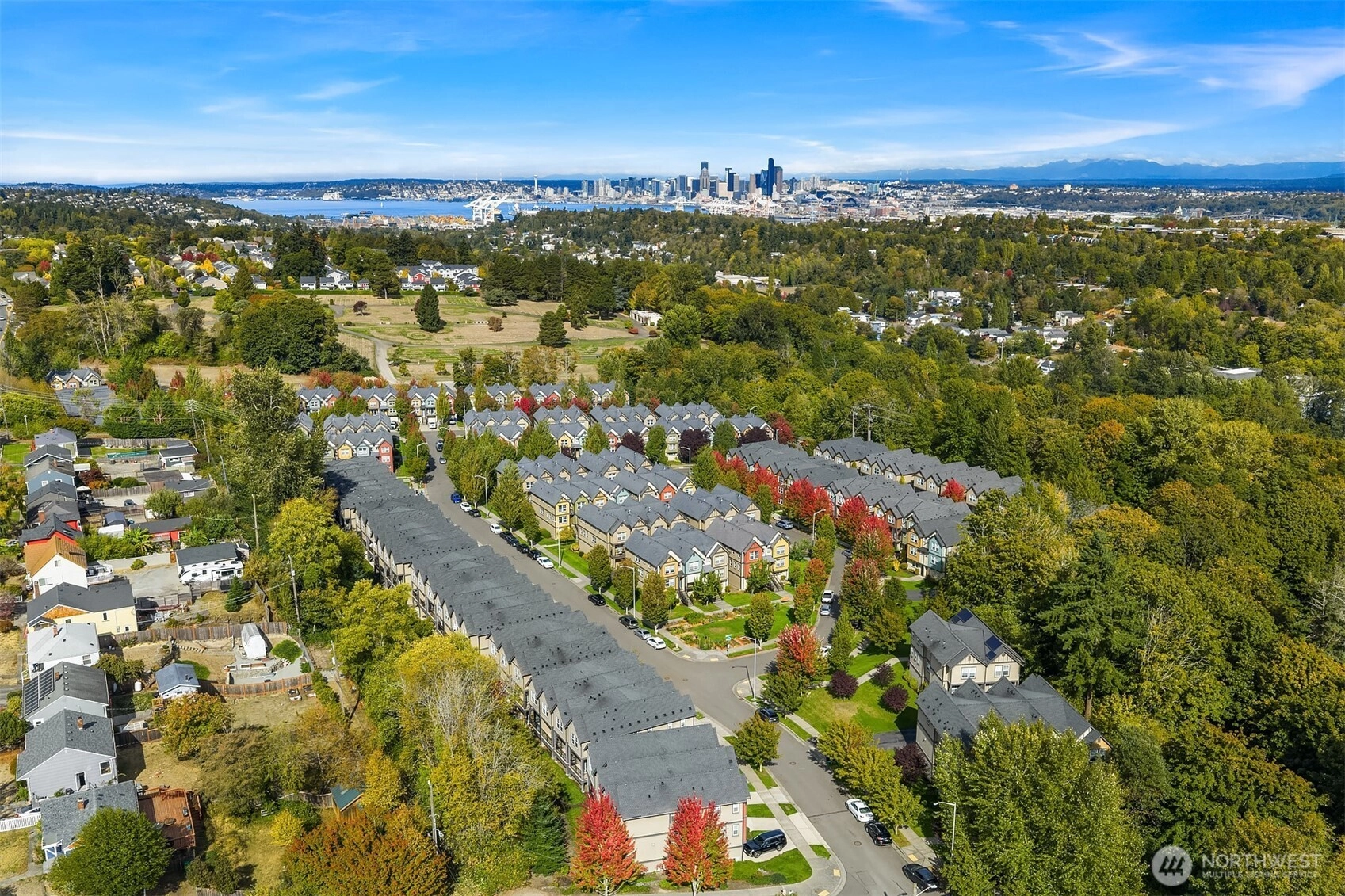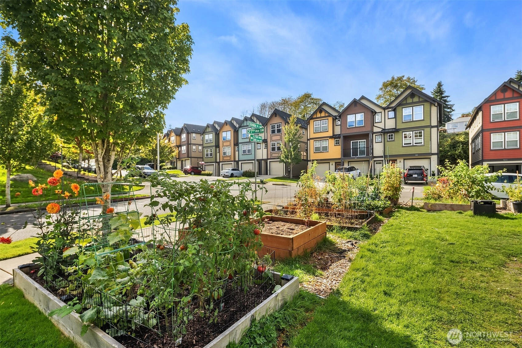Welcome to Sylvan Ridge, a hidden gem in the heart of West Seattle where community charm meets modern convenience. This storybook end-unit townhome offers an open main floor that showcases a spacious kitchen with island, stainless steel appliances, and ample countertop space, flowing seamlessly to the dining room and outdoor deck. Upstairs, find the primary suite with ¾ bath plus a second bedroom or office with its own full bathroom. The lower level includes a large two-car garage with storage and additional driveway parking. Refreshed interior, modern conveniences, and thoughtful layout make this home a must see! Conveniently located minutes from the Junctions, Lincoln Park, Alki Beach, shopping, dining, and a quick commute into Seattle!