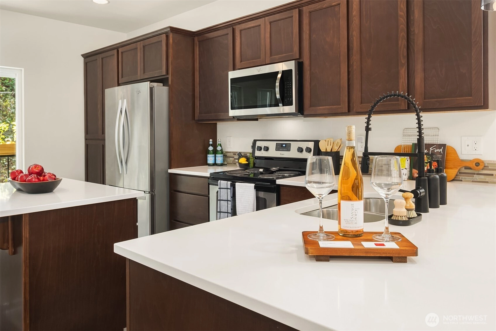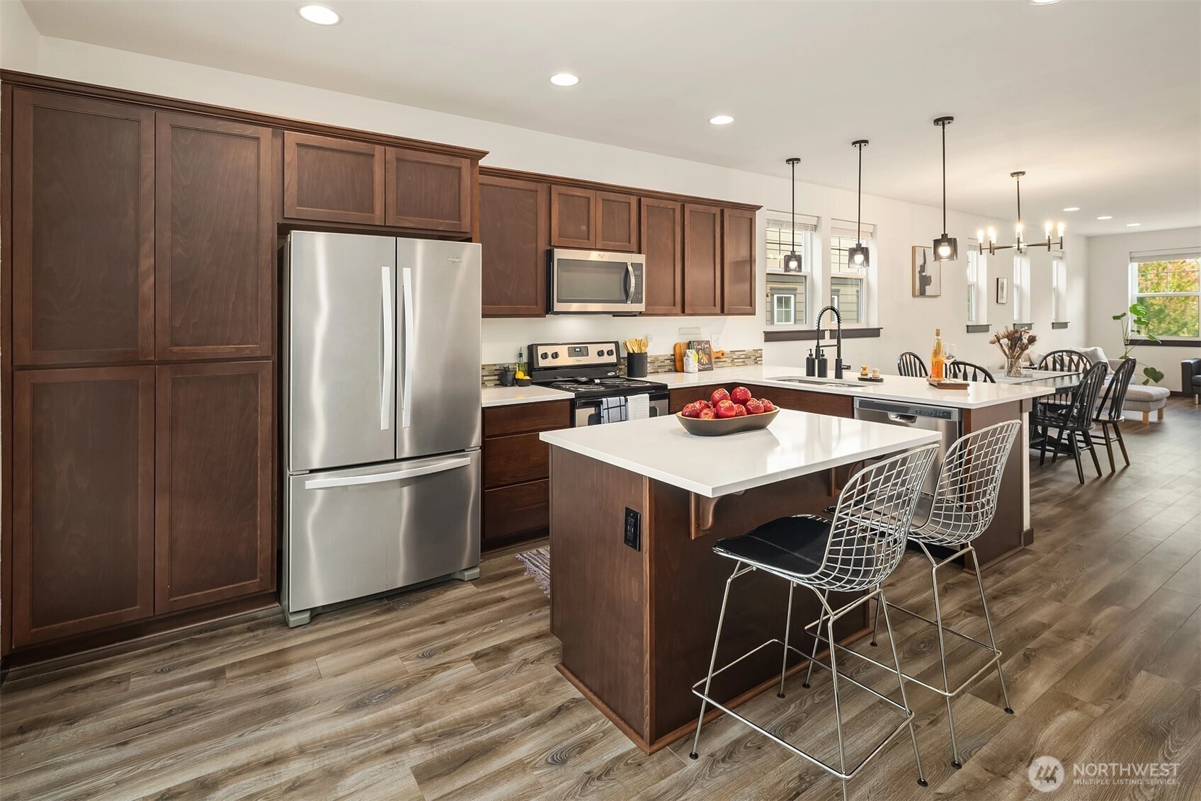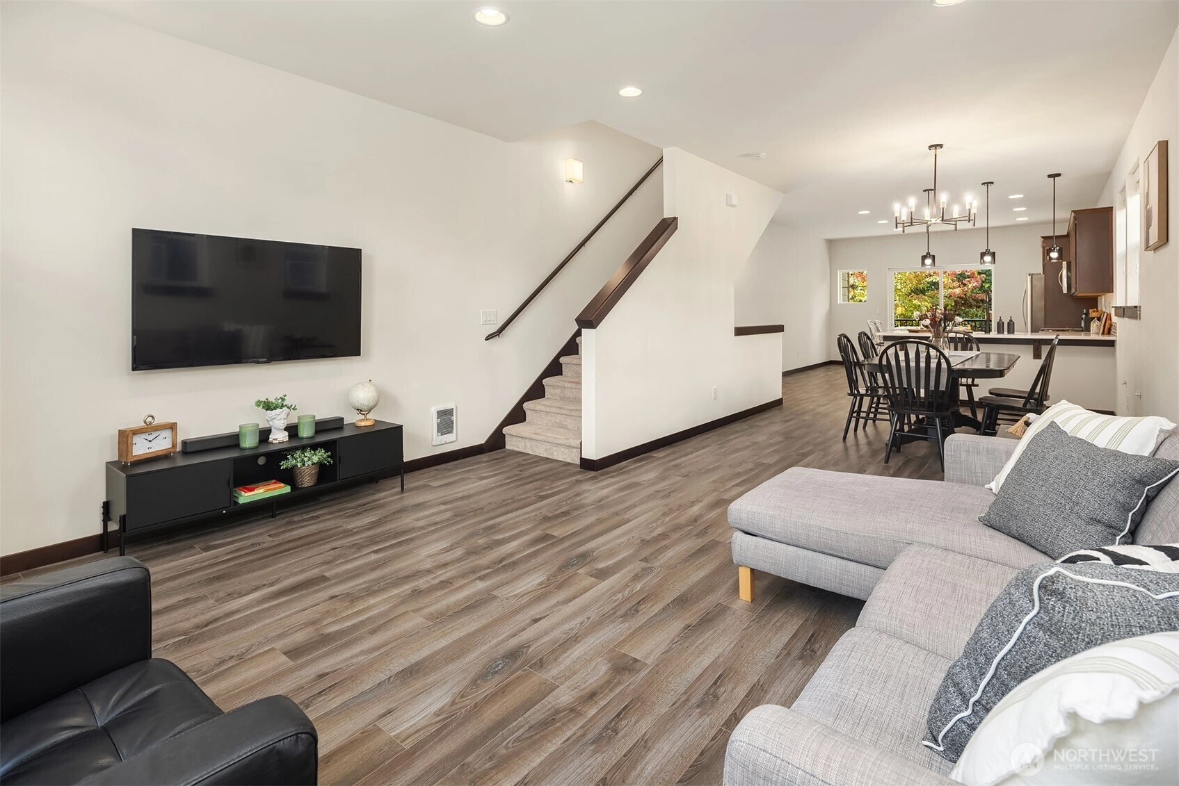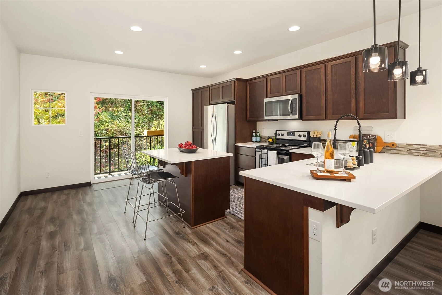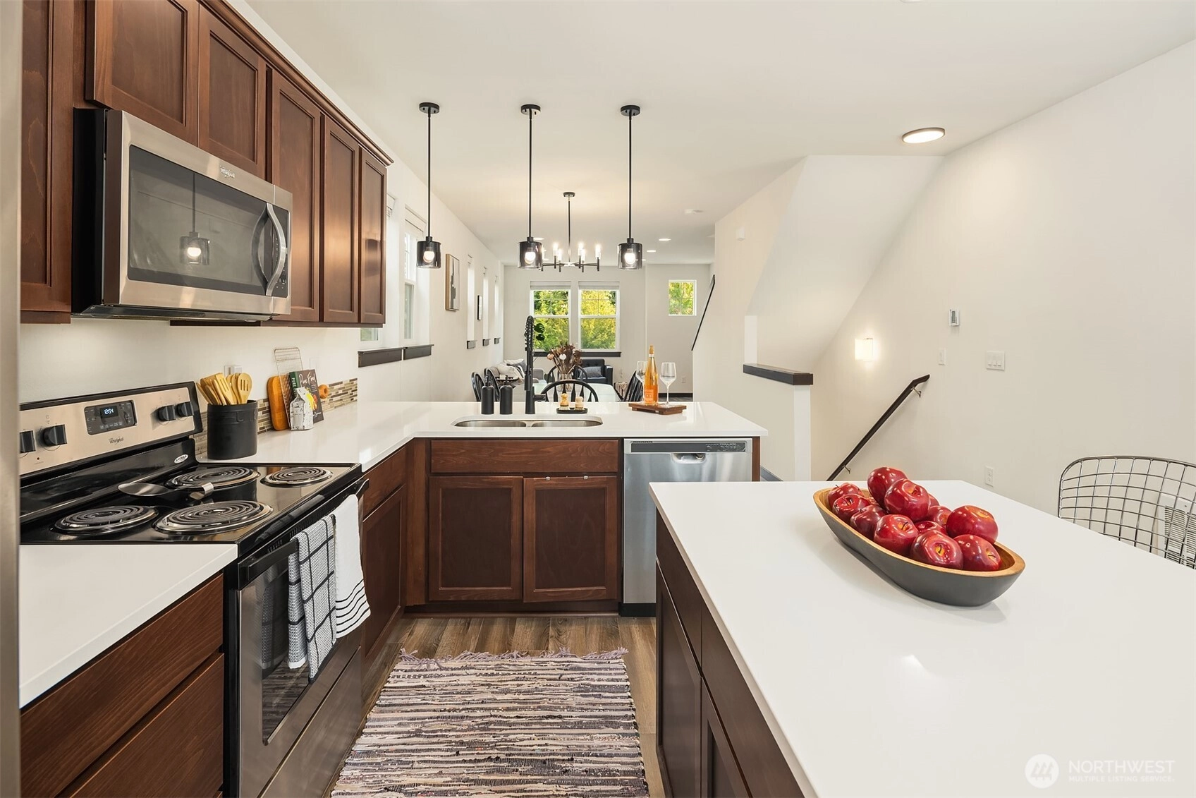 Welcome to Sylvan Ridge, a hidden gem in the heart of West Seattle where community charm meets modern convenience. This storybook end-unit townhome offers an open main floor that showcases a spacious kitchen with island, stainless steel appliances, and ample countertop space, flowing seamlessly to the dining room and outdoor deck. Upstairs, find the primary suite with ¾ bath plus a second bedroom or office with its own full bathroom. The lower level includes a large two-car garage with storage and additional driveway parking. Refreshed interior, modern conveniences, and thoughtful layout make this home a must see! Conveniently located minutes from the Junctions, Lincoln Park, Alki Beach, shopping, dining, and a quick commute into Seattle!