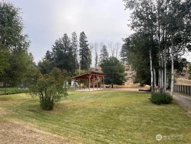 TWISP – The best of both worlds! Close to town yet perfectly peaceful, this lush 0.40-acre lot is ready for your immediate enjoyment while you plan your future home. Surrounded by mature trees and irrigated via MVID, it’s the ideal blend of convenience and tranquility. All the essentials are already in place—power, private well, 3-bedroom septic system, and RV hookup—making it turnkey for a weekend escape. The thoughtfully built custom RV cover, tucked toward the back of the lot, was designed with the future in mind and can easily be converted into a permanent living space. Located just outside town limits, you’ll love the serenity while still being within walking distance to Twisp’s restaurants, shops, and amenities.