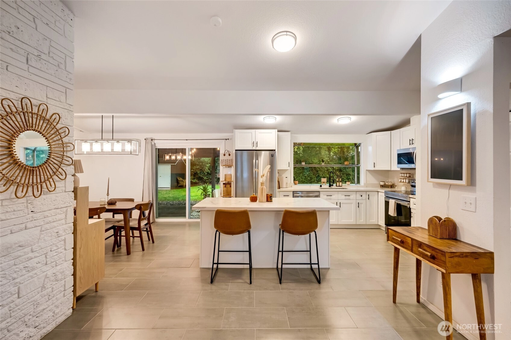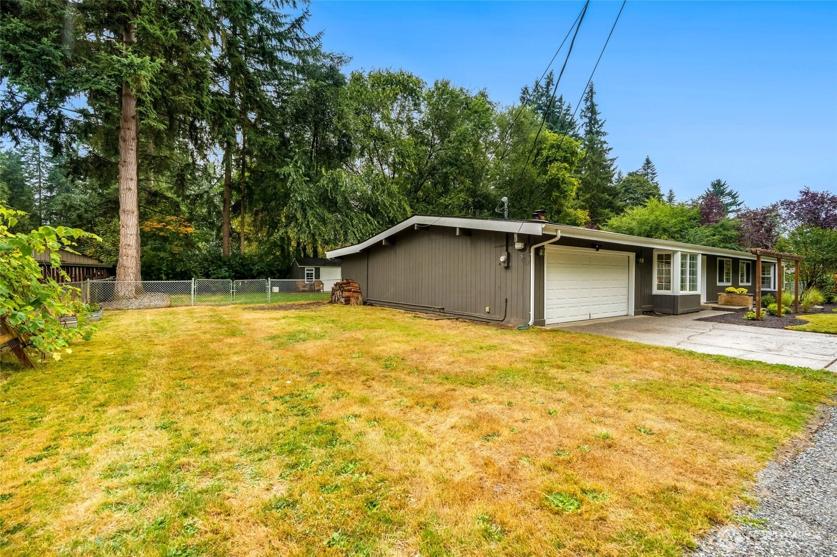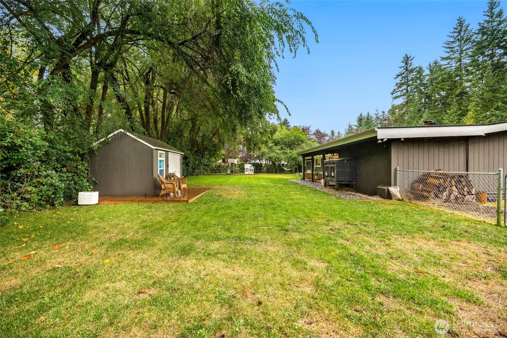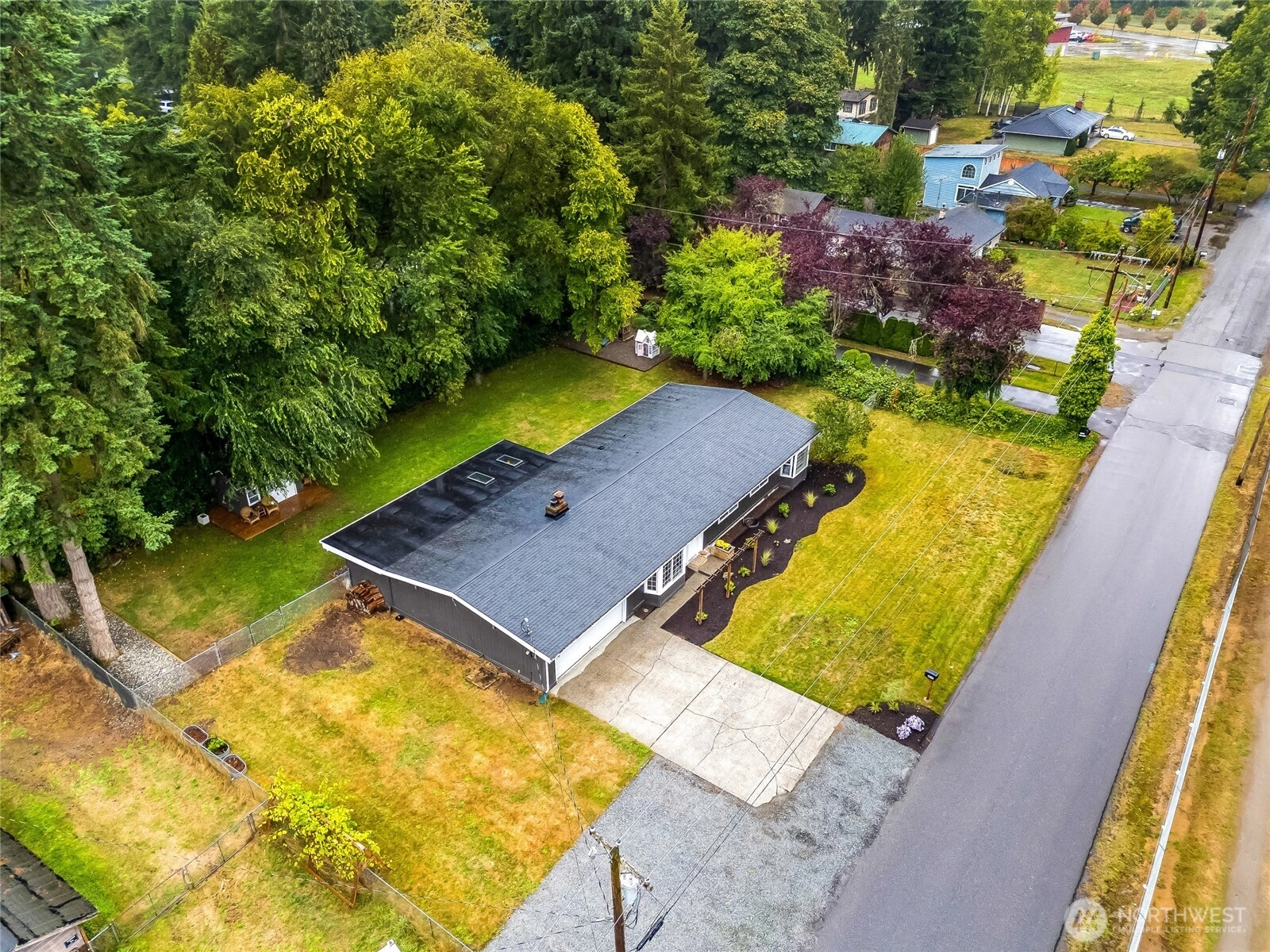 Beautifully updated rambler on a spacious ½ acre lot in the heart of Smokey Point! This 3-bedroom + office, 2.5-bath home features a bright open-concept living area with vaulted ceilings, fully remodeled kitchen and bathrooms, and modern finishes throughout. The large primary suite includes a walk-in closet and ensuite bath, while another bedroom also enjoys its own private bathroom. Recent upgrades include a newer roof, tankless water heater, and energy-efficient mini-split for updated heat & AC. Step outside to a huge covered patio, flat yard perfect for play, gardening, or space to expand. Don't miss the detached backyard office. Just minutes from shopping, dining, and I-5, this move-in ready home blends comfort, convenience, and space!