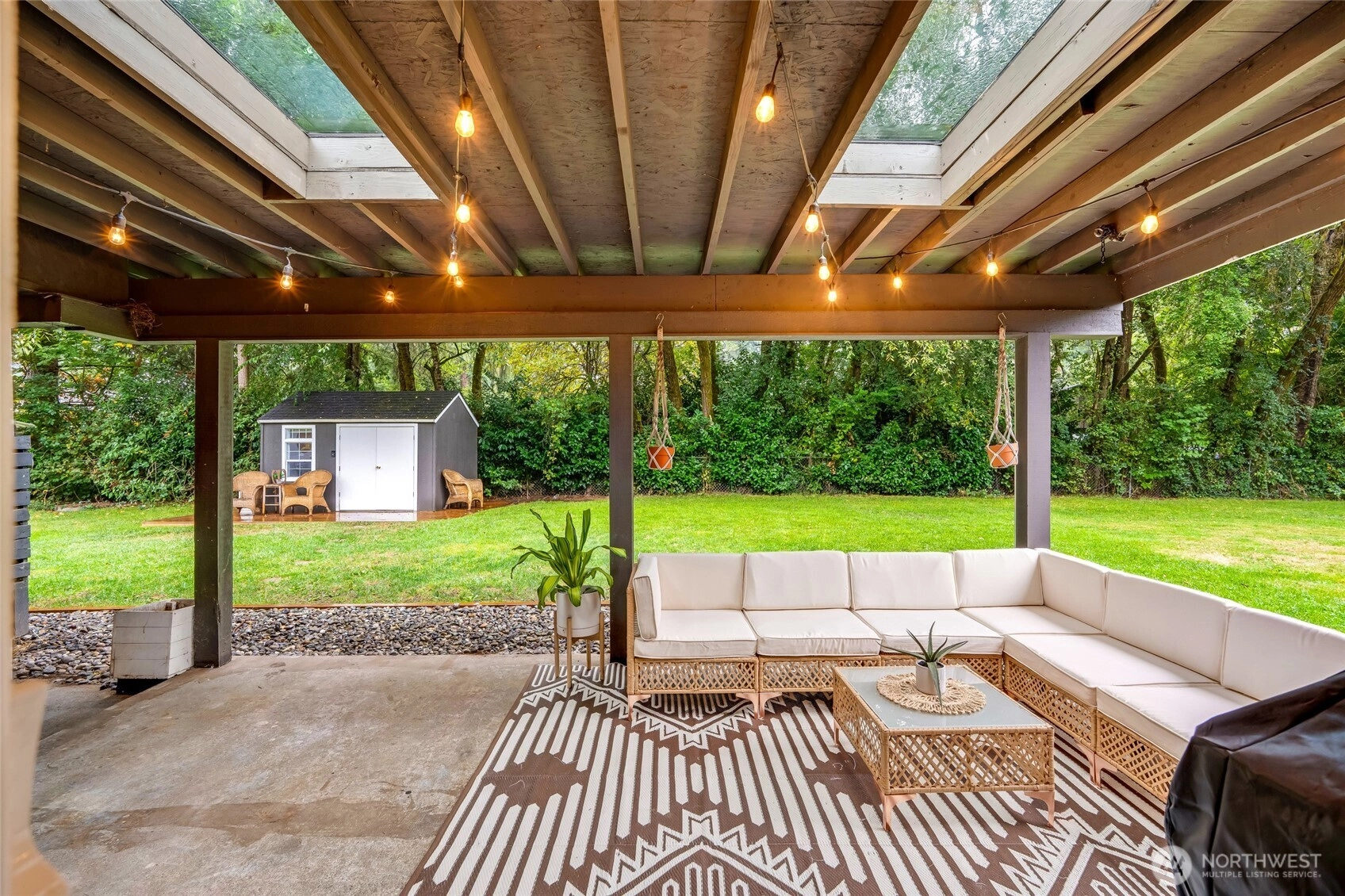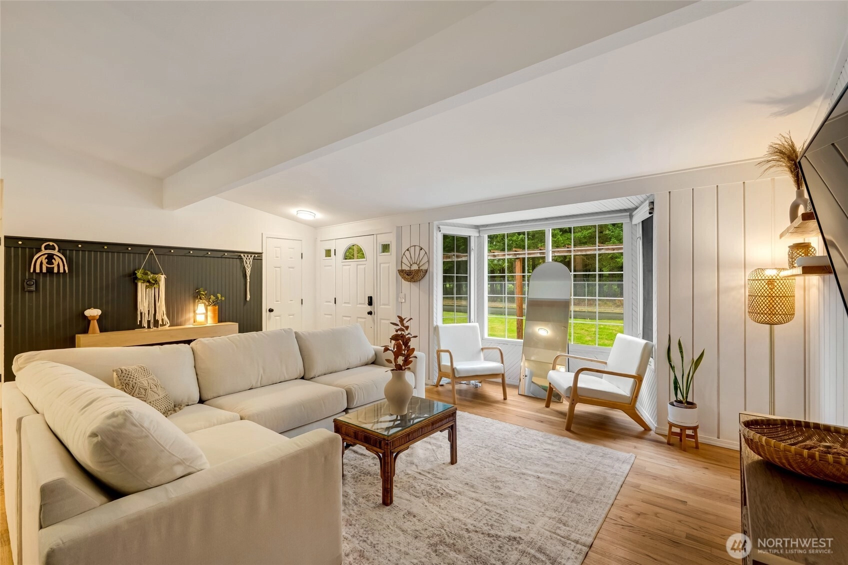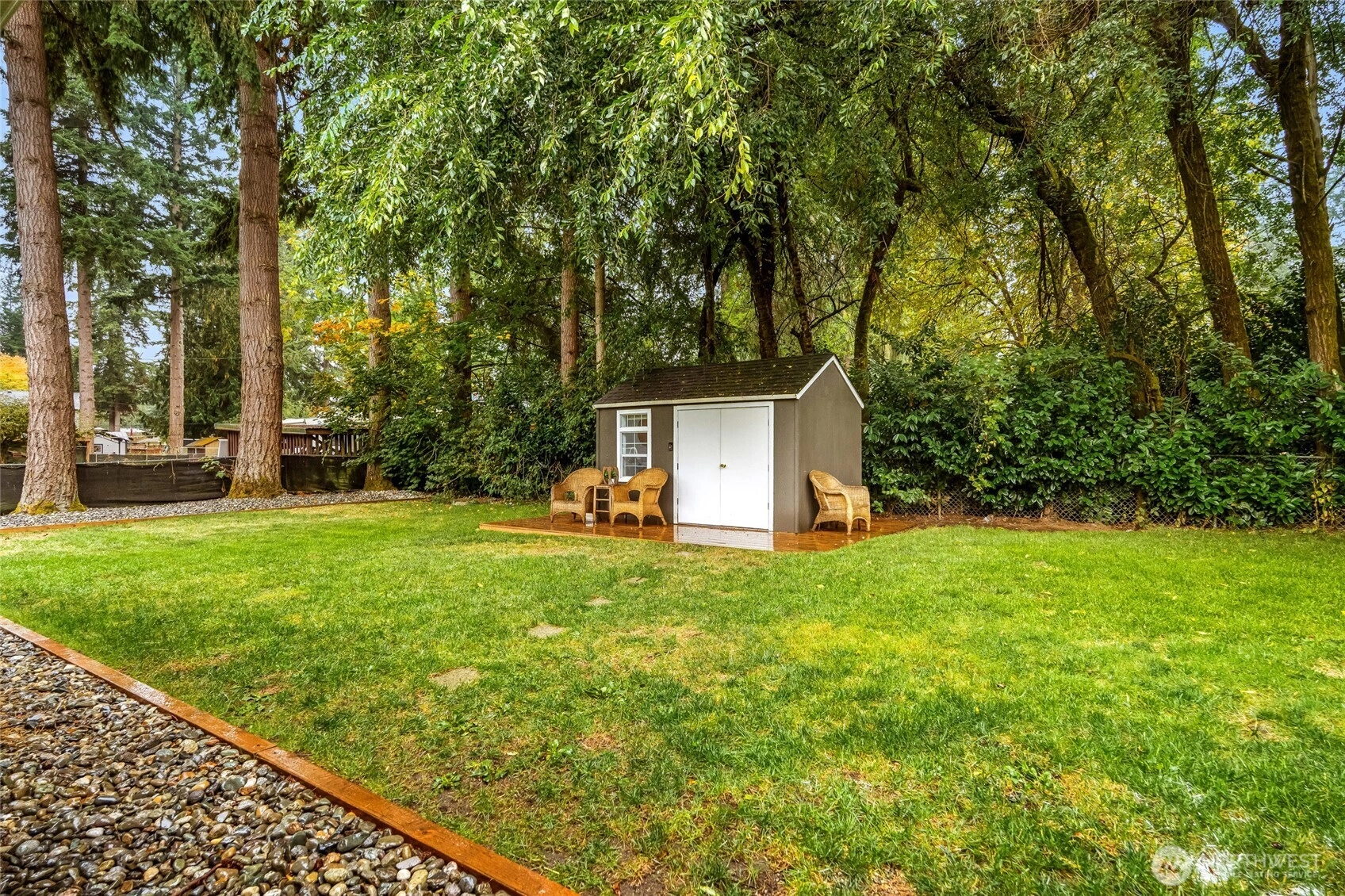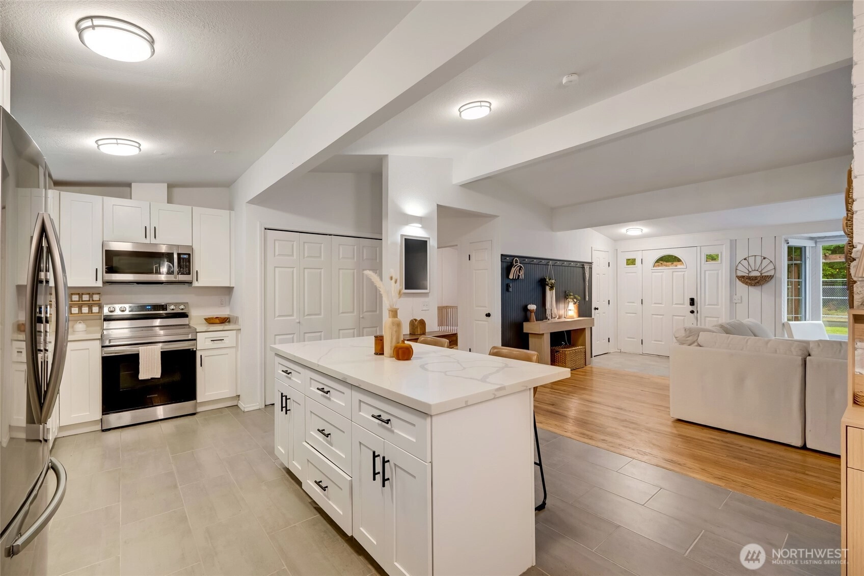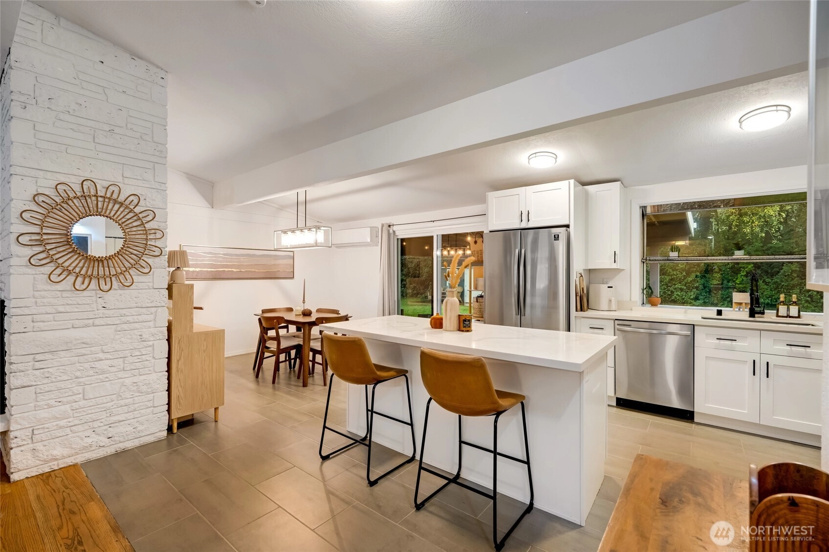 Beautifully updated rambler on a spacious ½ acre lot in the heart of Smokey Point! This 3-bedroom + office, 2.5-bath home features a bright open-concept living area with vaulted ceilings, fully remodeled kitchen and bathrooms, and modern finishes throughout. The large primary suite includes a walk-in closet and ensuite bath, while another bedroom also enjoys its own private bathroom. Recent upgrades include a newer roof, tankless water heater, and energy-efficient mini-split for updated heat & AC. Step outside to a huge covered patio, flat yard perfect for play, gardening, or space to expand. Don't miss the detached backyard office. Just minutes from shopping, dining, and I-5, this move-in ready home blends comfort, convenience, and space!