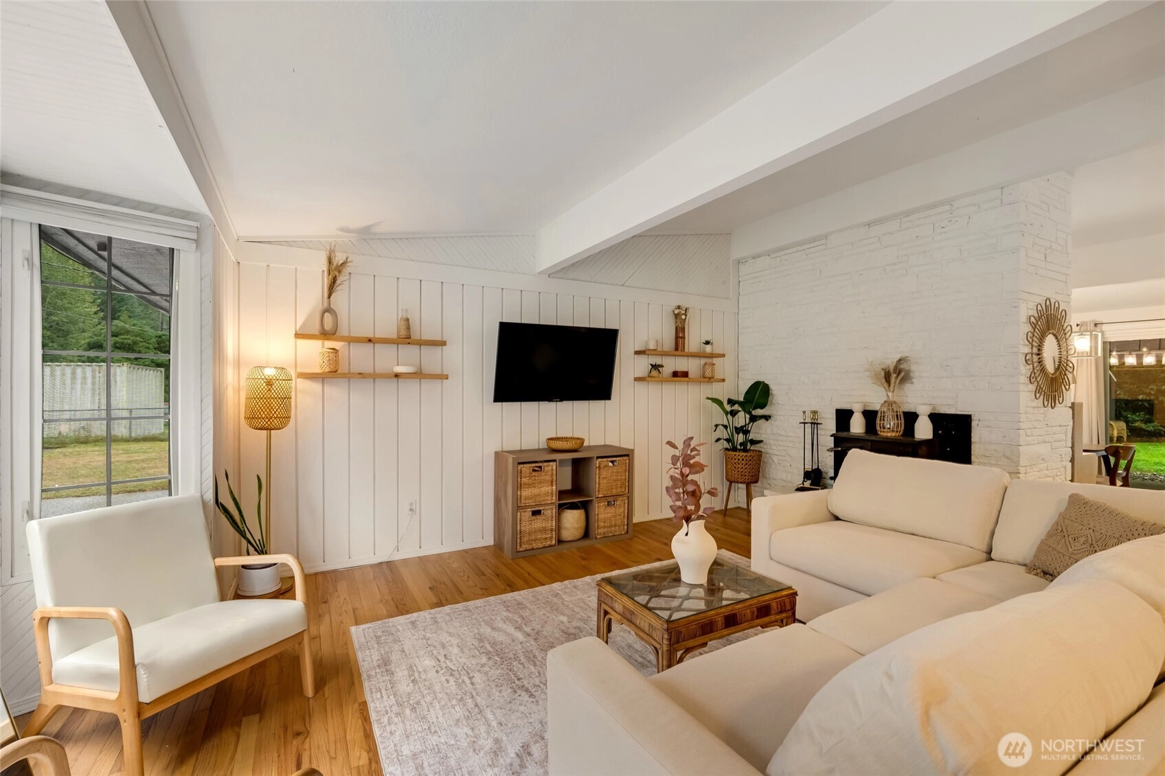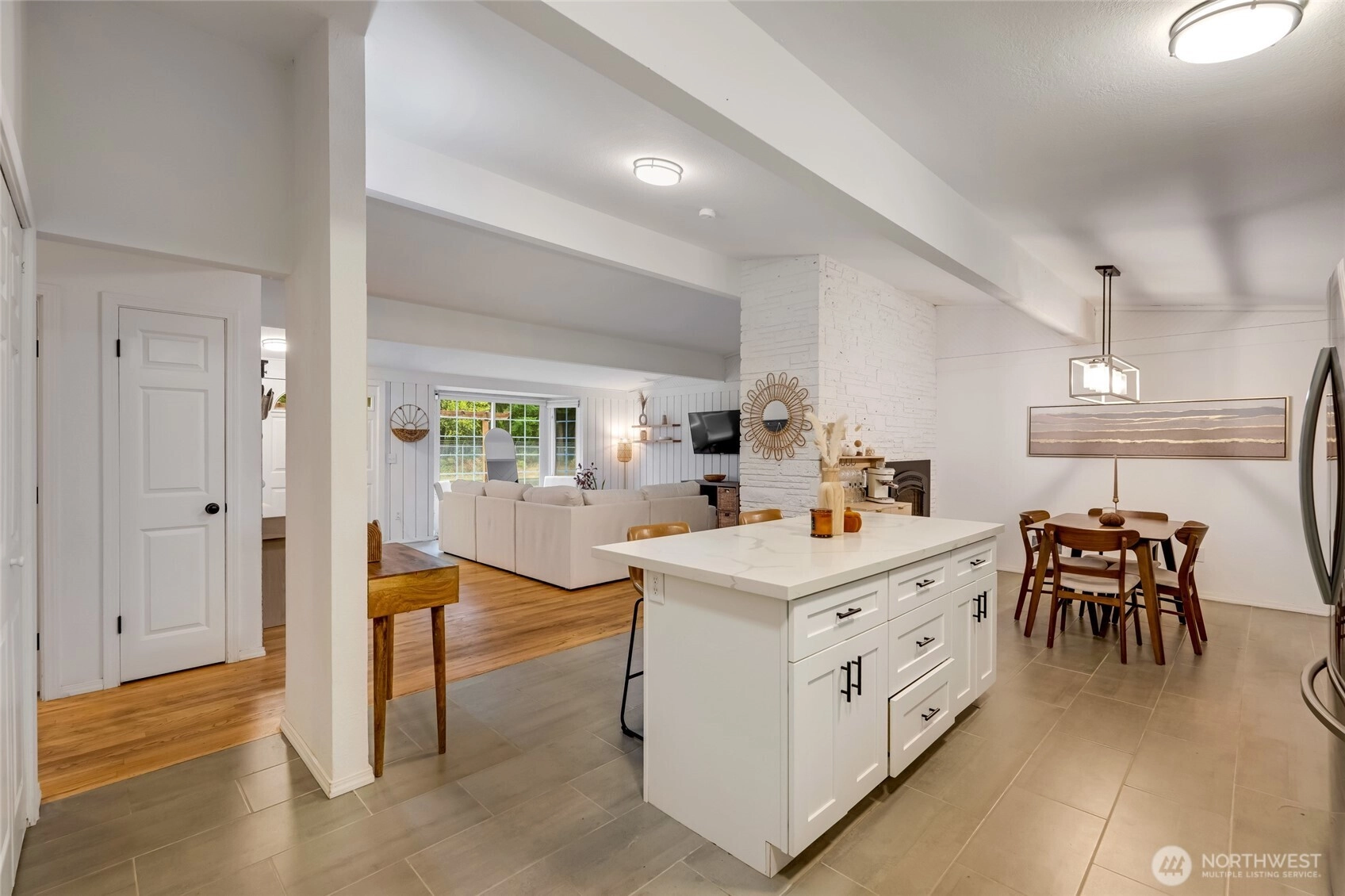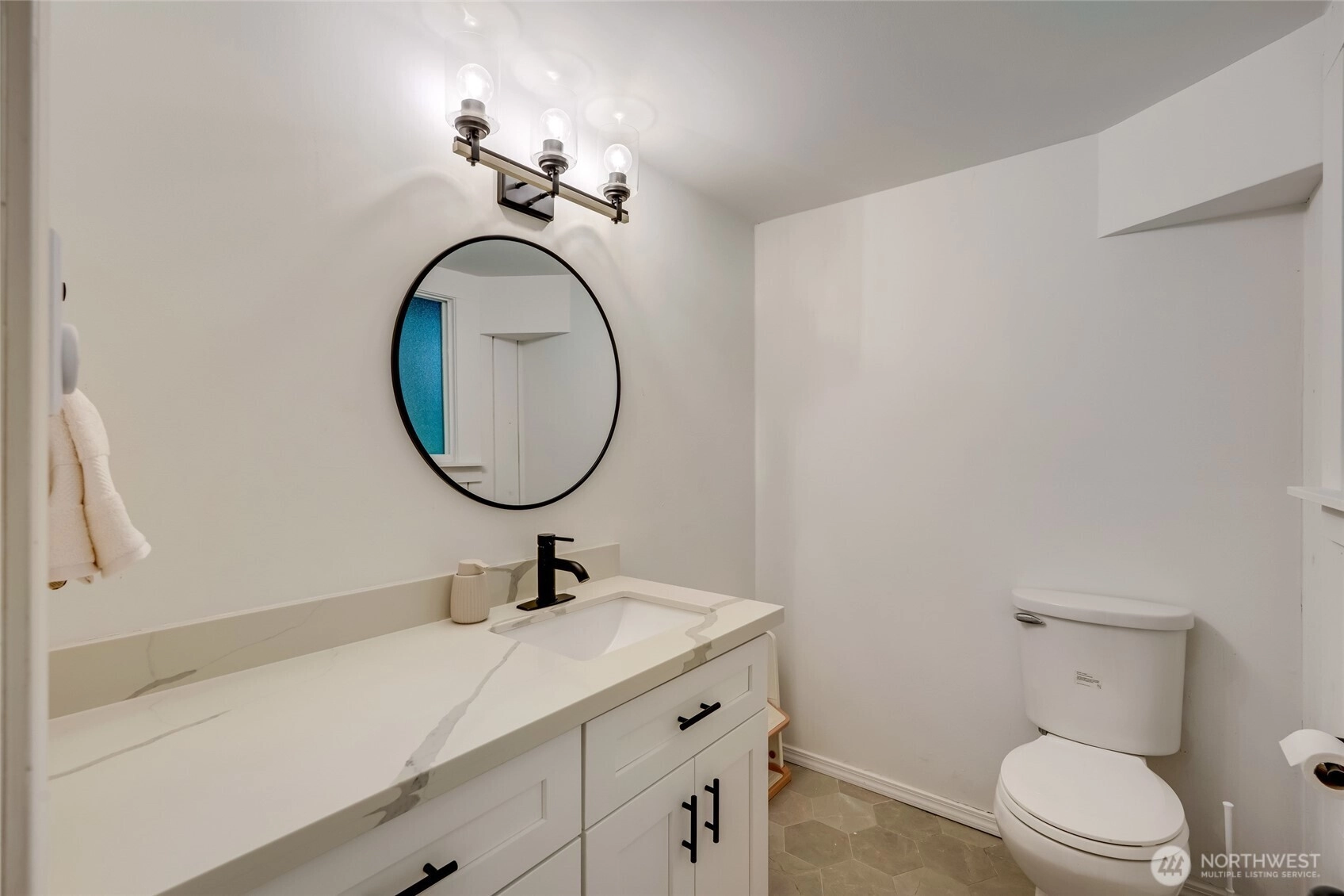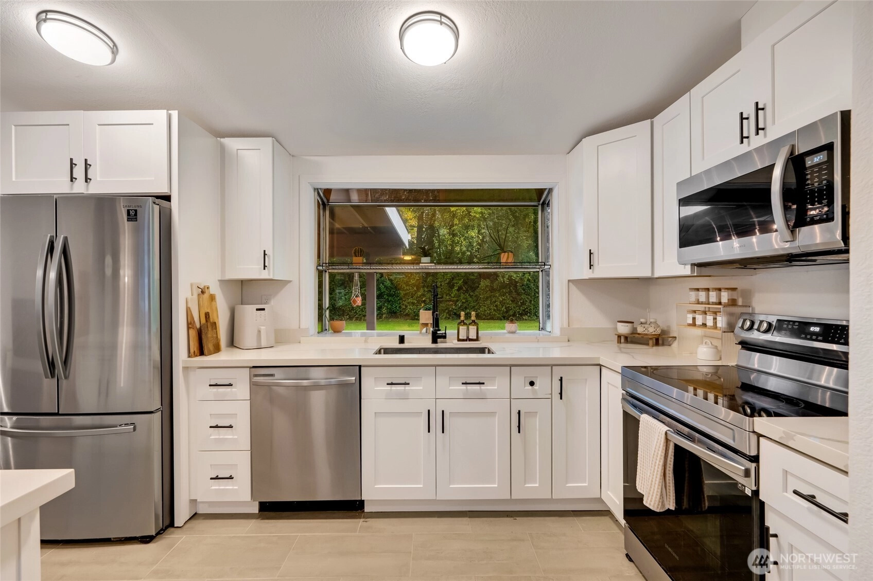 Beautifully updated rambler on a spacious ½ acre lot in the heart of Smokey Point! This 3-bedroom + office, 2.5-bath home features a bright open-concept living area with vaulted ceilings, fully remodeled kitchen and bathrooms, and modern finishes throughout. The large primary suite includes a walk-in closet and ensuite bath, while another bedroom also enjoys its own private bathroom. Recent upgrades include a newer roof, tankless water heater, and energy-efficient mini-split for updated heat & AC. Step outside to a huge covered patio, flat yard perfect for play, gardening, or space to expand. Don't miss the detached backyard office. Just minutes from shopping, dining, and I-5, this move-in ready home blends comfort, convenience, and space!